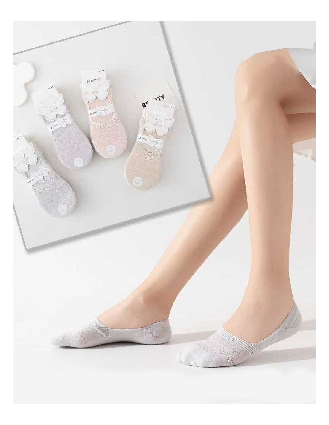 Balerinki damskie - wykonane z bambusowej dzianiny - ozdobione połyskującym wzorem - delikatne, miłe w dotyku - płaskie szwy - nieuciskający ściągacz