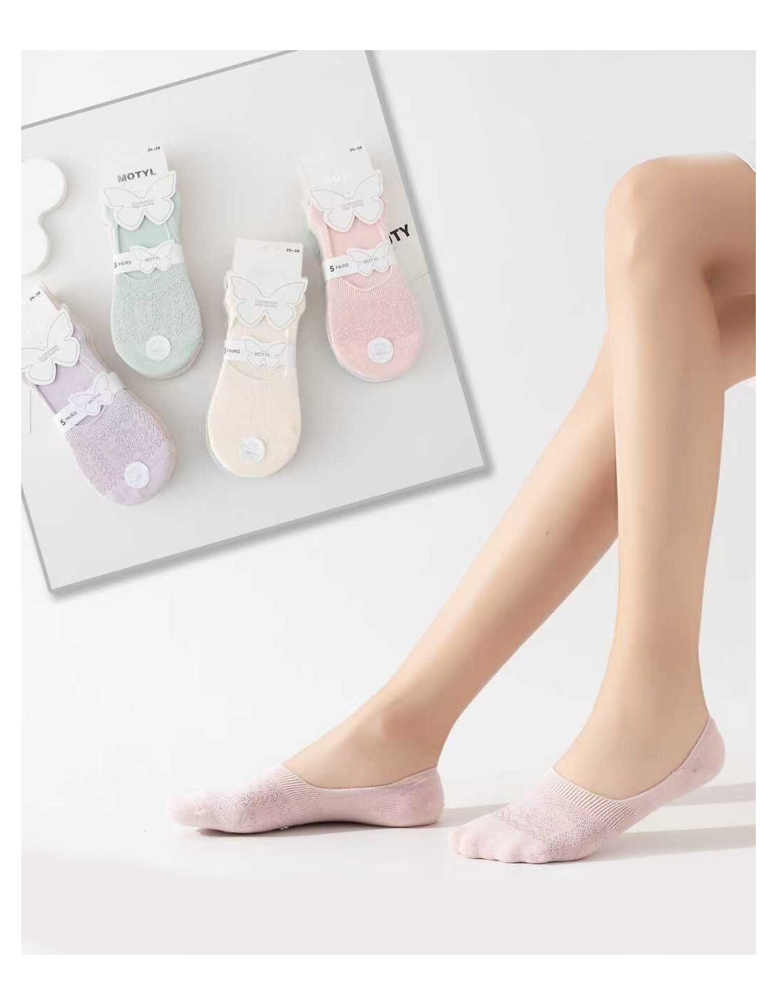 Balerinki damskie - wykonane z bambusowej dzianiny - ozdobione połyskującym wzorem - delikatne, miłe w dotyku - płaskie szwy - nieuciskający ściągacz