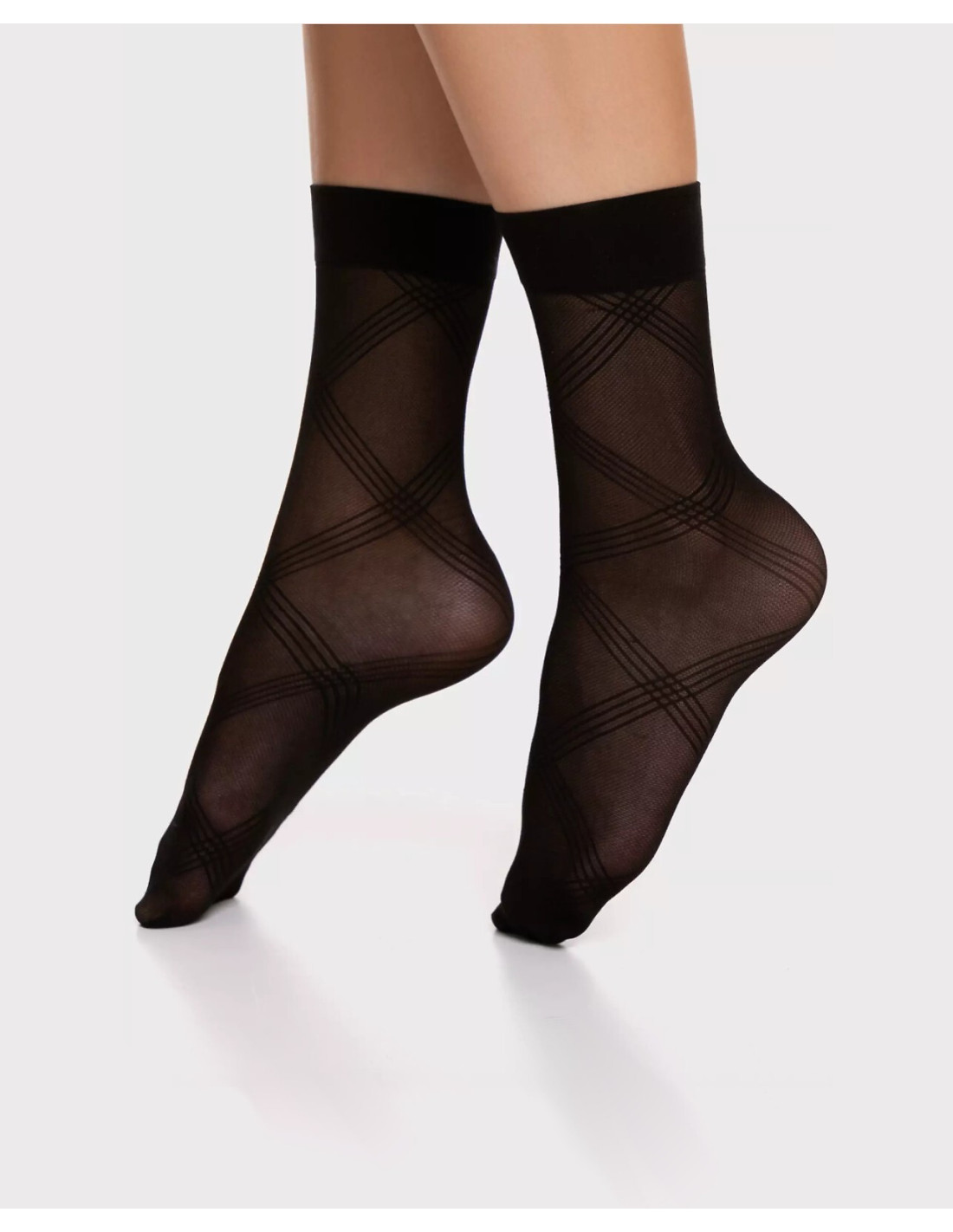 Skarpetki damskie - z efektownym, geometrycznym printem - z przędzy oplatanej gwarantującej zwiększoną trwałość - niewidoczne wzmocnienie na palcach - ideal do rożnych stylizacji
