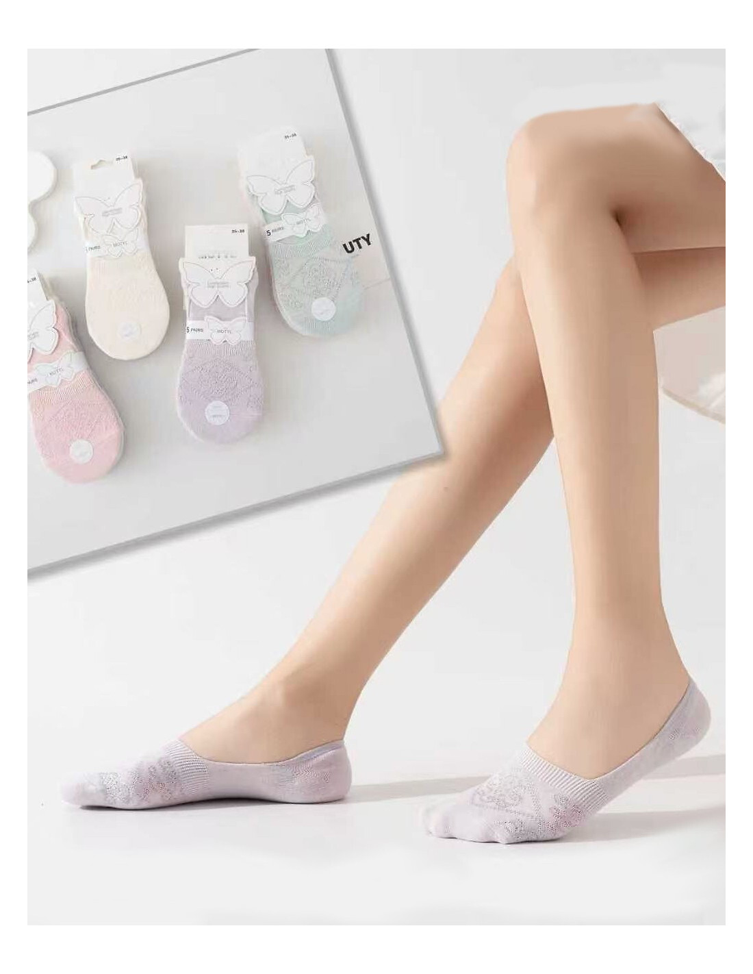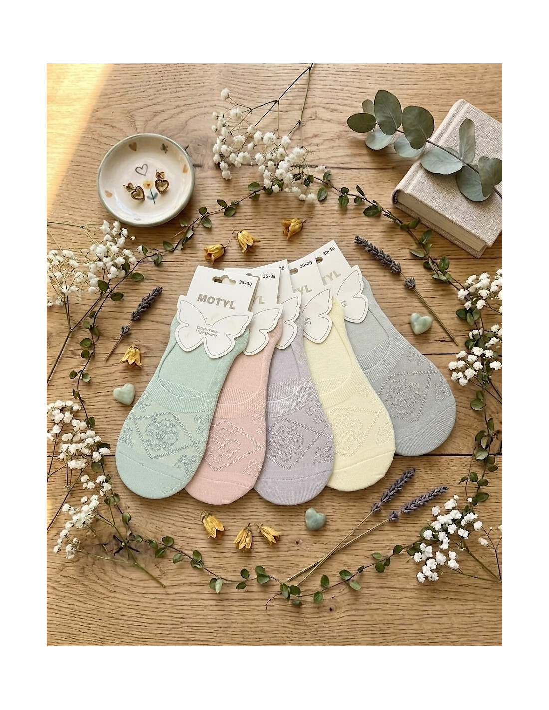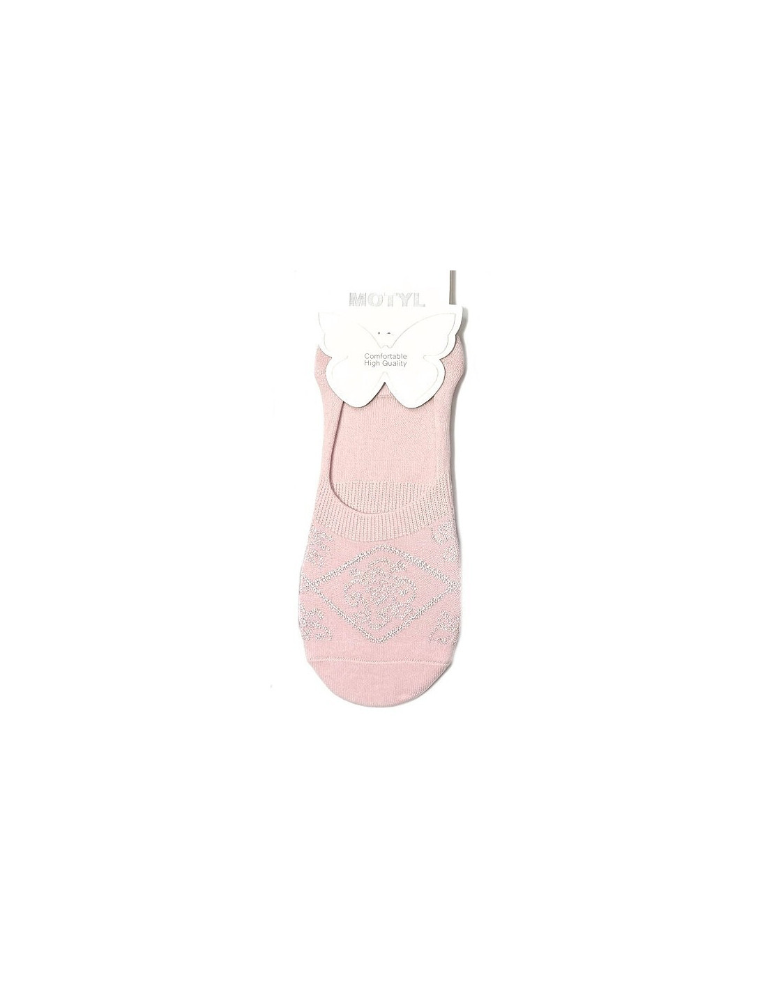 Balerinki damskie - wykonane z bambusowej dzianiny - ozdobione połyskującym wzorem - delikatne, miłe w dotyku - płaskie szwy - nieuciskający ściągacz