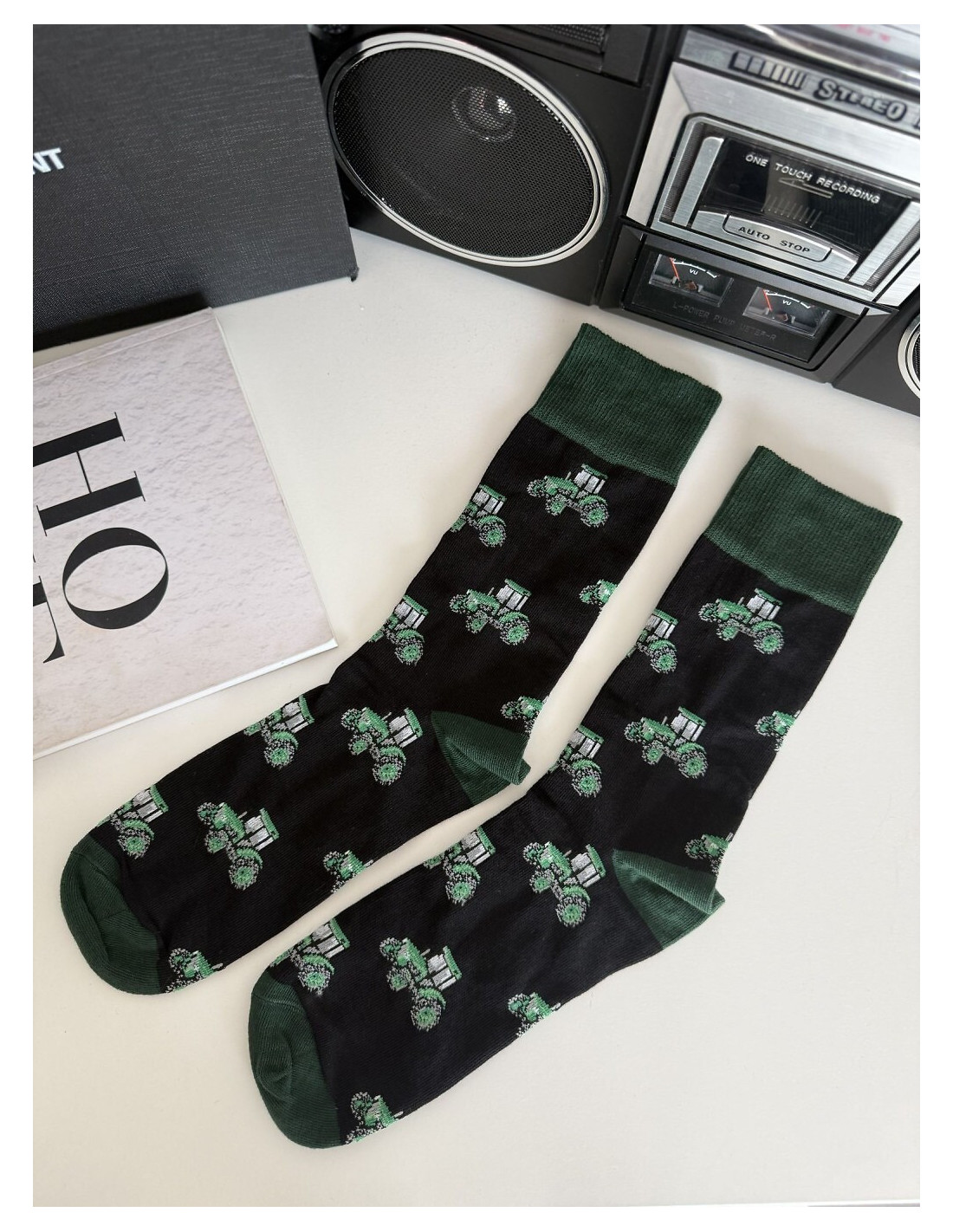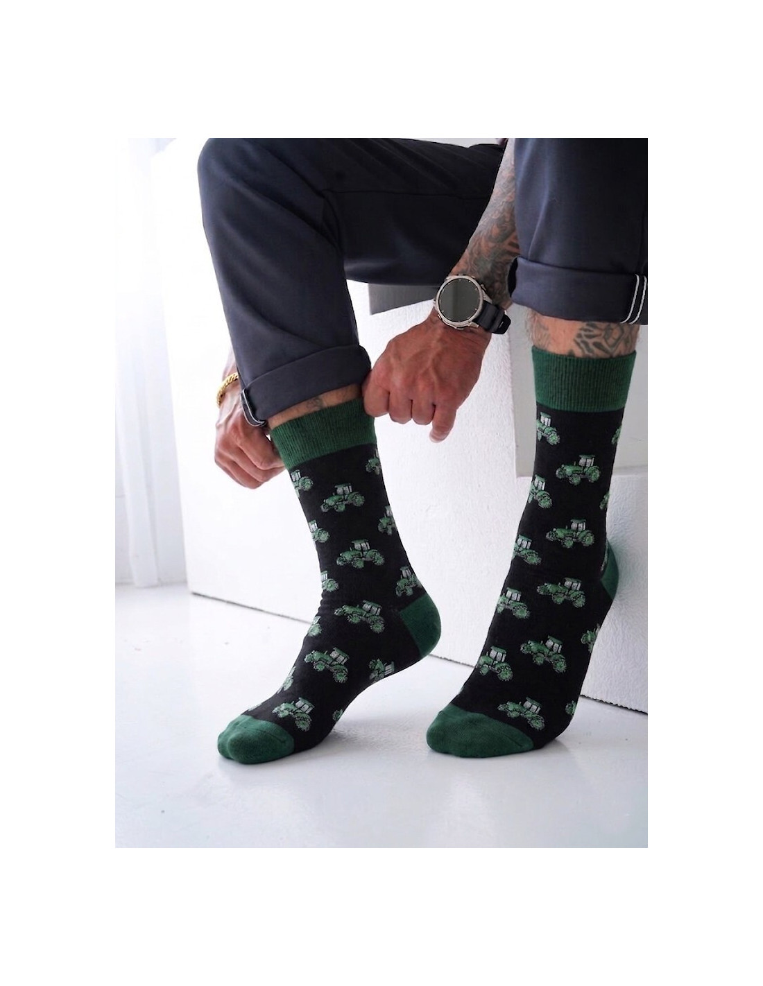 Kolorowe skarpety męskie - aukštos kokybės bawełna - ozdobione kolorowym printem - idealiai prilegające do stopy
