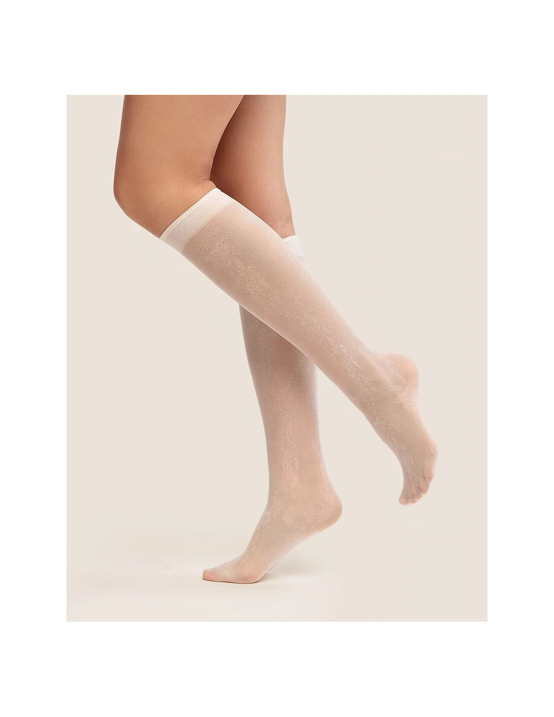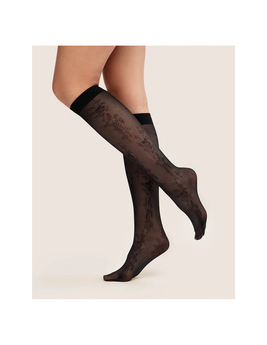 Cienkie podkolanówki damskie - ozdobione efektownym wzorem - nieuciskający ściągacz - brak zaznaczonych wzmocnień na palcach
