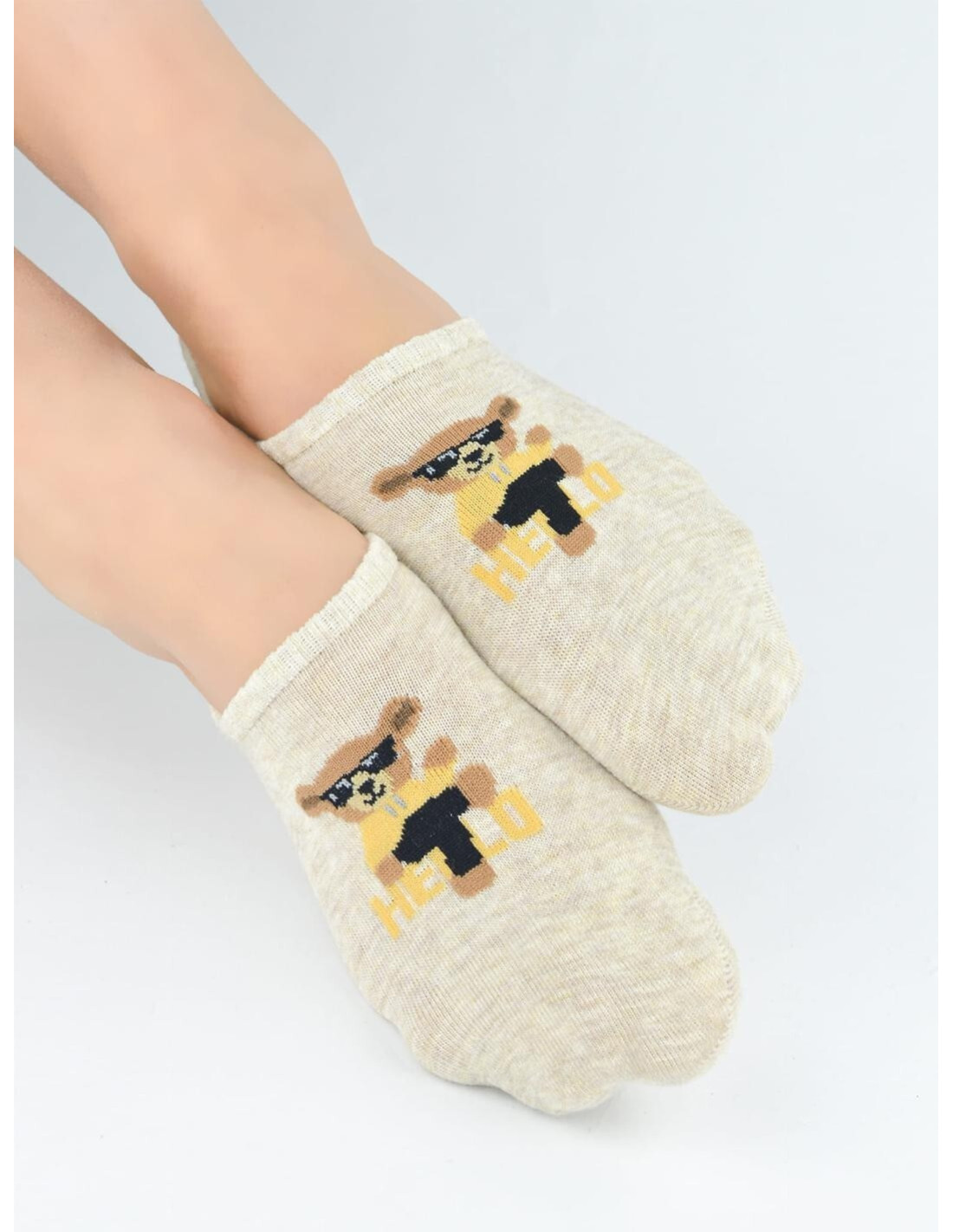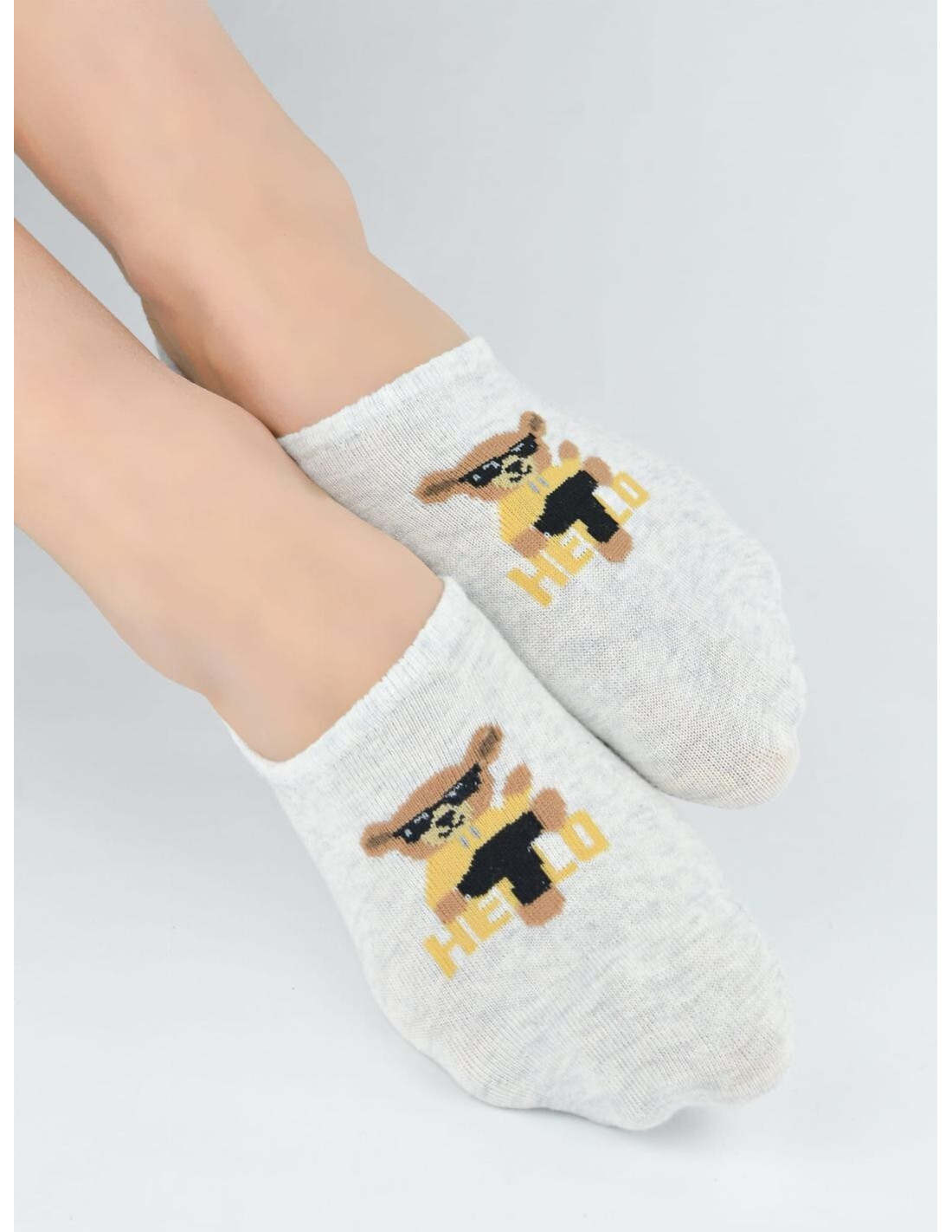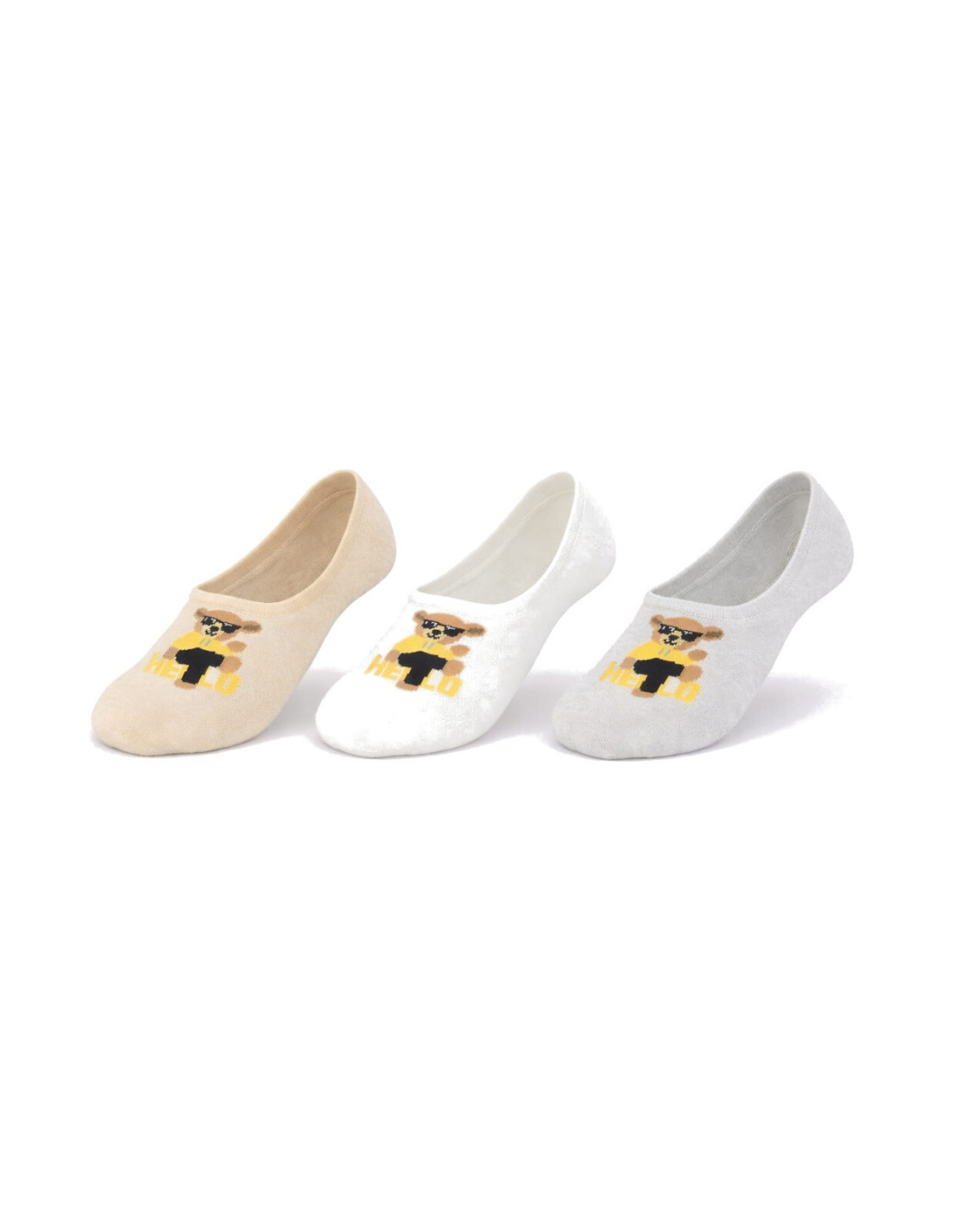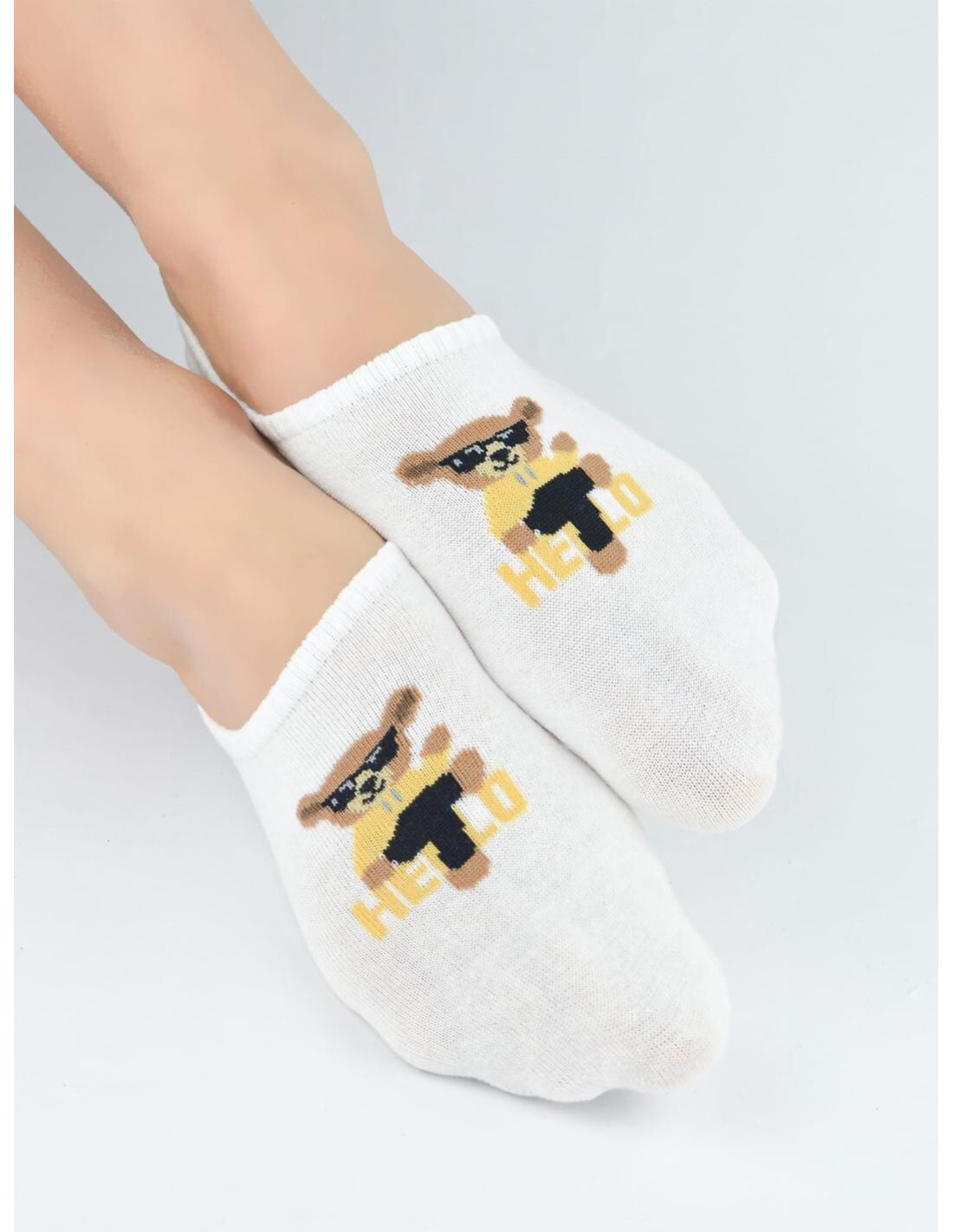 Bawełniane stopki damskie - ozdobione nadrukiem z misiem - płaskie szwy, nieuciskający ściągacz - na pięcie od wewnętrznej strony silikon zapobiegający zsuwaniu - dostępne kolory: biały, szary, beżowy