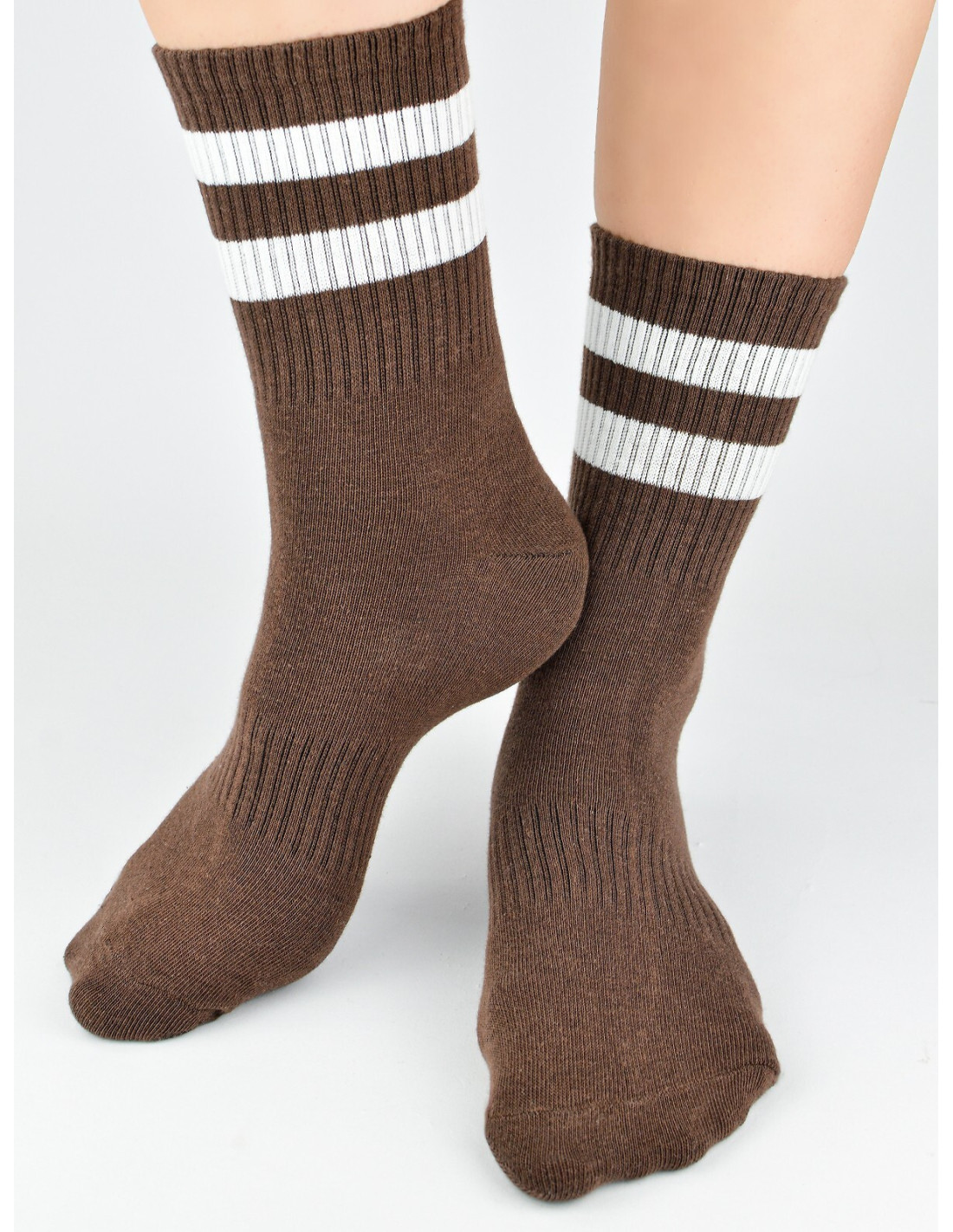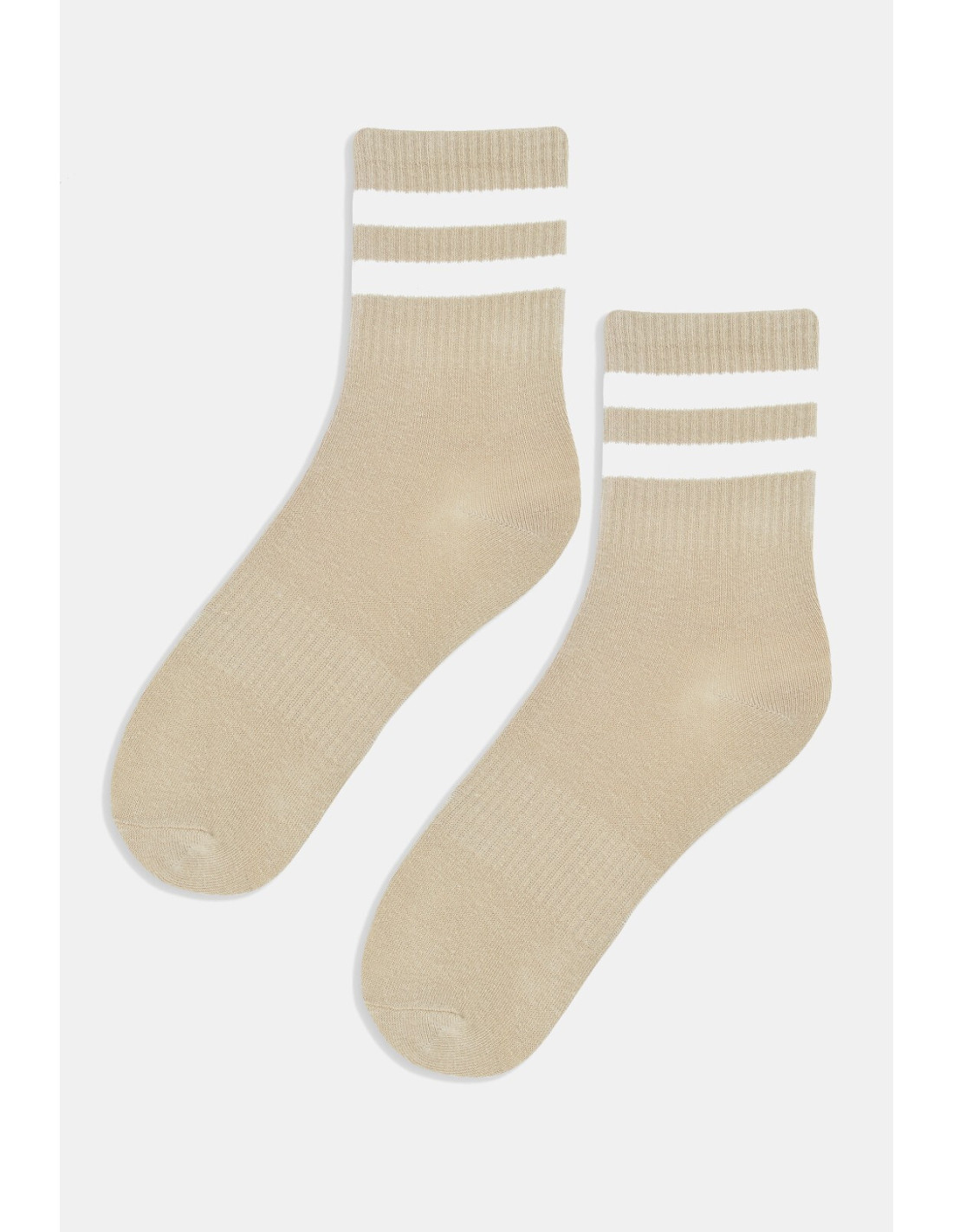 Bawełniane skarpetki damskie - delikatna w dotyku bawełna - nieuciskający, prążkowany ściągacz ozdobiony paskami - doskonale sprawdzą się w codziennych stylizacjach - idealiai dopasowują się do stóp