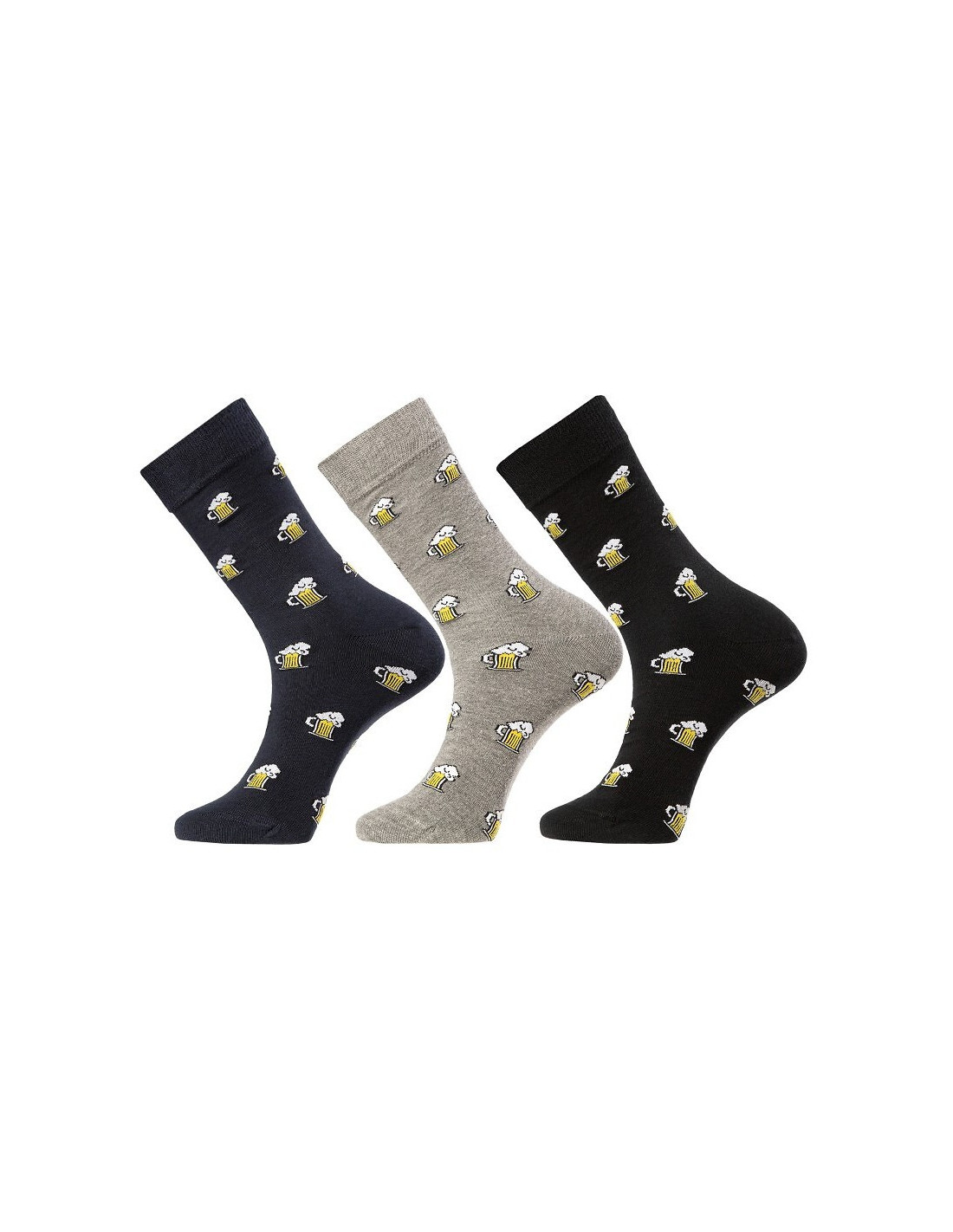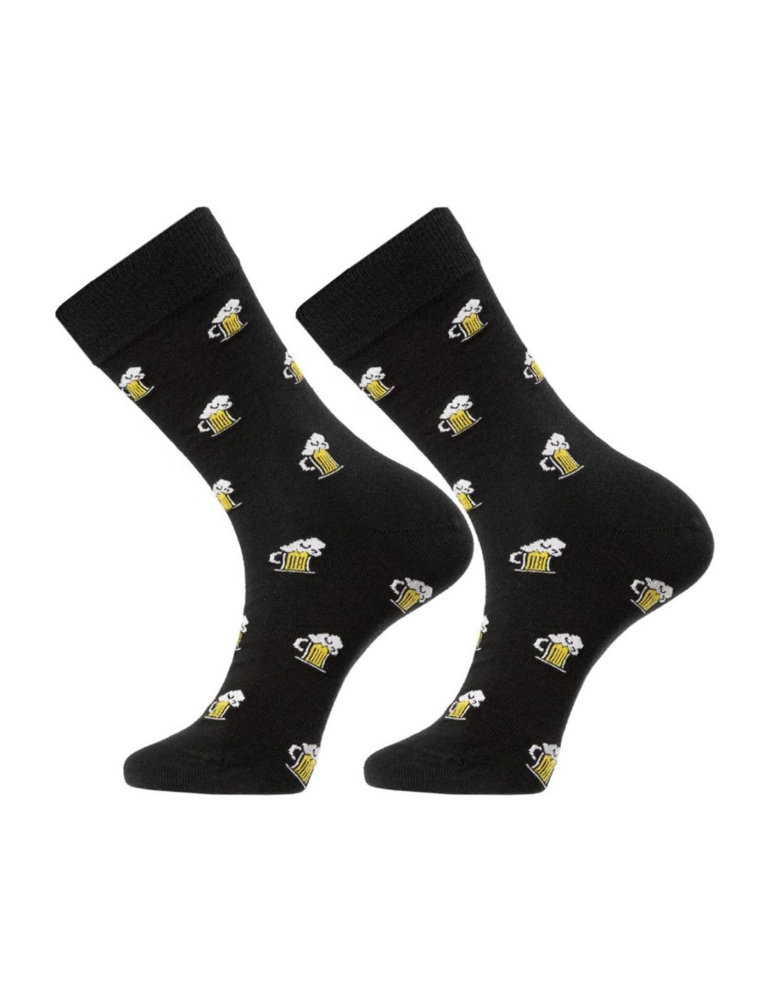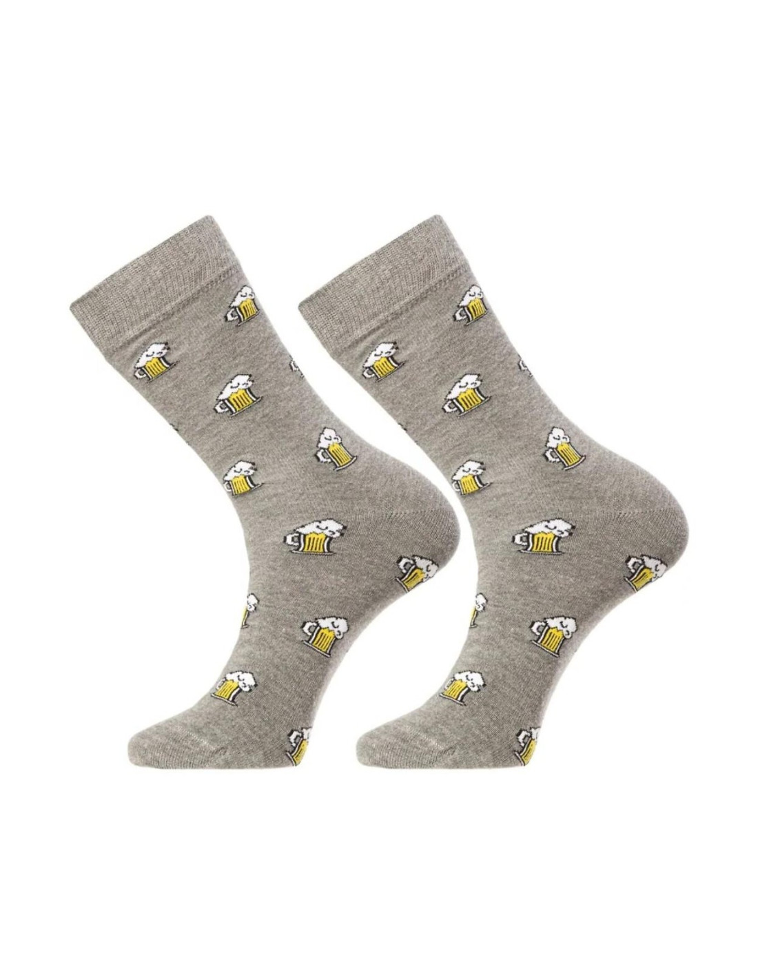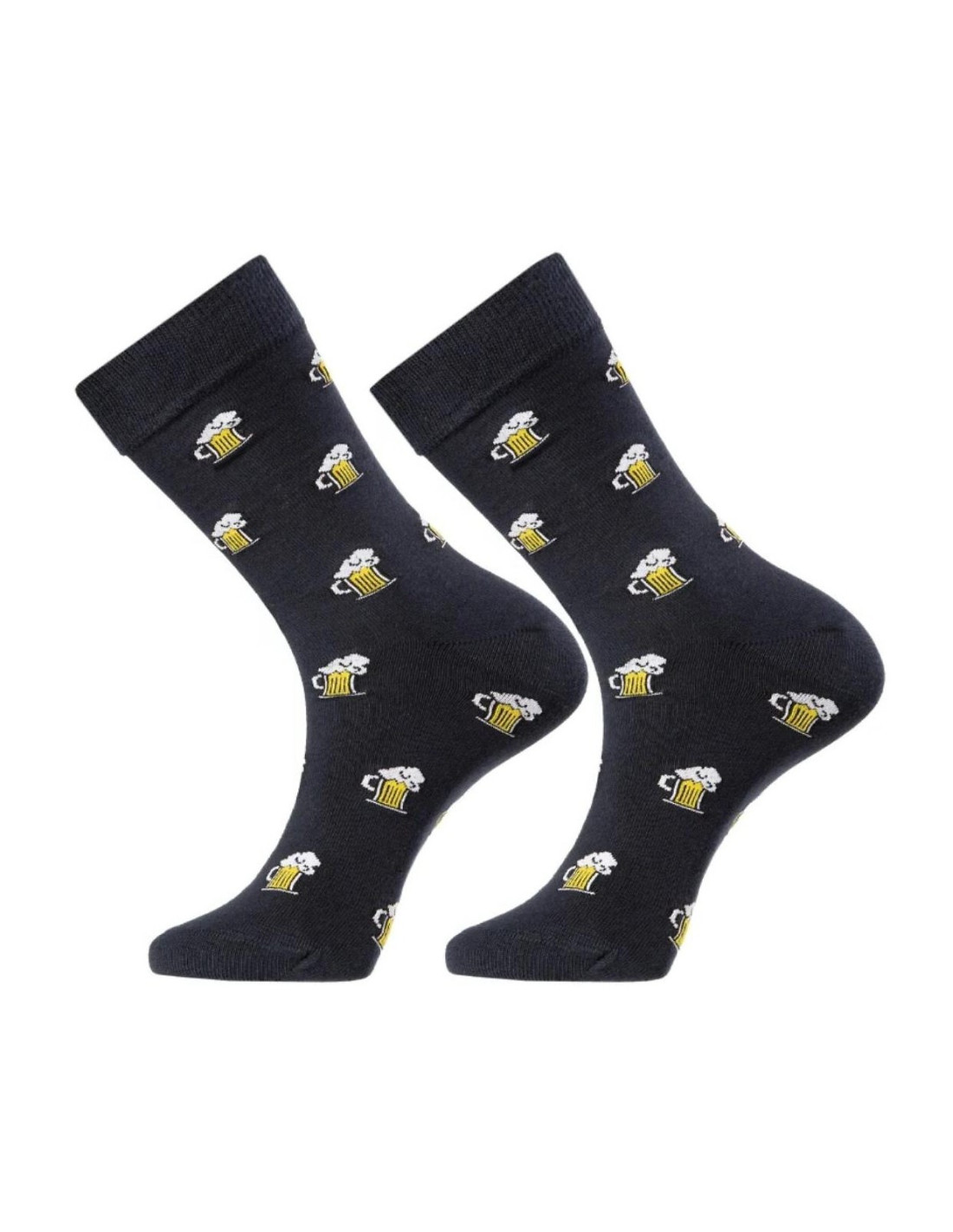 Bawełniane skarpety męskie - kolorowy print z kuflami piwa - płaskie szwy, wygodny ściągacz - dostępne kolory:szary, granatowy, czarny