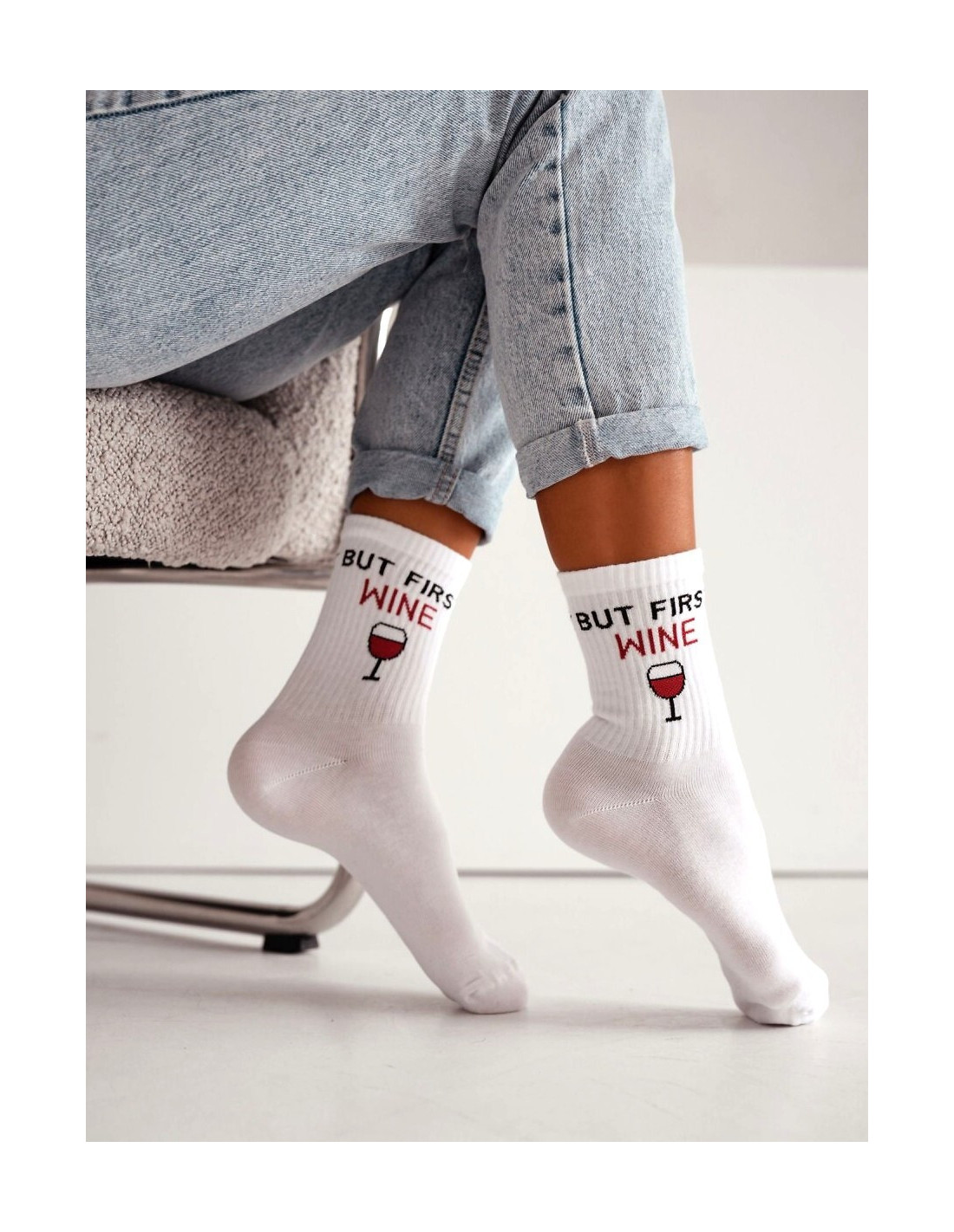 Skarpety damskie - z wysokiej kokybės przędzy bawełnianej - cholewka z ozdobną grafiką - płaskie szwy - prążkowana cholewka