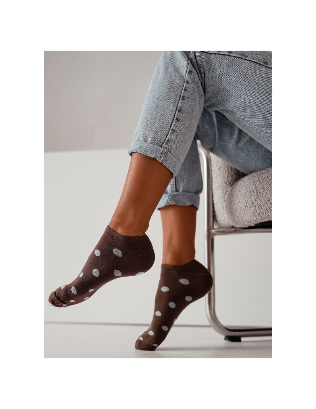 Stopki damskie - wykonane z wysokiej kokybės bawełny - ozdobione wzorem w groszki - doskonale sprawdzą się w codziennych stylizacjach - idealiai dopasowują się do stóp i zapewniają wysoki komfort noszenia