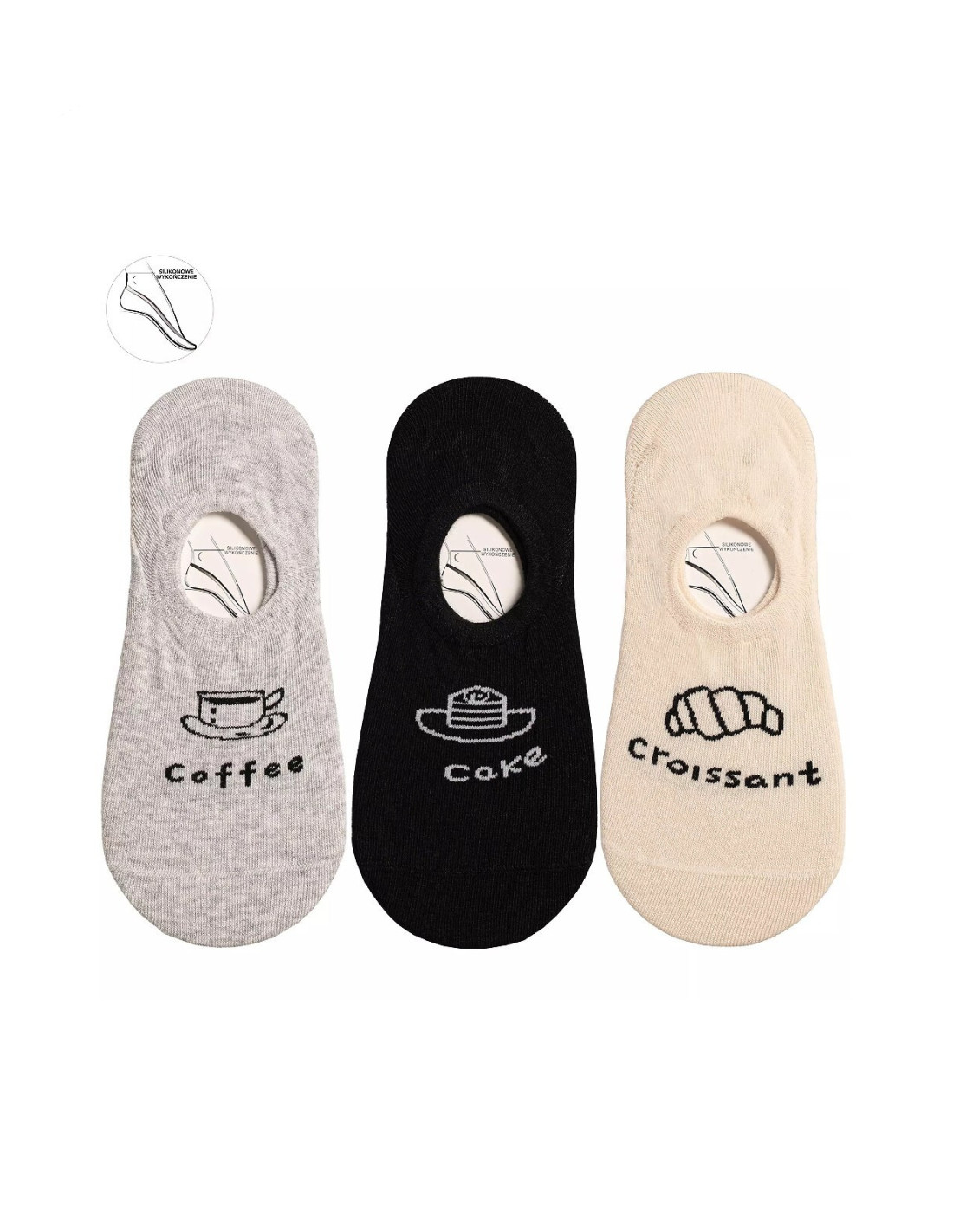 Bawełniane baleriny damskie - ozdobione delikatnym wzorem - płaskie szwy, nieuciskający ściągacz - na pięcie od wewnętrznej strony silikon zapobiegający zsuwaniu - dostępne kolory: szary, beżowy, czarny