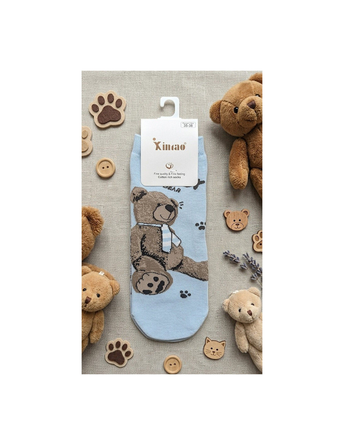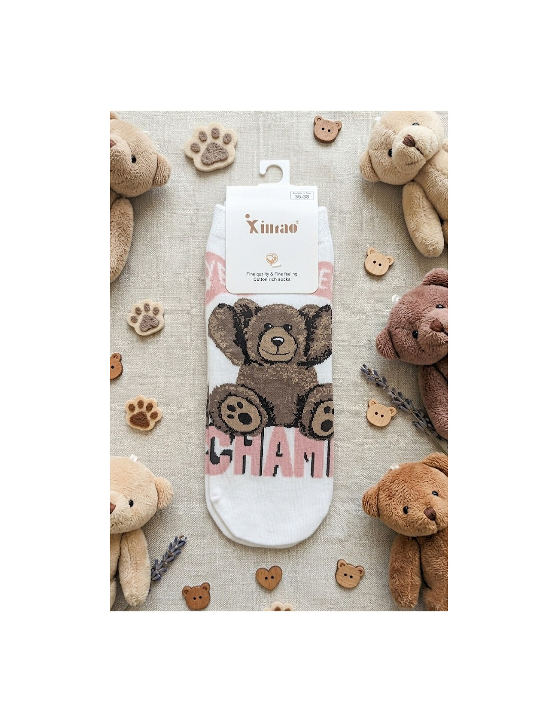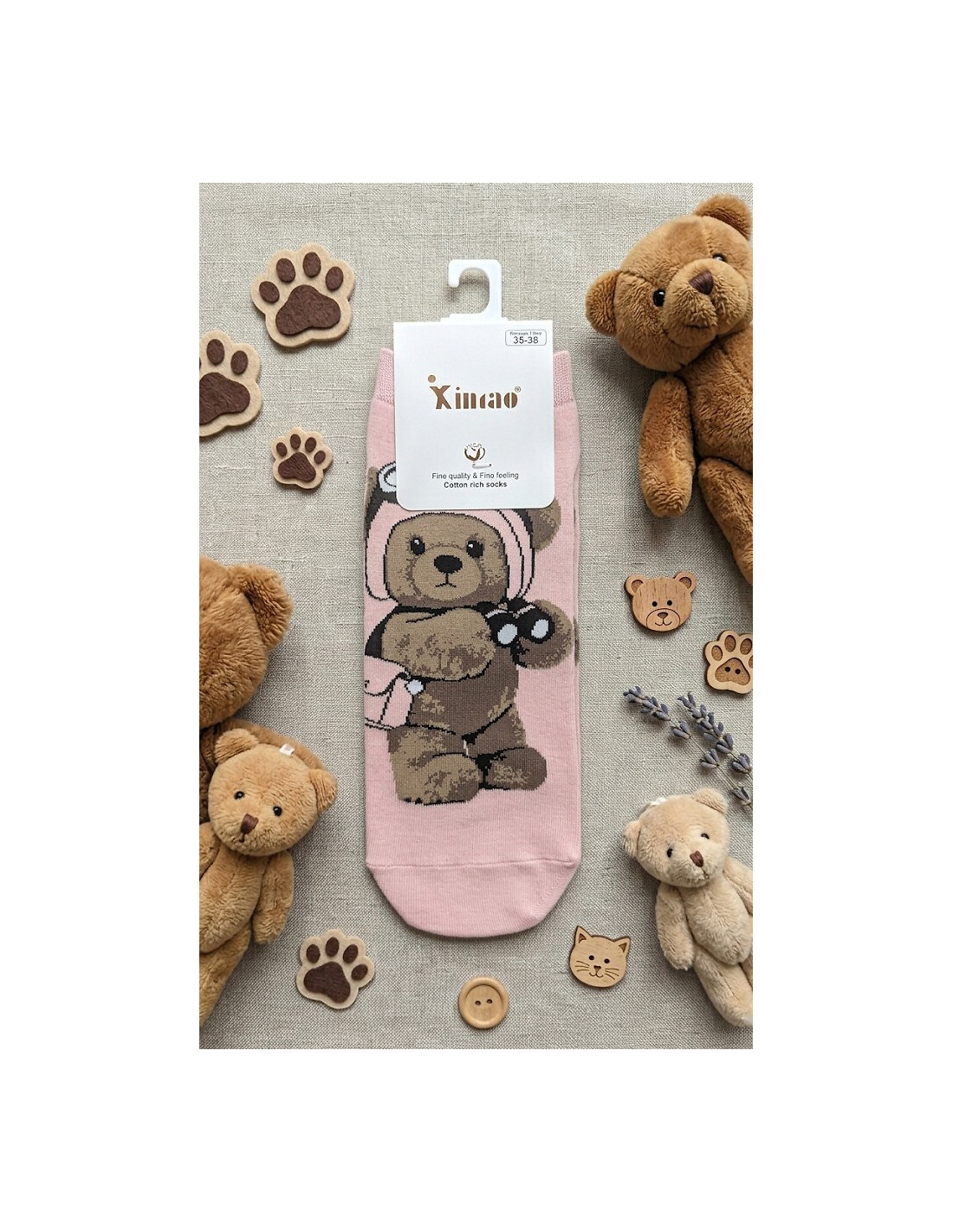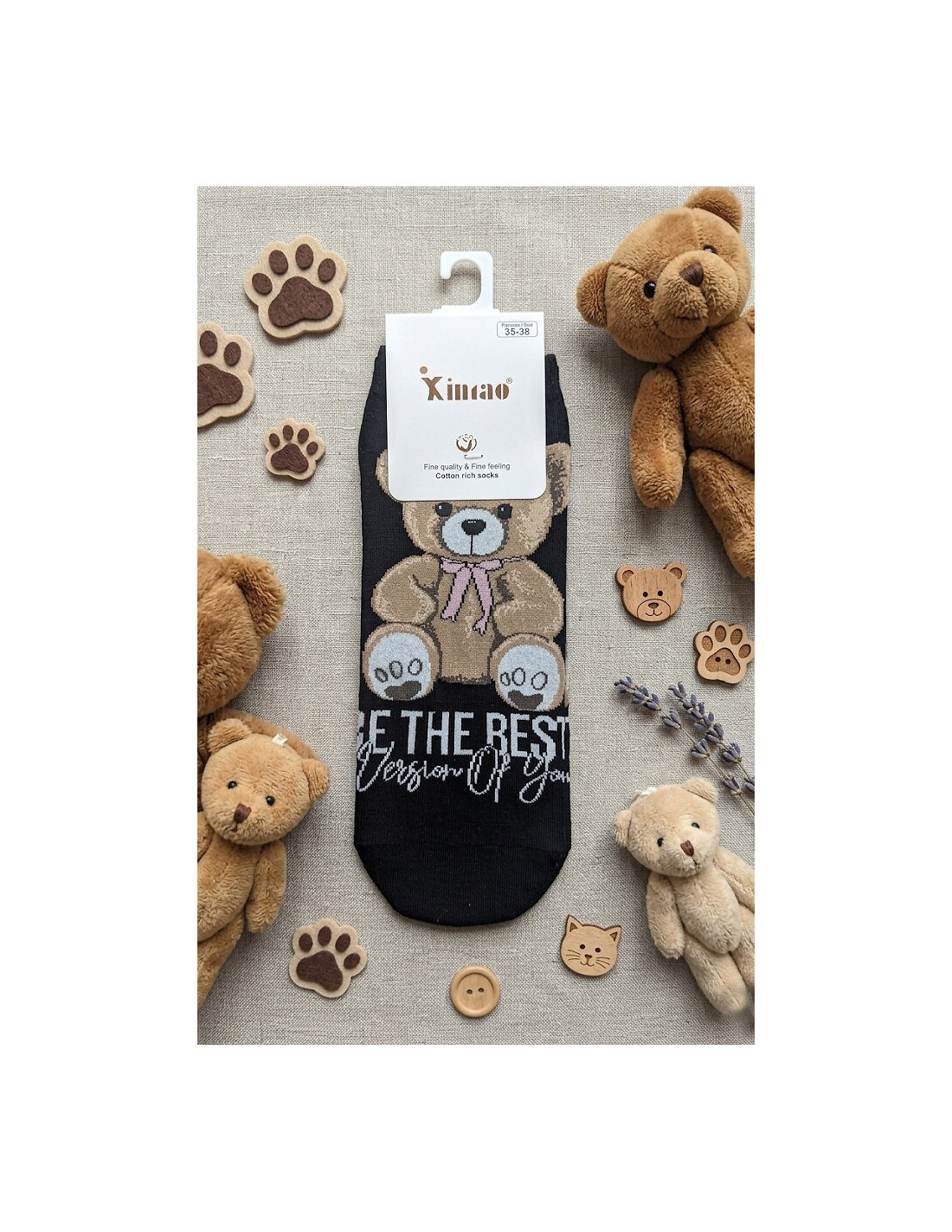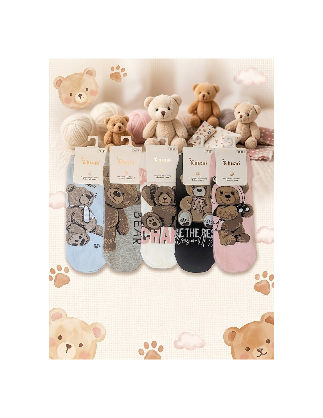 Bawełniane stopki damskie - delikatna w dotyku bawełna - nieuciskający ściągacz - ozdobione różnorodnymi wzorami z misiami - doskonale sprawdzą się w codziennych stylizacjach - idealiai dopasowują się do stóp