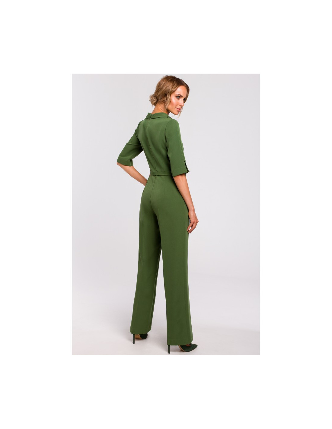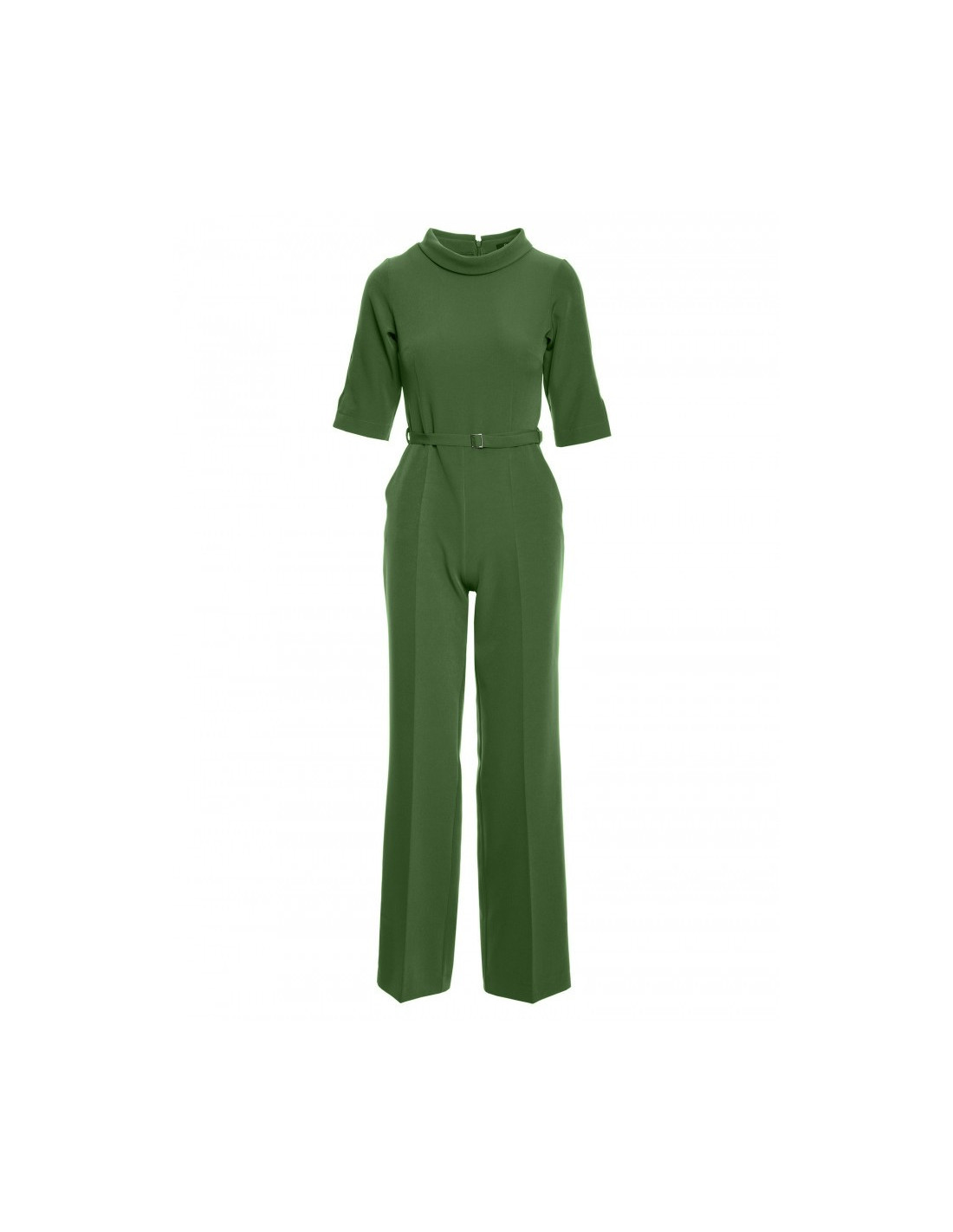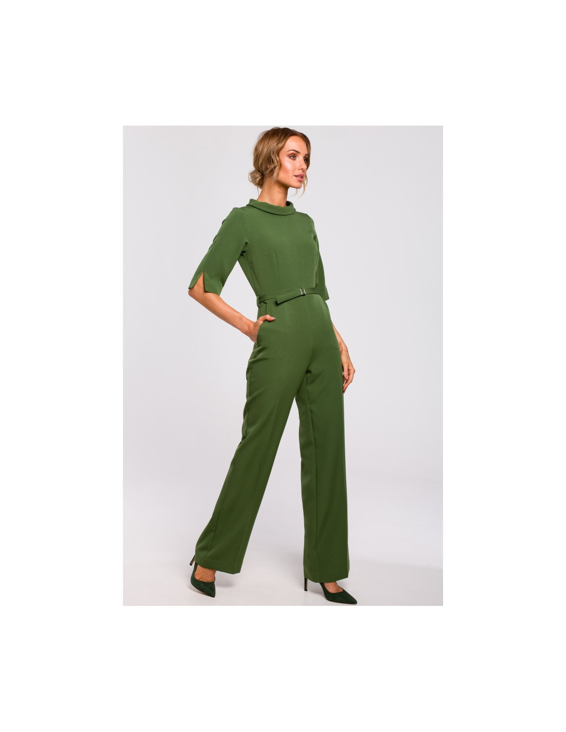 95% polyester 5% elastanase Skip mixing and matching tops and bottoms and go for this versatile all-in-one jumpsuit with wide legs and a stand-up collar. It’s easy to style and definitely chic. PRODUCT DETAILS:      woven fabric straight leg with side pockets fitted top with rolled stand-u collar hidden back zip Buckle belt attached our model is 171 cm tall and wears size S