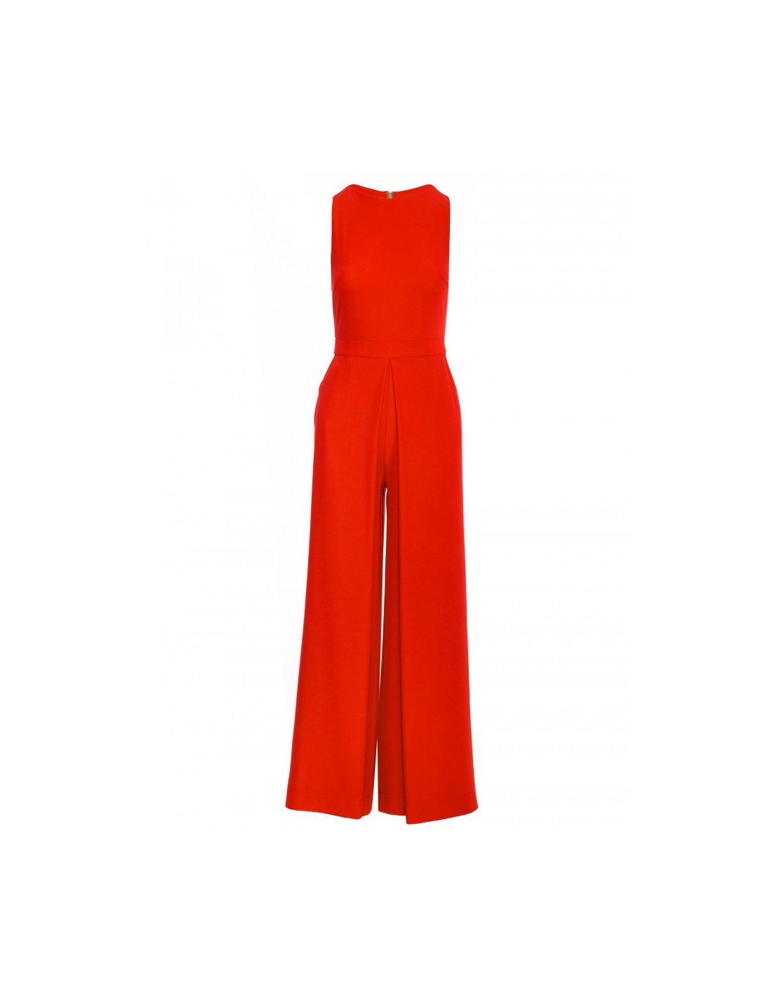 95% polyester 5% elastanase PRODUCT DETAILS:      woven fabric one-piece jumpsuit sleeveless  wide legs side pockets our model is 174 cm tall and wears size S designed and made in Poland