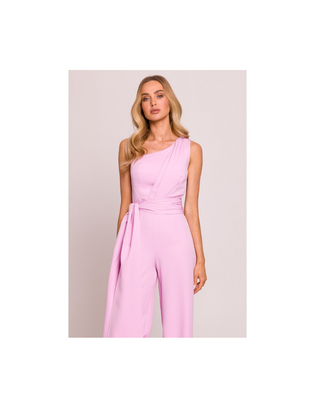 vientisas asimetriškas kombinezonas su vieno peties motyvu