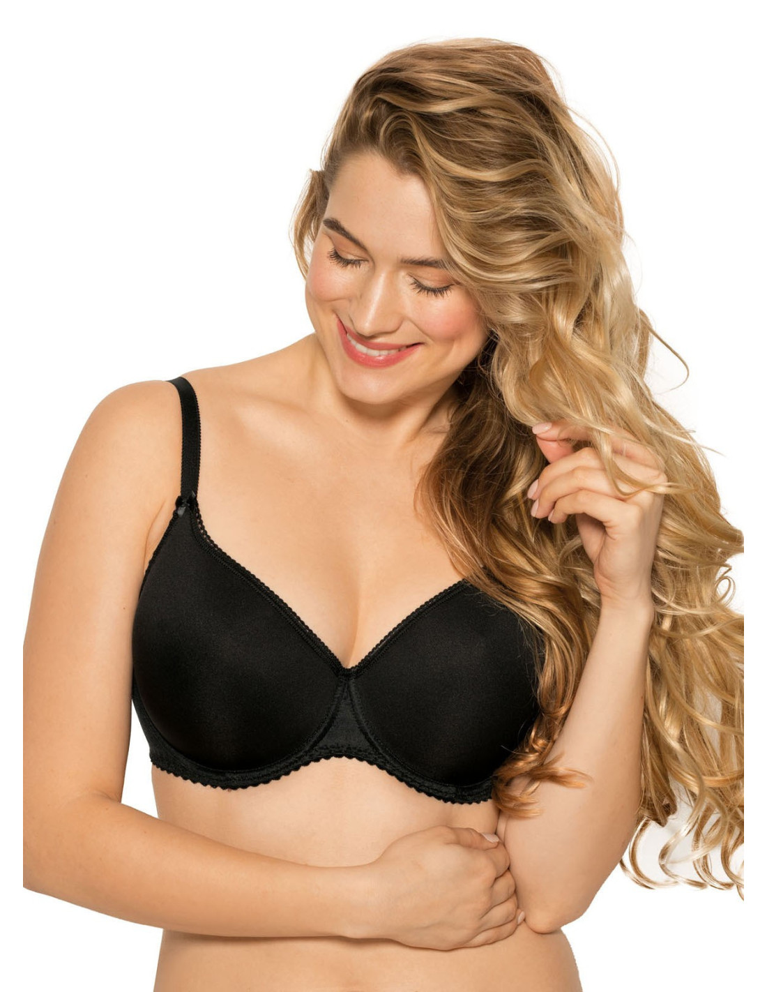 Moteriška liemenėlė - lengvai paminkštinta, iš švelnaus mikropluošto, su tarpeliais - termiškai suformuoti kaušeliai - šonai iš vientiso mikropluošto - idealiai tinka moterims, turinčioms didesnę - pilną krūtinę - petnešėlės nenuimamos, reguliuojamos - konstrukcija - M4