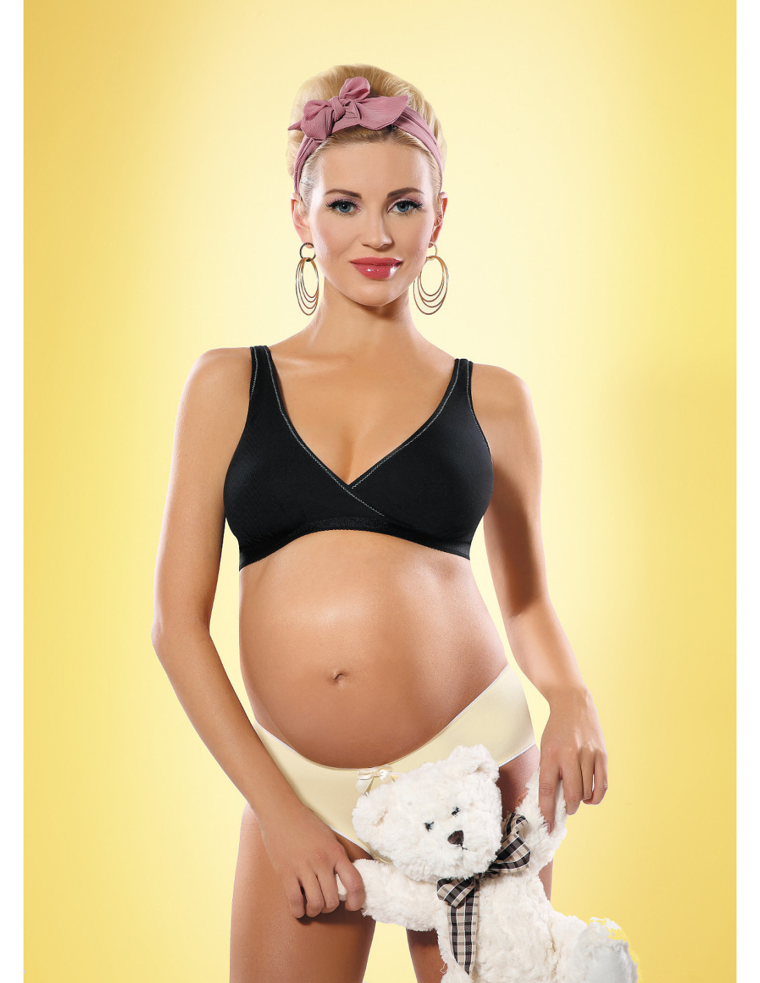 Liemenėlė žindančioms motinoms - minkštas kaušelis su švelniu raukšlėjimu - be petnešėlių - prisitaiko prie krūtų - apvadas su kabliuku ir akutėmis su trijų pakopų reguliavimu