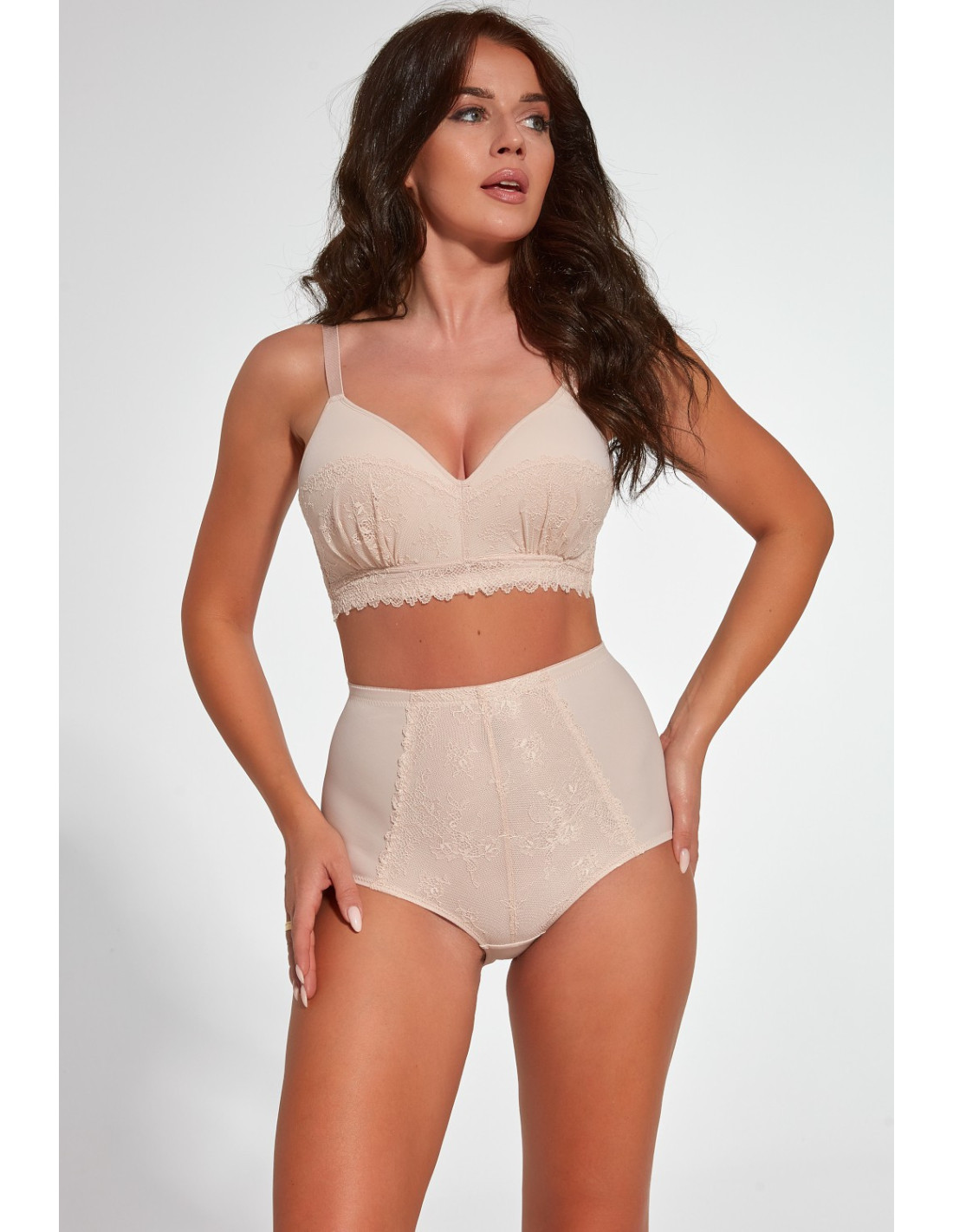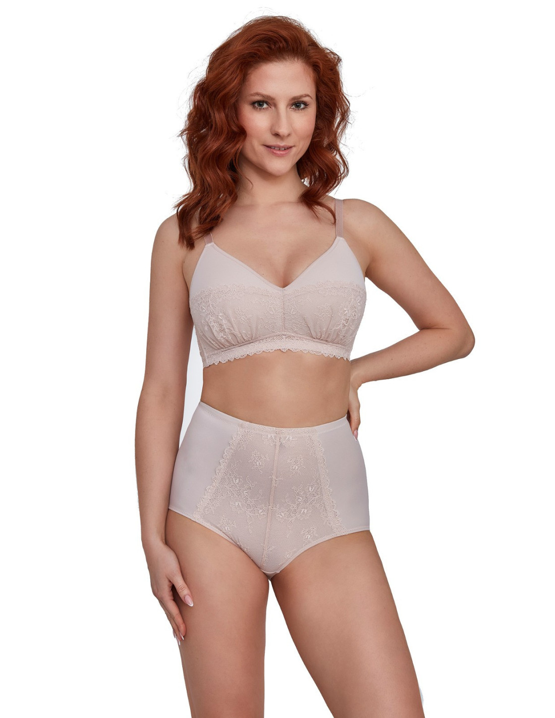 Minkšta liemenėlė, pasivaikščiojimas - be liemenėlės - nėrinių su gėlių motyvais kaušeliai, apačioje klostuoti - viršutinė linija iš lygaus mikropluošto - besiūliai kaušeliai iš vidinės pusės, kurie nedirgina odos - kvėpuojanti - nėrinių apvadas, pamušalas iš tiulio - petnešėlės nenuimamos, plotis priklauso nuo dydžio - konstrukcija M22