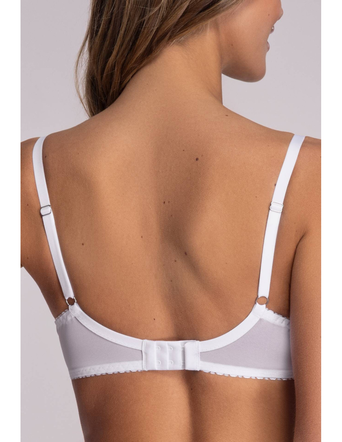 NAUJAS BAZINIS BRA Pusiau minkšta liemenėlė - mikropluošto kaušeliai paminkštinti plonu putplasčiu, su apatiniais laidais -viršutinė nėrinių linija - petnešėlės nenuimamos, reguliuojamos - šonai iš elastingo, tampraus, atsparaus tempimui likros audinio, be šoninių banginių - du arba trys užsegimai su kabliukais ir akimis, trijų pakopų reguliavimas - konstrukcija K-925