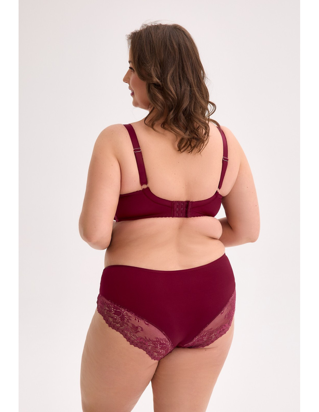Pusiau minkšta liemenėlė su petnešėlėmis - kaušeliai iš įspūdingų nėrinių - viršutinė linija užbaigta tinkleliu -kaušeliai pusiau paminkštinti plonu putplasčiu, paminkštinti medvilne - liemenėlių jungtis dekoruota lankeliu ir pakabuku - modelis pakelia ir atidengia krūtinę - petnešėlės nenuimamos, reguliuojamos - apvadas iš lygaus audinio su šoniniais banginių kauliukais - du arba trys kabliukai ir akys su trijų pakopų reguliavimu - sS3MX konstrukcija