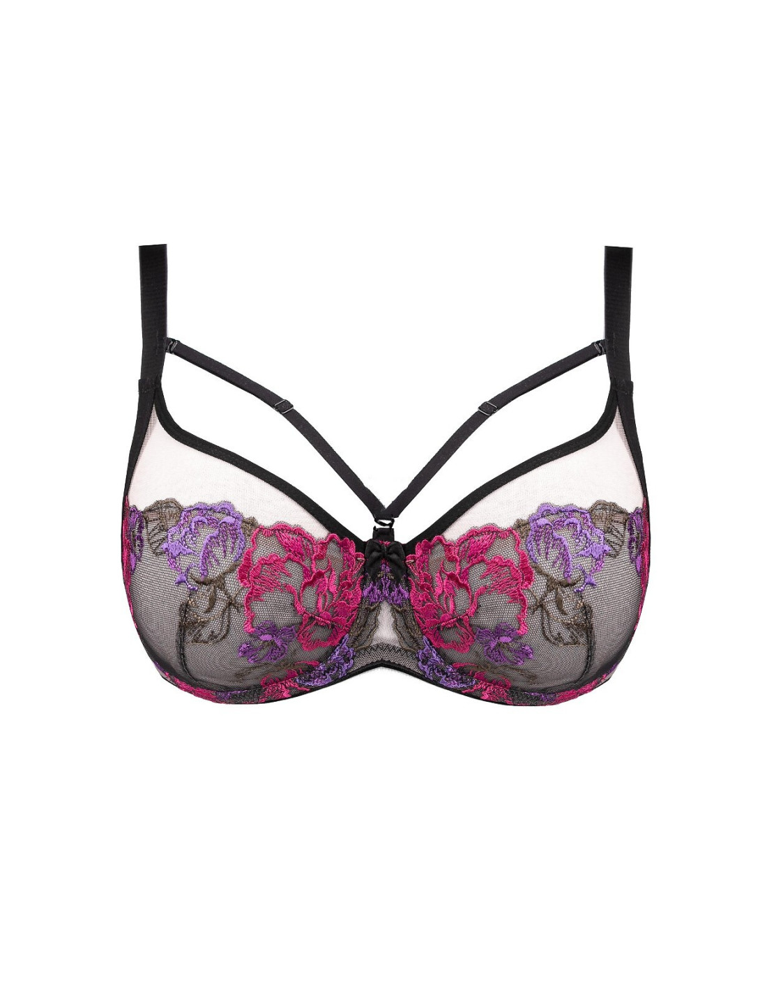 - zdobiony pięknym kwiatowym haftem w kolorze różu i fioletu