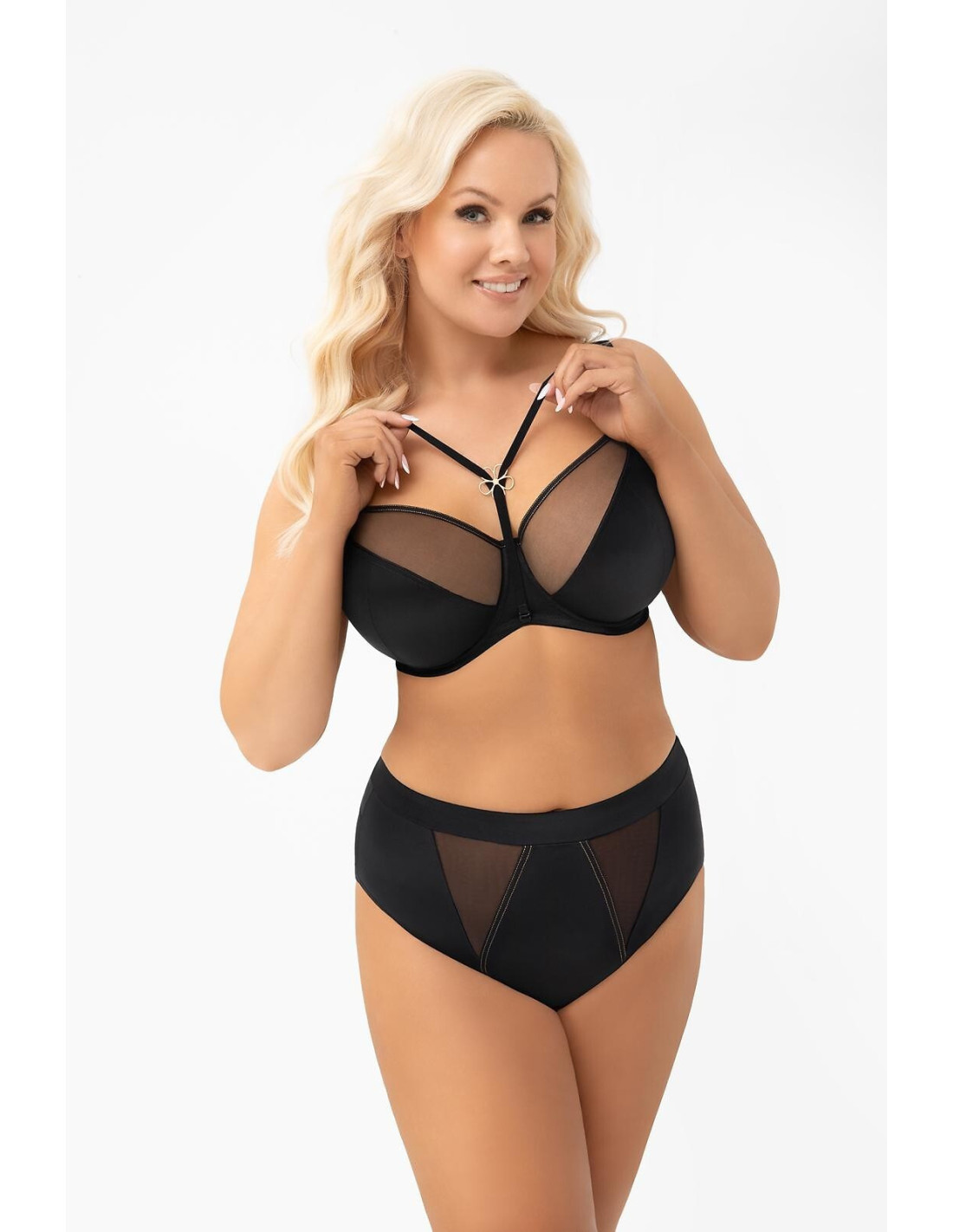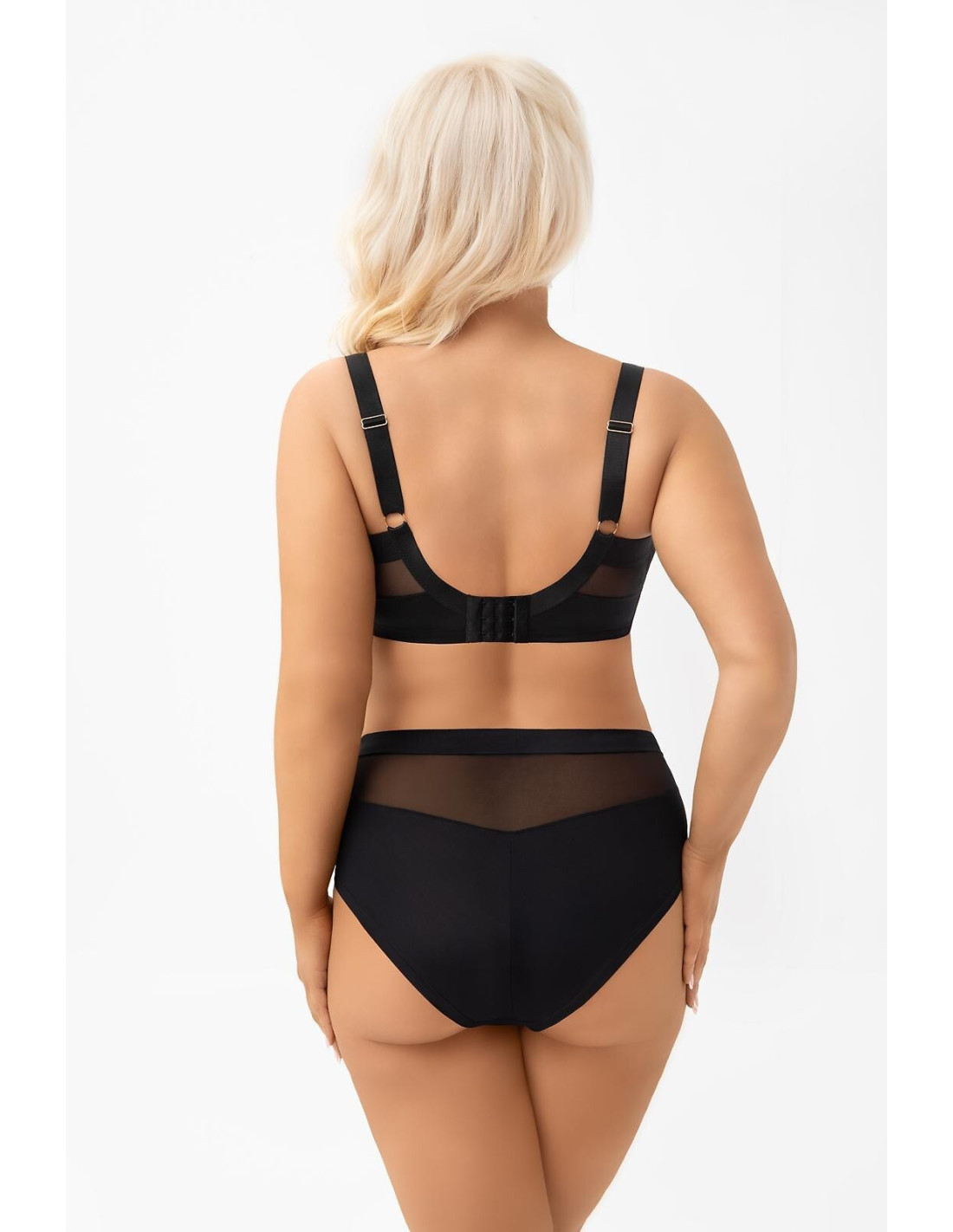 - dla zwiększenia komfortu użytkowania biustonosz na plecach wykończony szeroką, miękką elastyczną taśmą