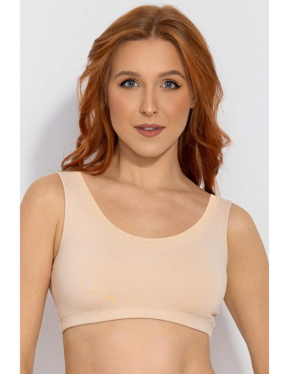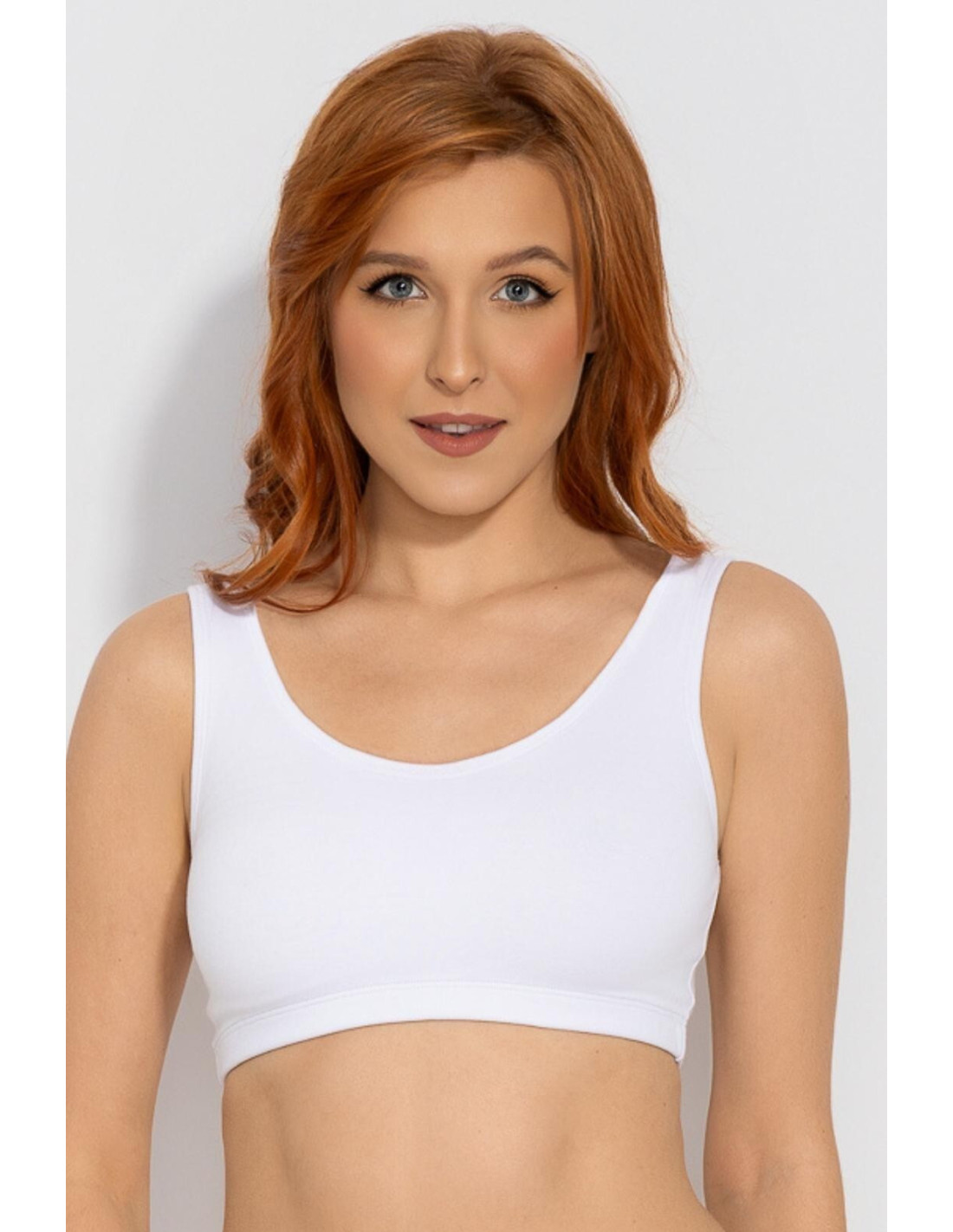 Delikatny top damski - minkka bawełniana dzianina - szerokie ramiączka - bez fiszbin - wkładany przez głowę - pakowany w foliowy woreczek