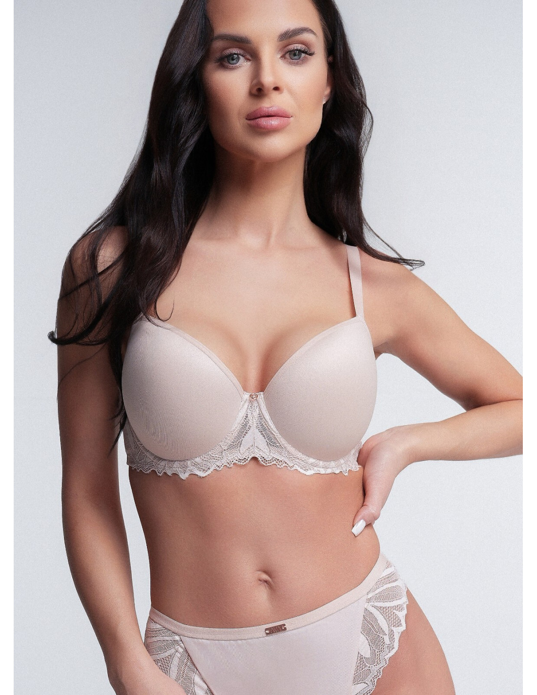 Biustonosz usztywniany tipo sklandi kopa - gładka mikrofibra - miseczki formowane termicznie, nie odznaczają się pod ubraniem - boczki z siateczki bez bocznych fiszbin - nieodpinane ramiączka - konstrukcija K-2255