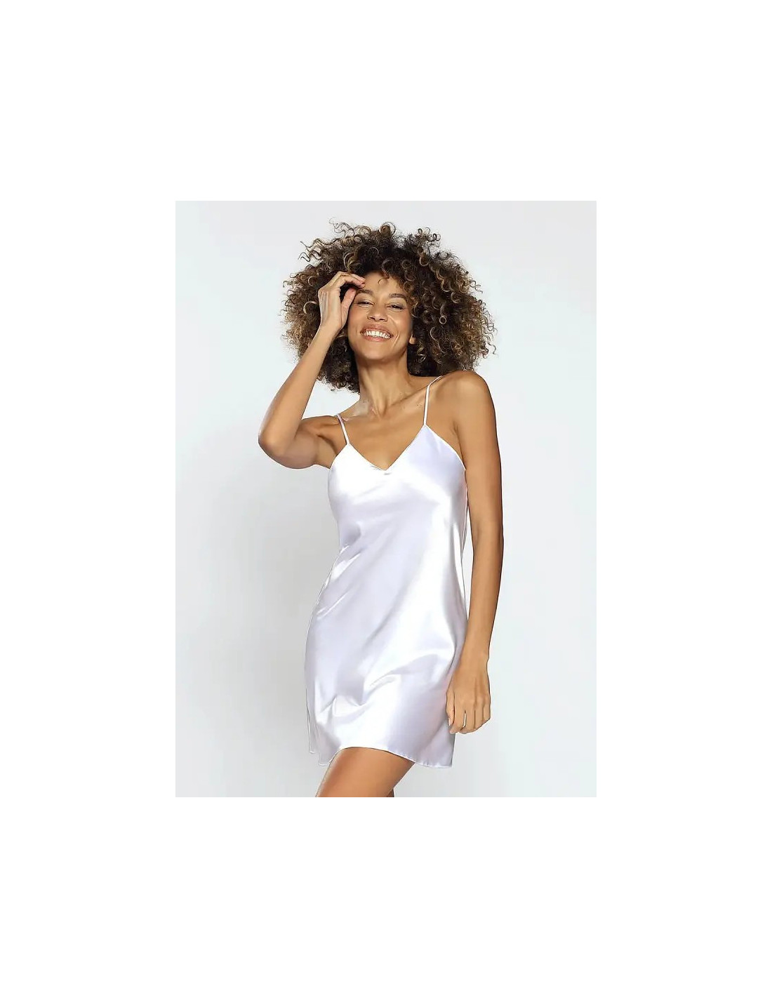 Moteriški naktiniai marškiniai - iš švelnaus satino - ant plono reguliuojamo dirželio - apačioje platėjanti