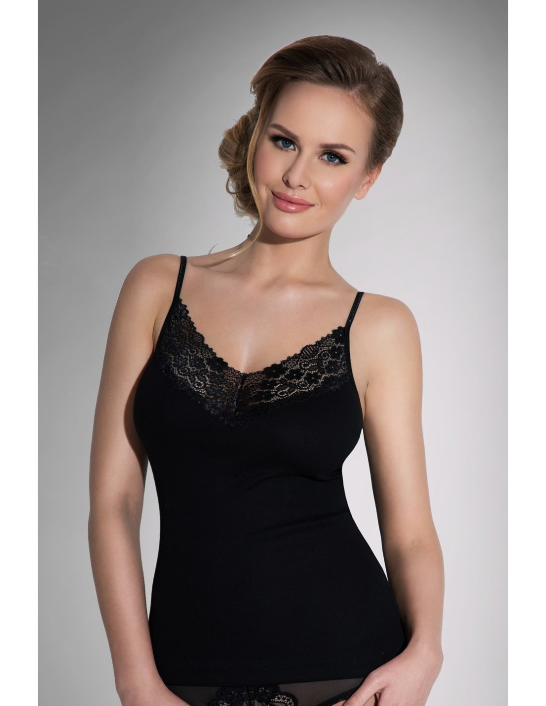 Siauro kirpimo marškinėliai - pagaminti iš grynos medvilnės - iškirptė dekoruota subtiliu gėlių siuvinėjimu - patogūs ir minkšti liesti - diskretiški, nepastebimi apvadai