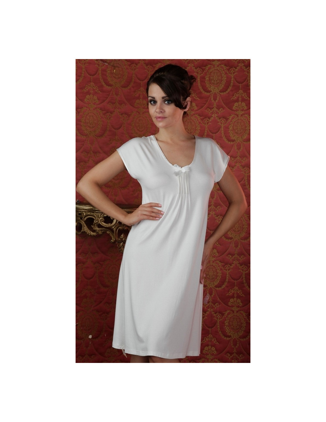 Moteriški marškinėliai - iš aukštos kokybės viskozės - trumpomis rankovėmis - pusapvalė iškirptė, apsiūta satino apvadais - puošti lankeliu ir subtilia klostele