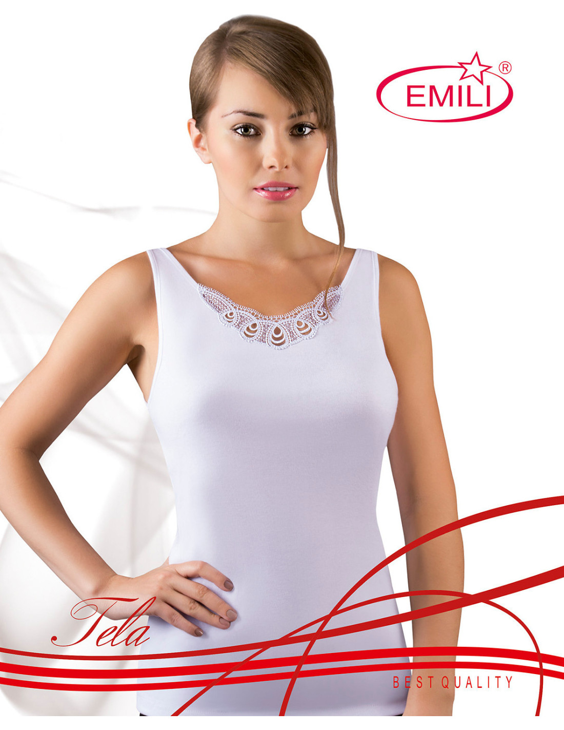 Moteriški medvilniniai marškinėliai - plačios petnešos - įspūdingu gipiūro raštu dekoruota iškirptė