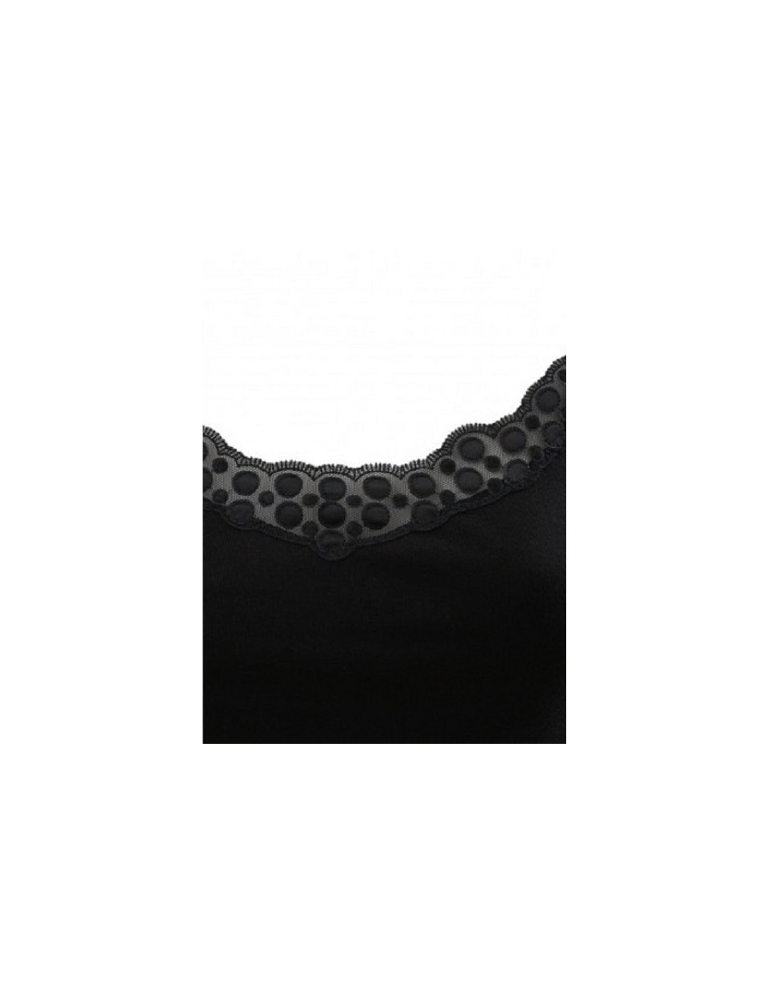 Moteriški marškinėliai - su siauru dirželiu per petį - pagaminti iš gražios ir malonios medvilnės - iškirptė dekoruota akį traukiančiu gipiūro intarpu