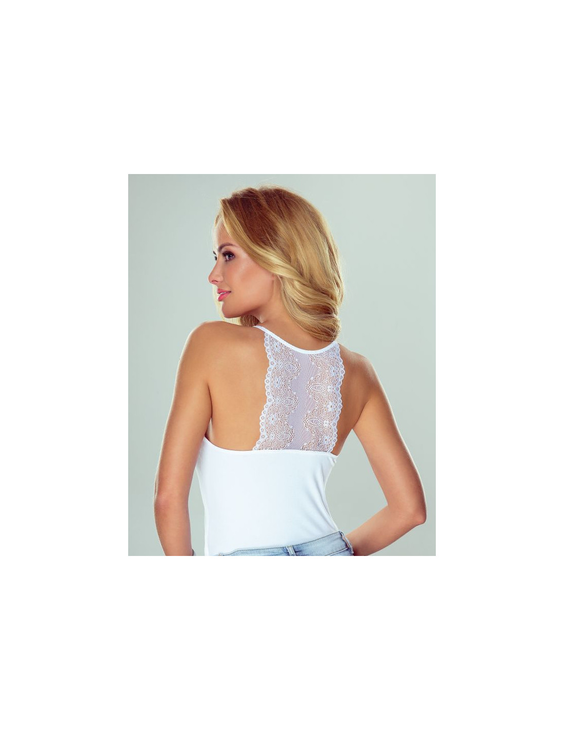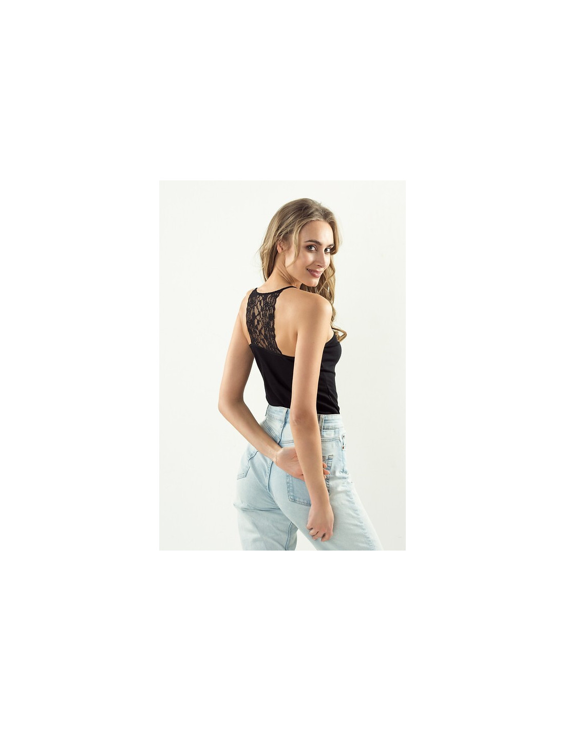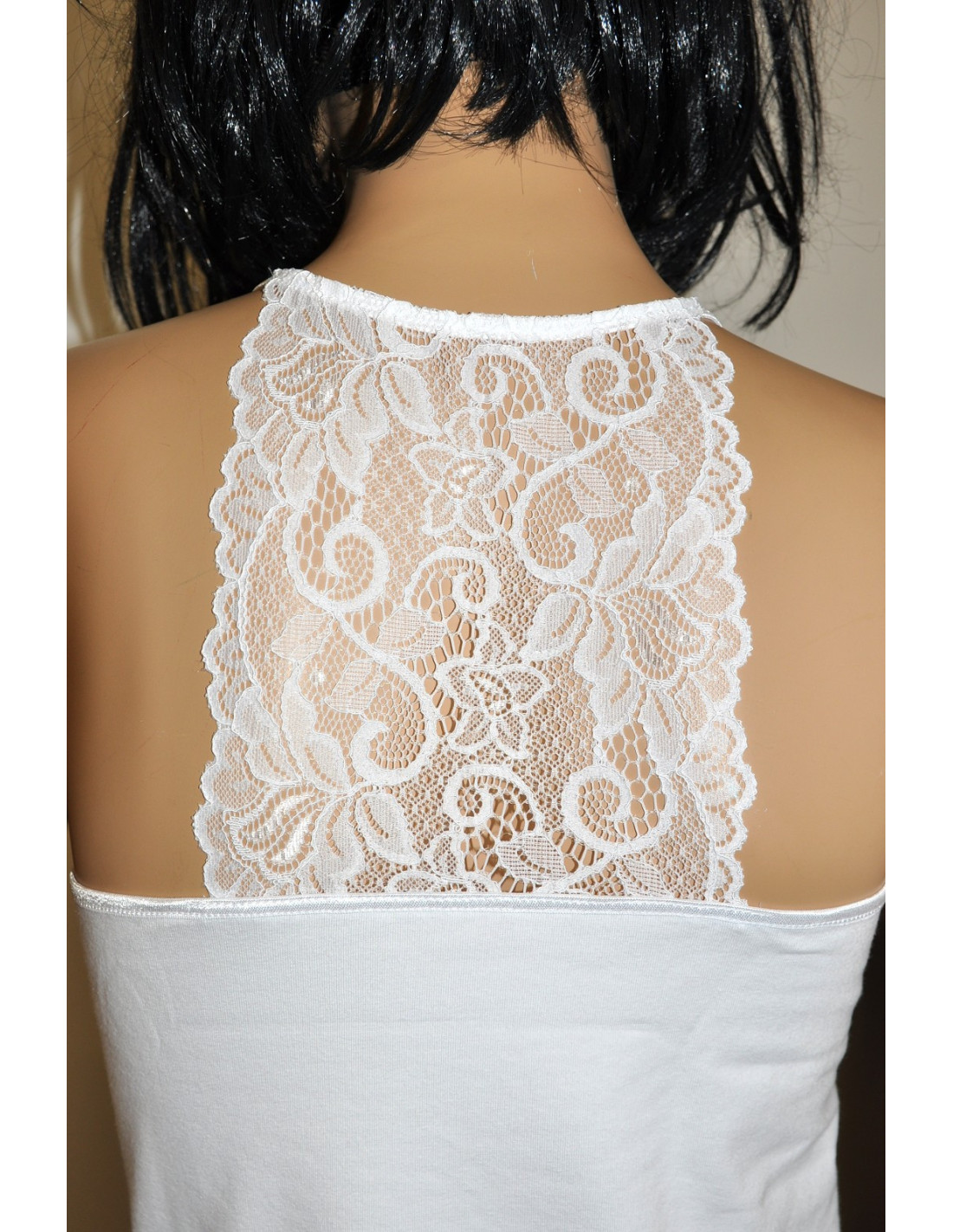Moteriški marškinėliai - aukštos kokybės medvilnė - siauros petnešėlės - nėriniuota iškirptė - akį traukianti nėrinių nugara