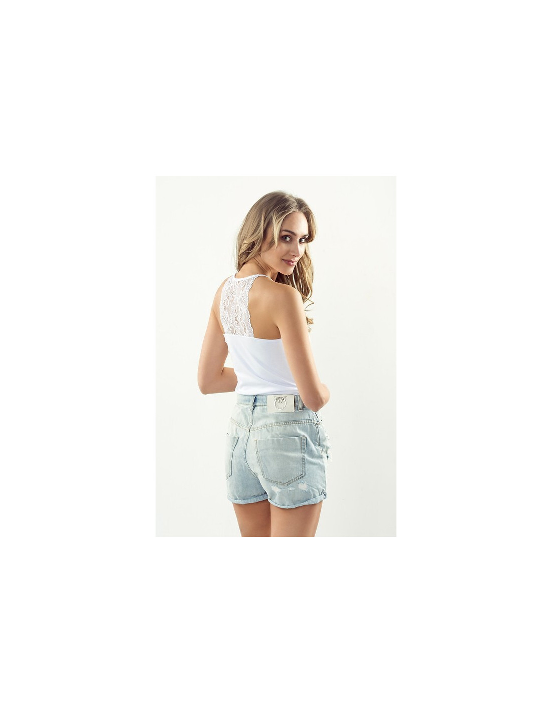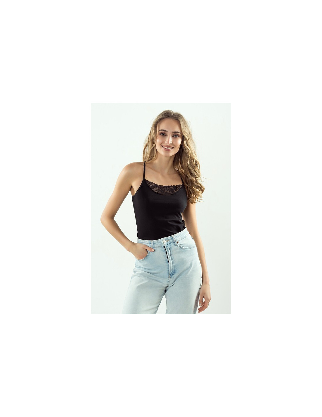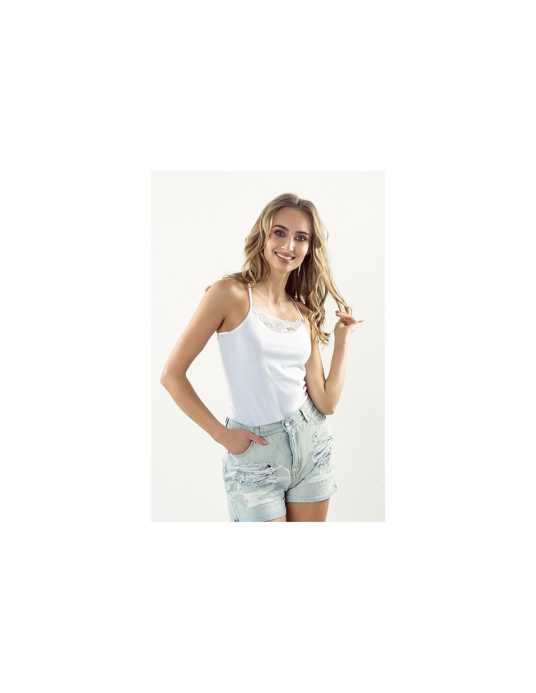 Moteriški marškinėliai - aukštos kokybės medvilnė - siauros petnešėlės - nėriniuota iškirptė - akį traukianti nėrinių nugara