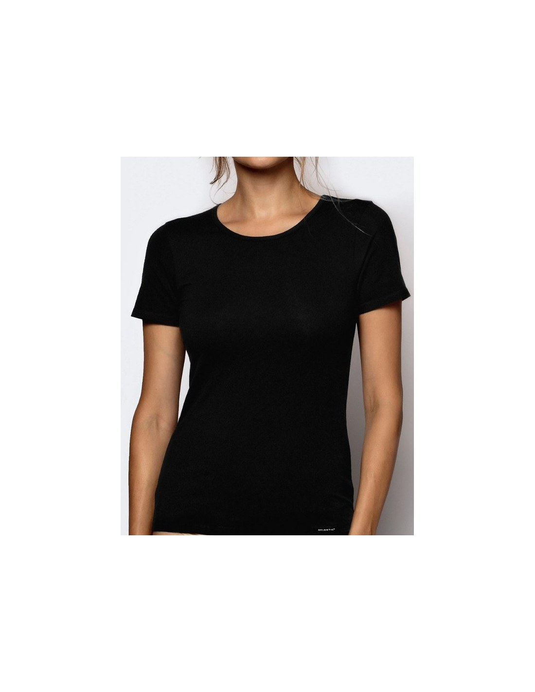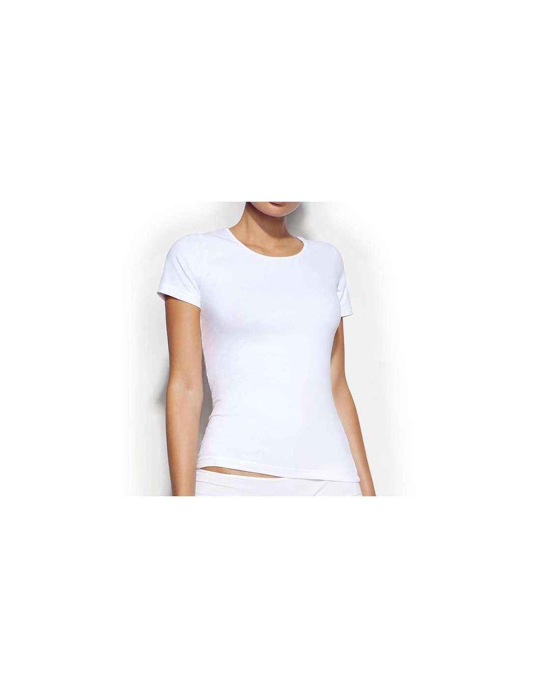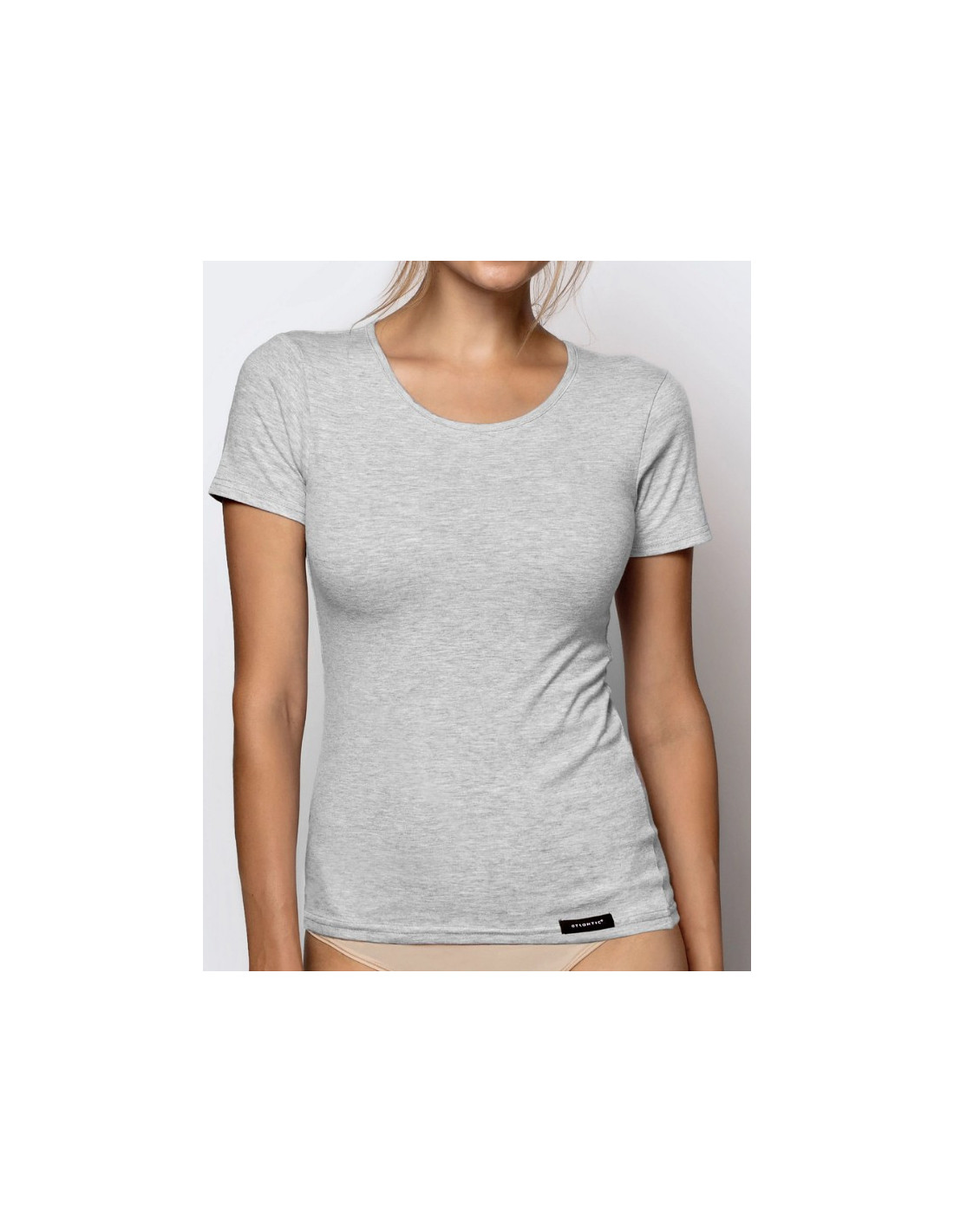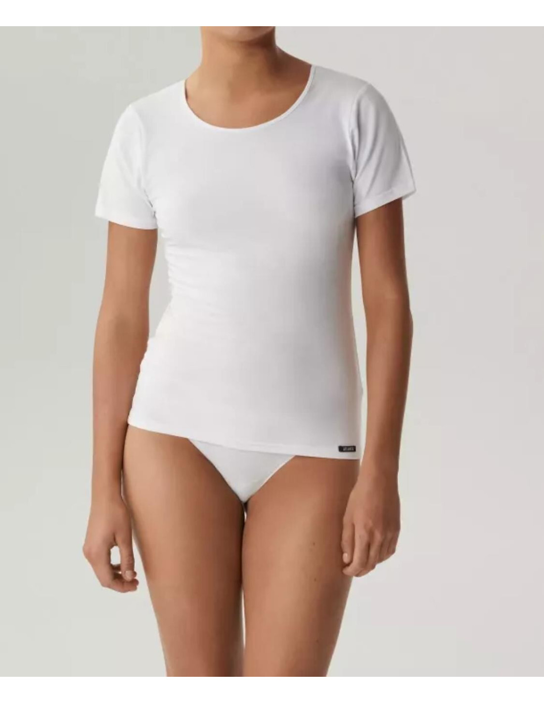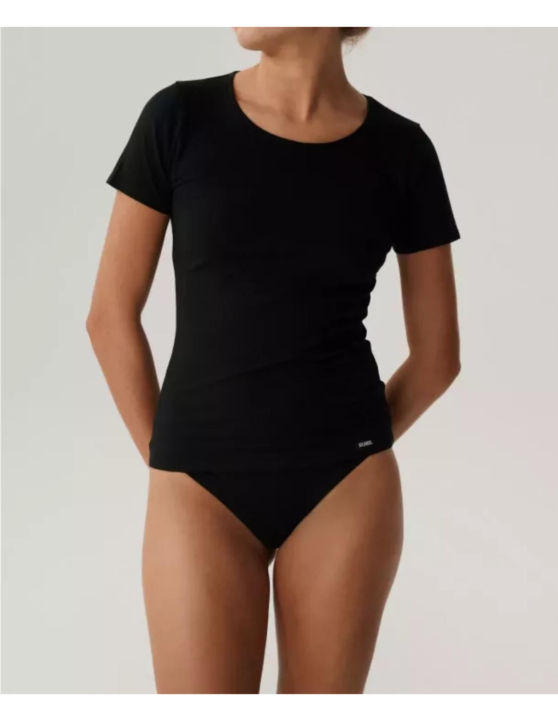 Moteriški medvilniniai marškinėliai - trumpomis rankovėmis - pusapvalė iškirptė, plokščios siūlės - subtilūs apvadai