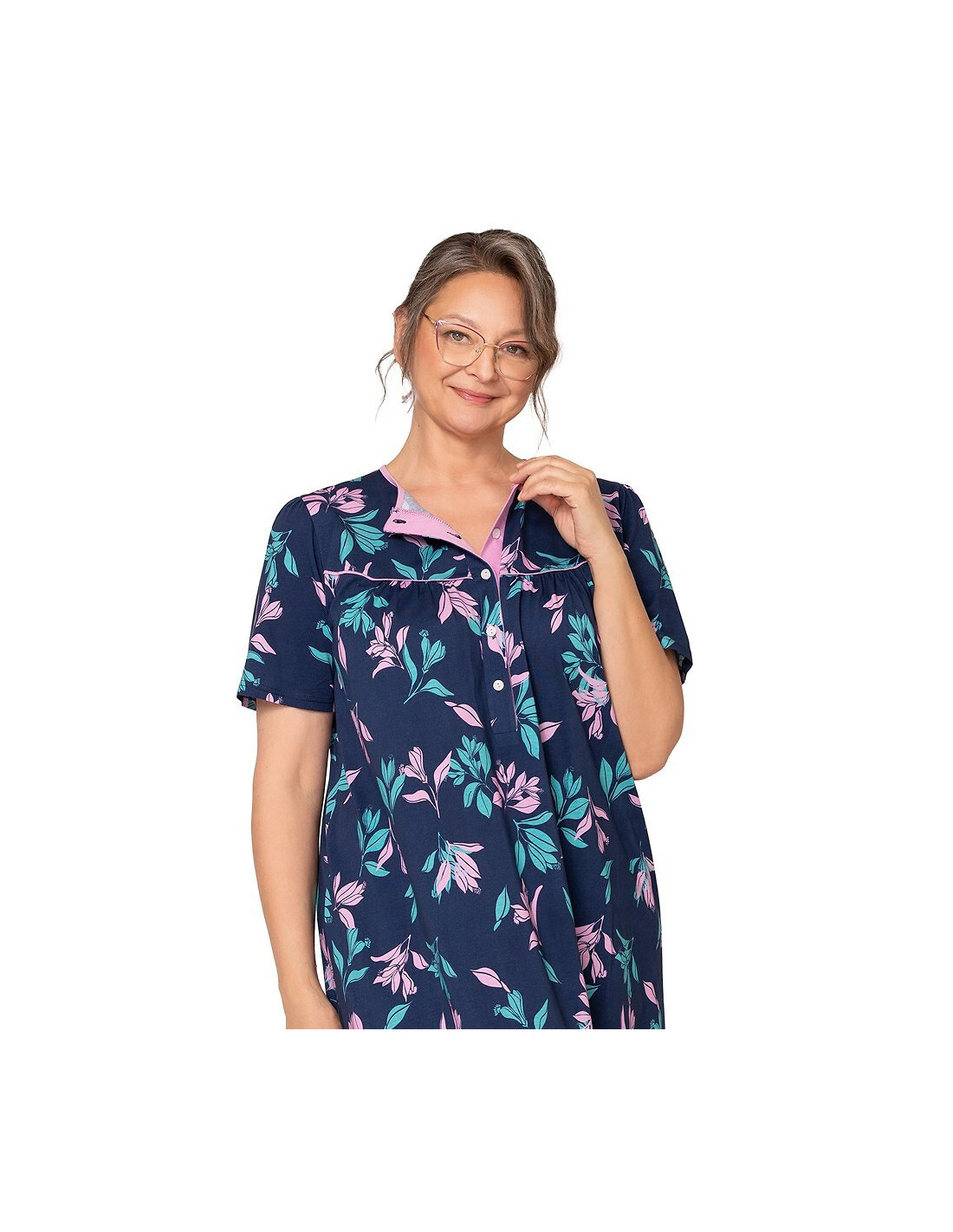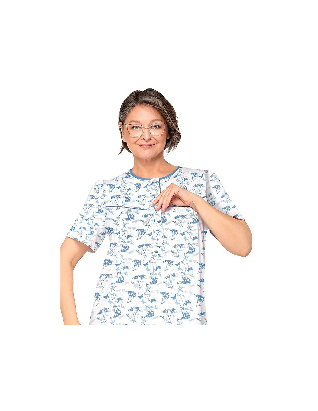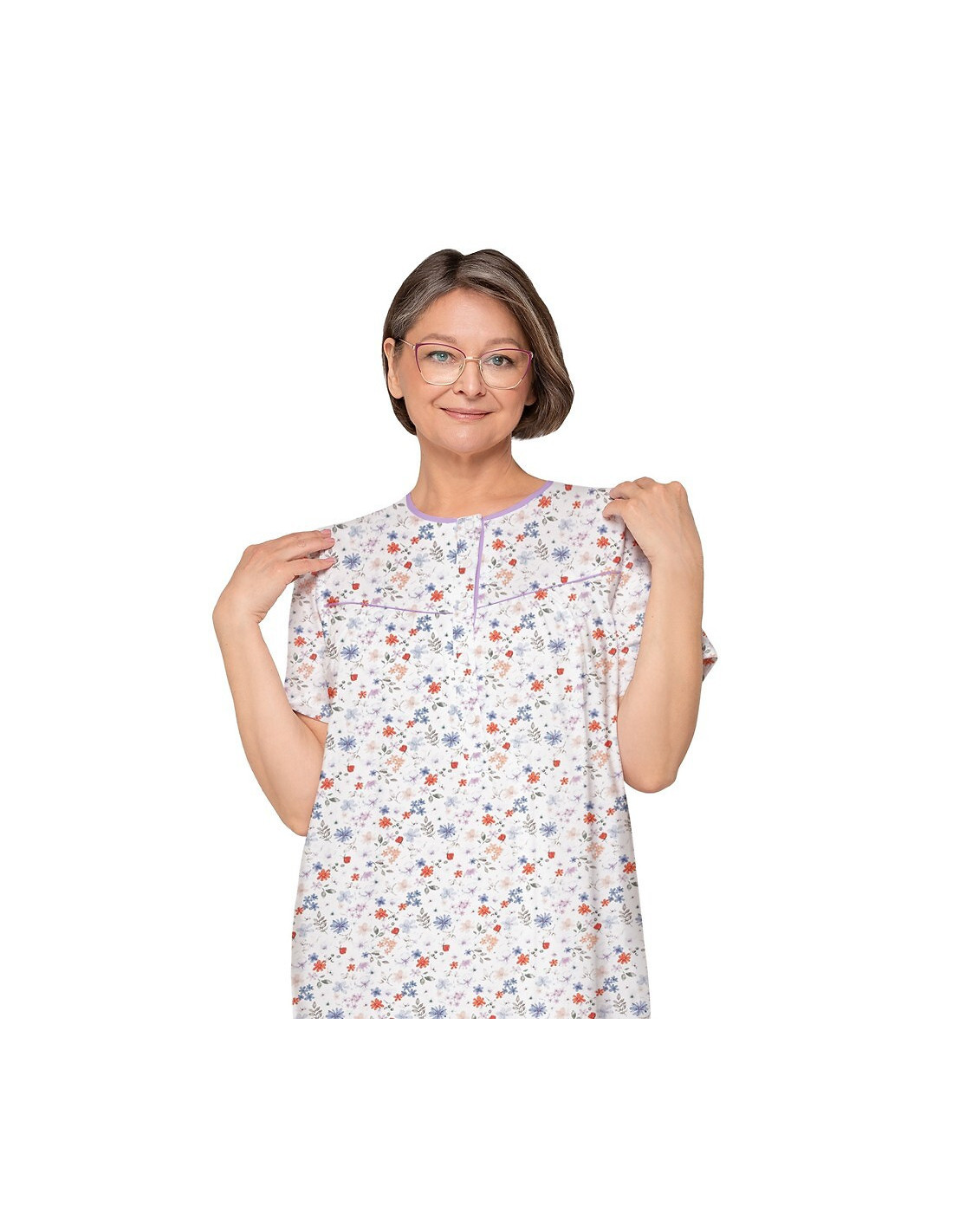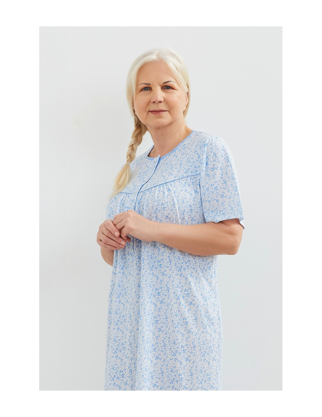 Naktiniai marškiniai trumpomis rankovėmis - pagamintas iš malonios minkštos medvilnės - marškiniai užsegami sagomis - marškinių viršus užbaigtas raukšle