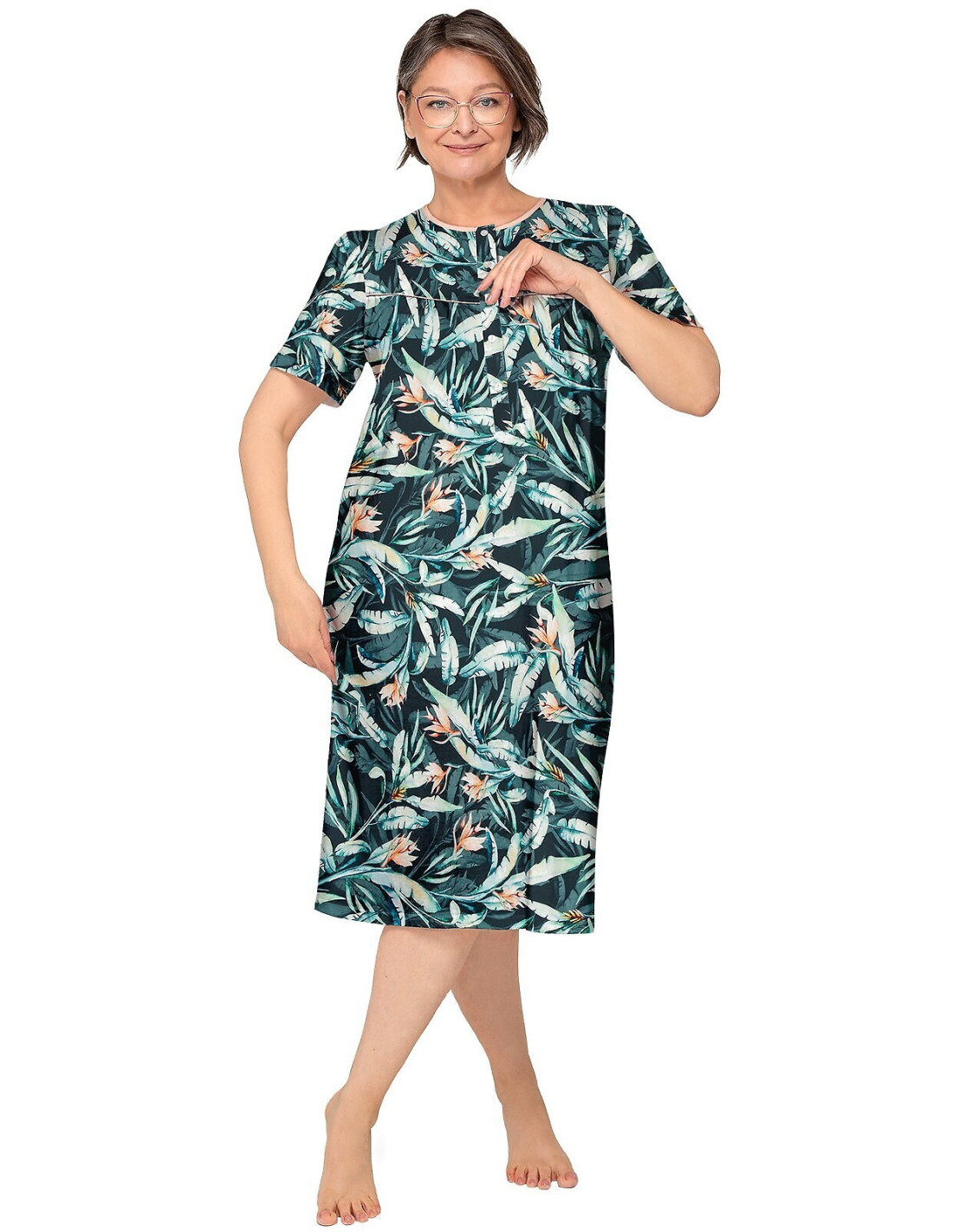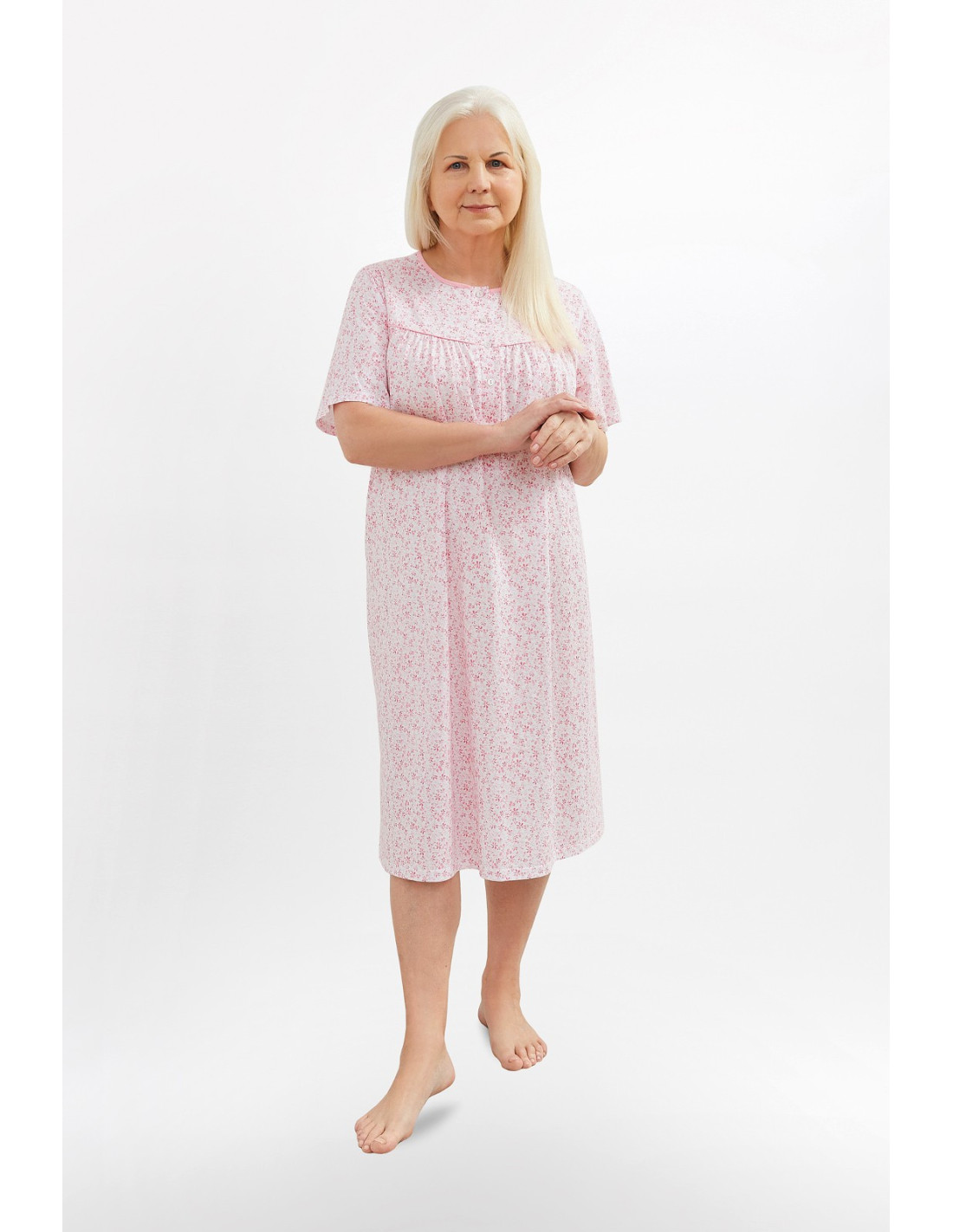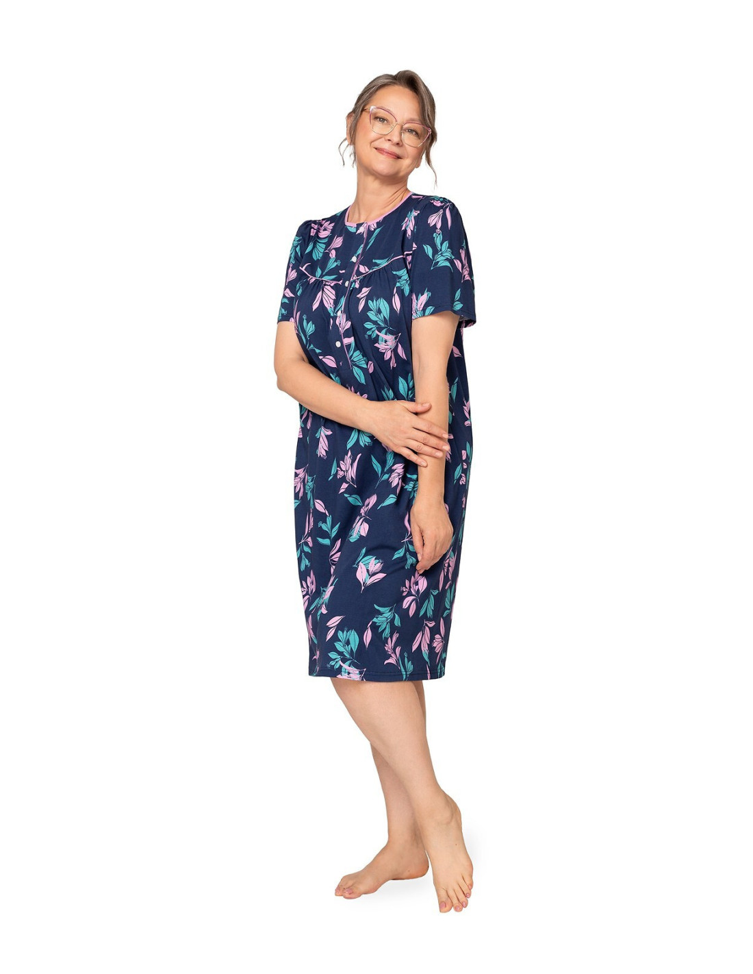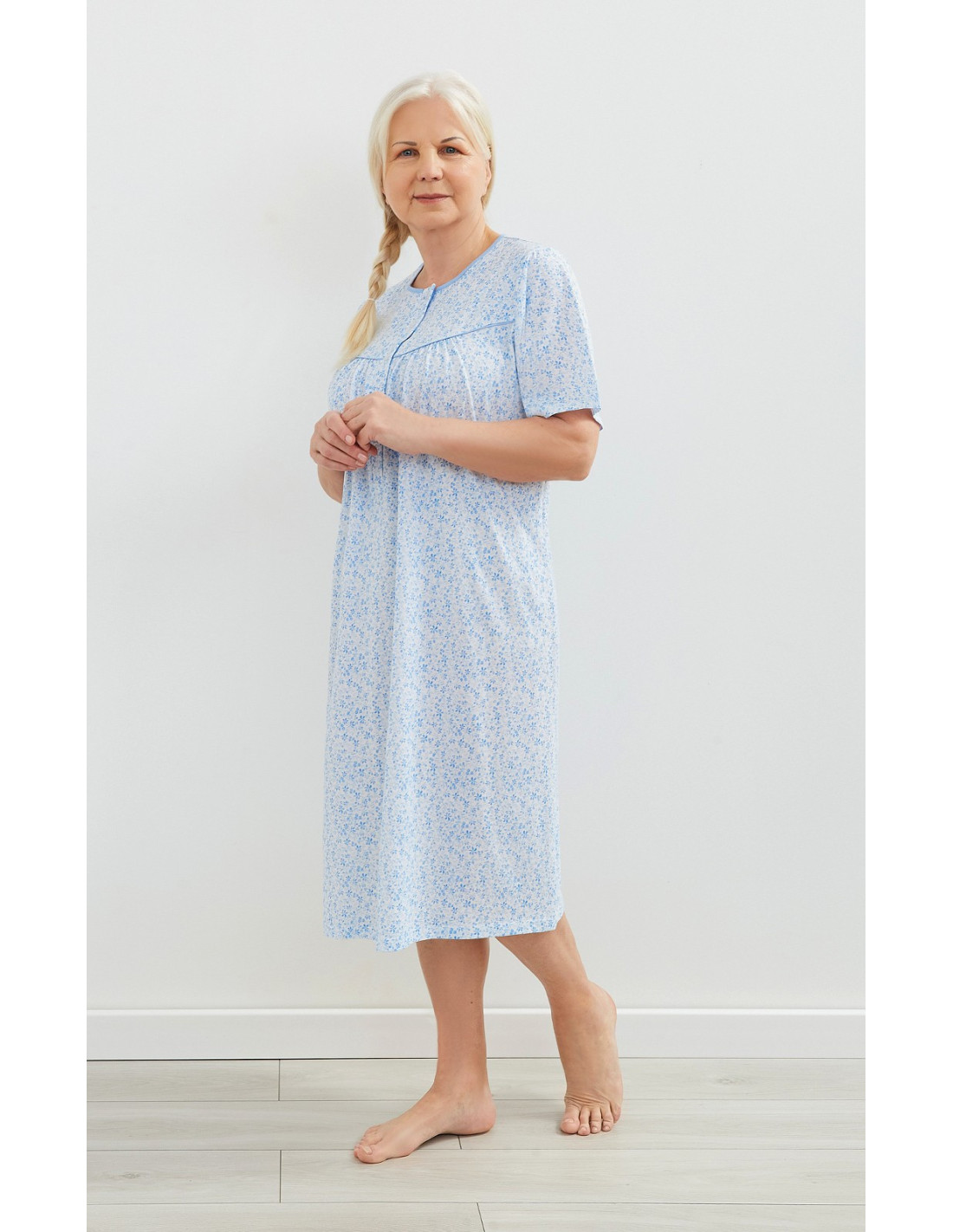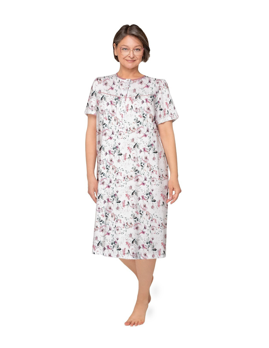 Naktiniai marškiniai trumpomis rankovėmis - pagamintas iš malonios minkštos medvilnės - marškiniai užsegami sagomis - marškinių viršus užbaigtas raukšle