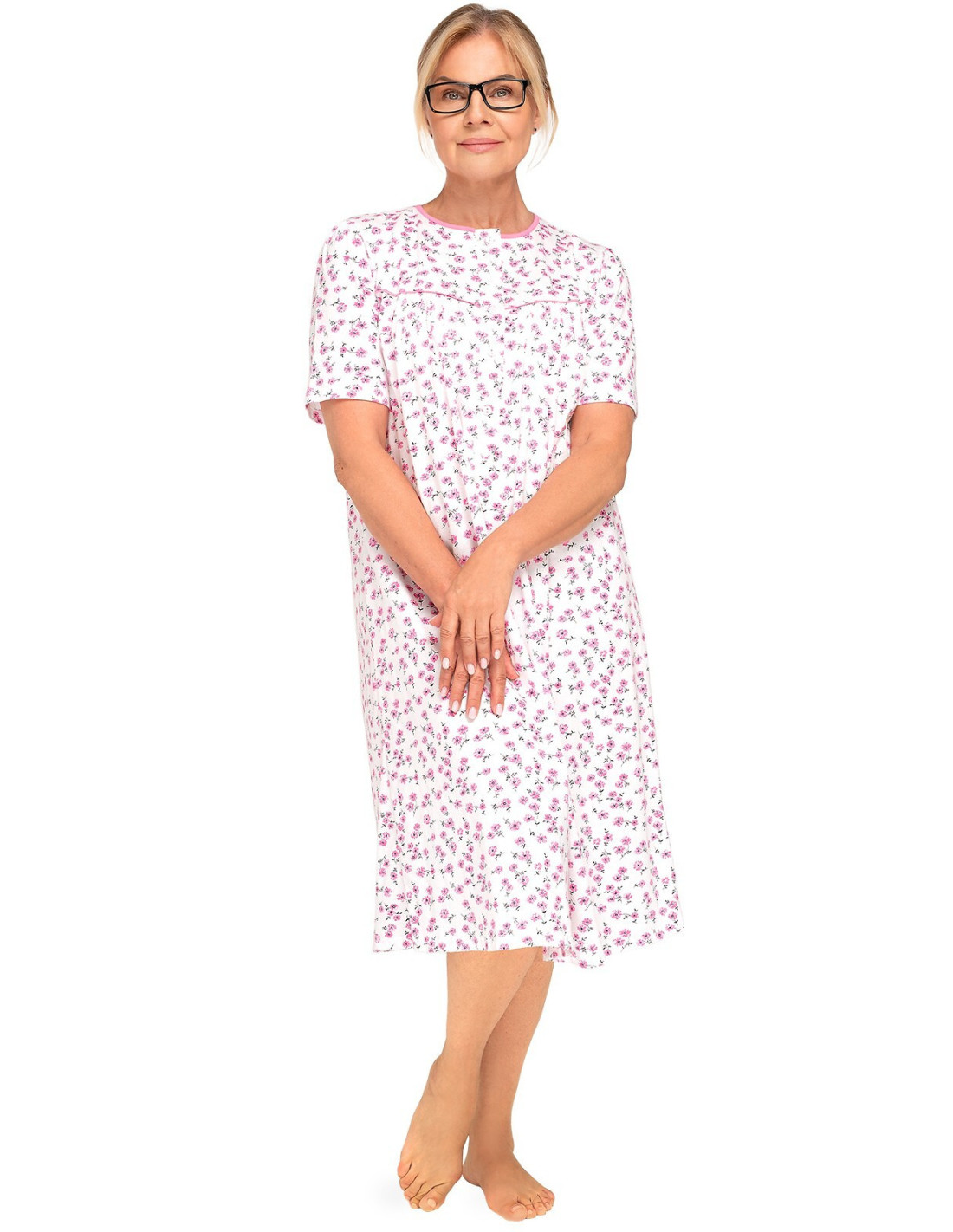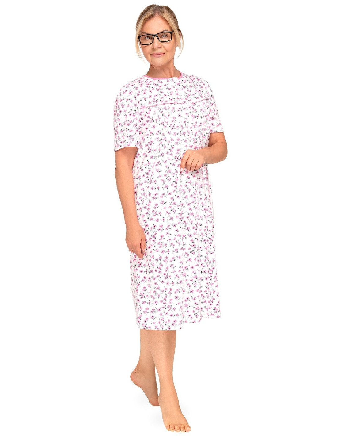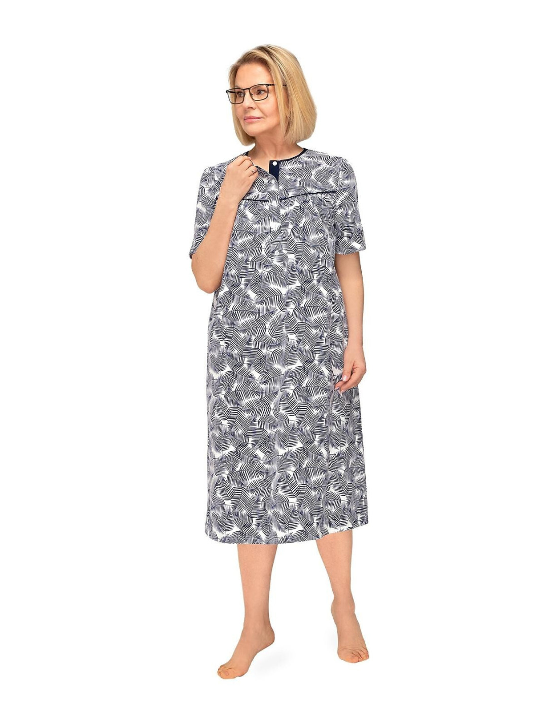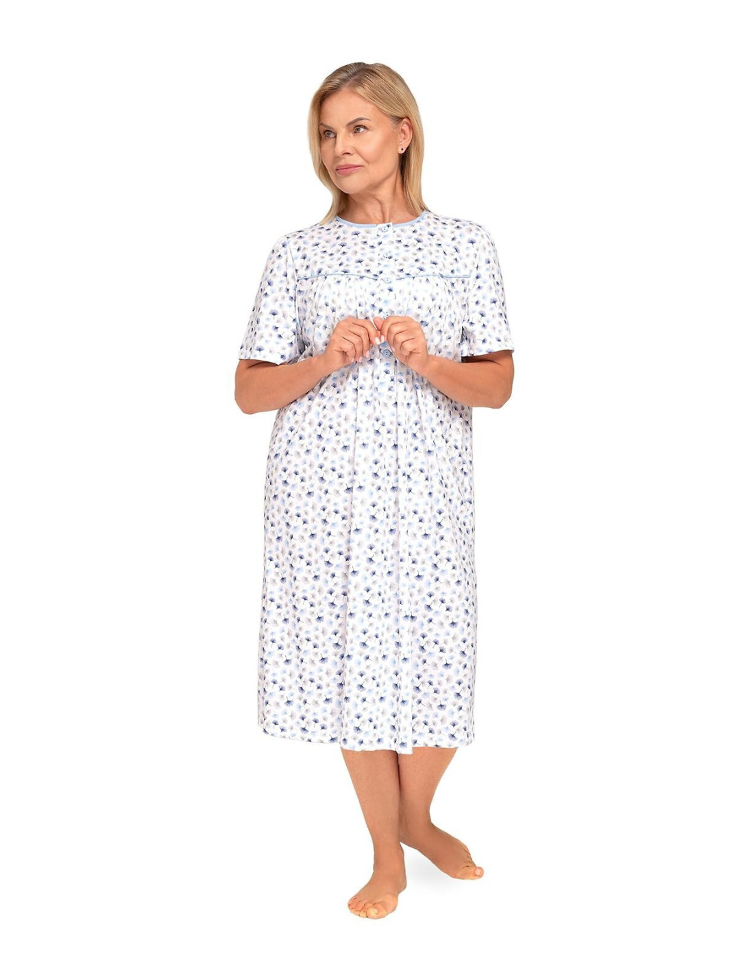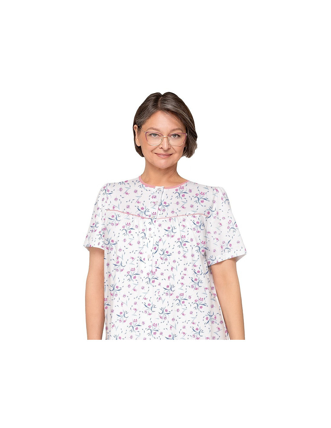 Naktiniai marškiniai trumpomis rankovėmis - pagamintas iš malonios minkštos medvilnės - marškiniai užsegami sagomis - marškinių viršus užbaigtas raukšle