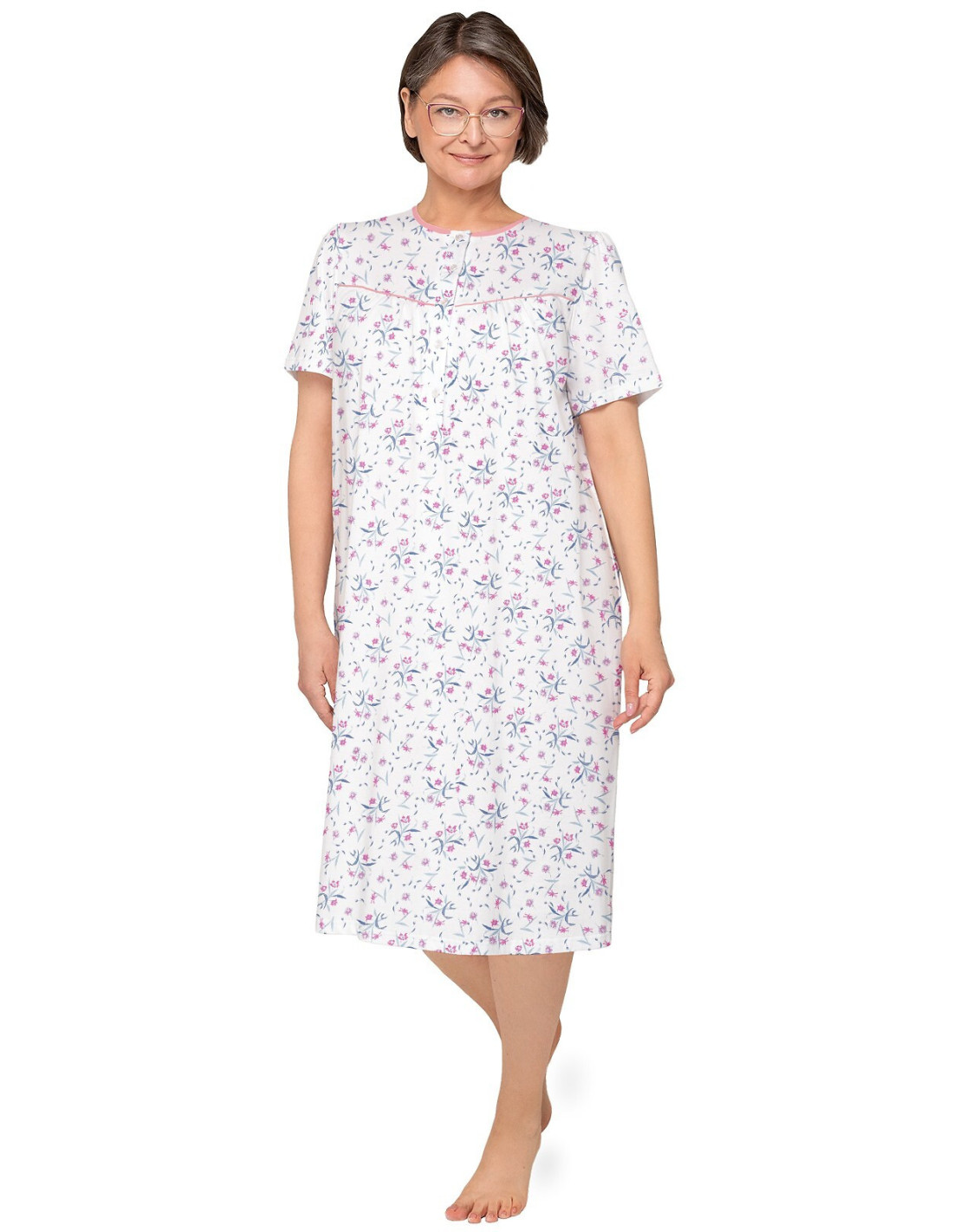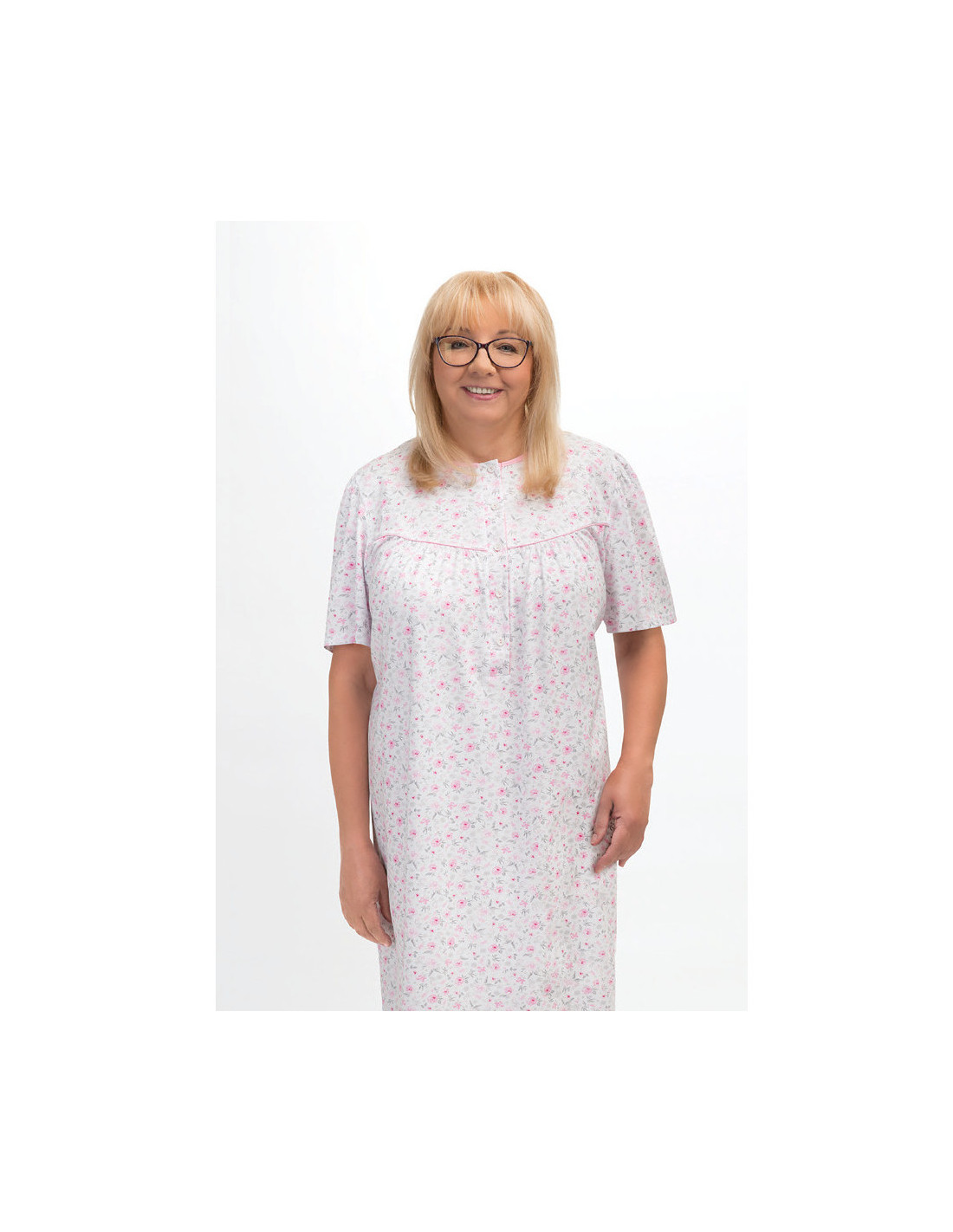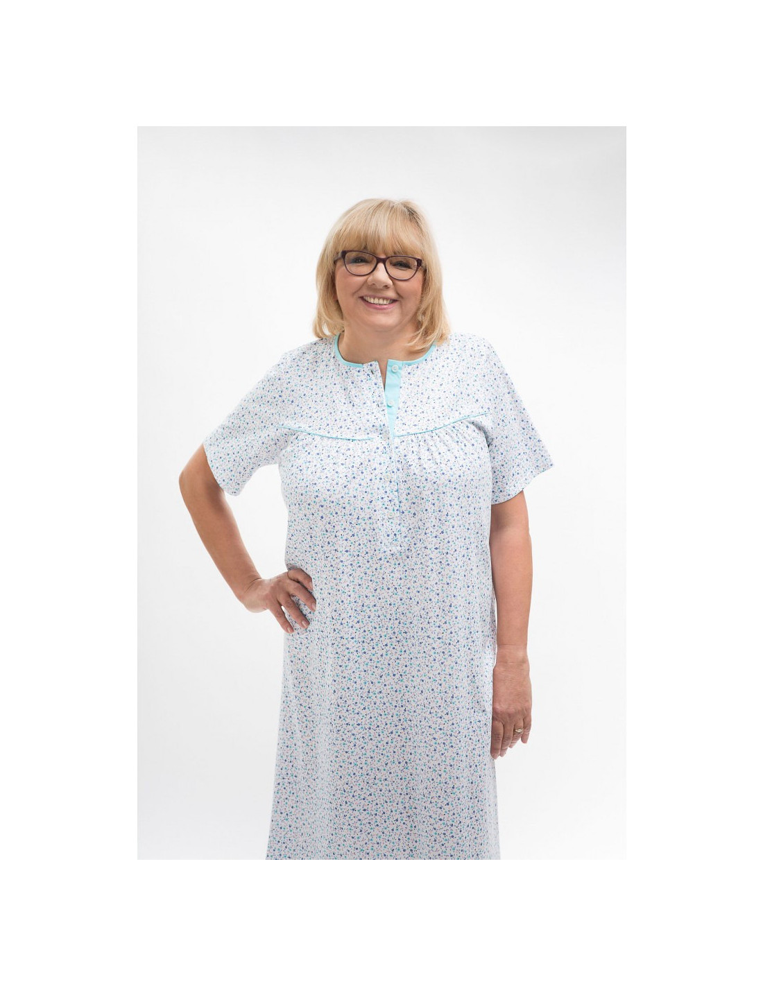 Naktiniai marškiniai trumpomis rankovėmis - pagamintas iš malonios minkštos medvilnės - marškiniai užsegami sagomis - marškinių viršus užbaigtas raukšle