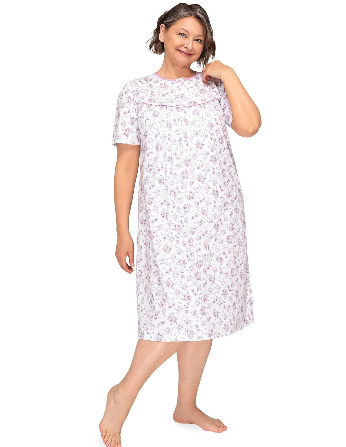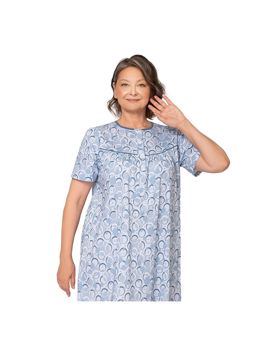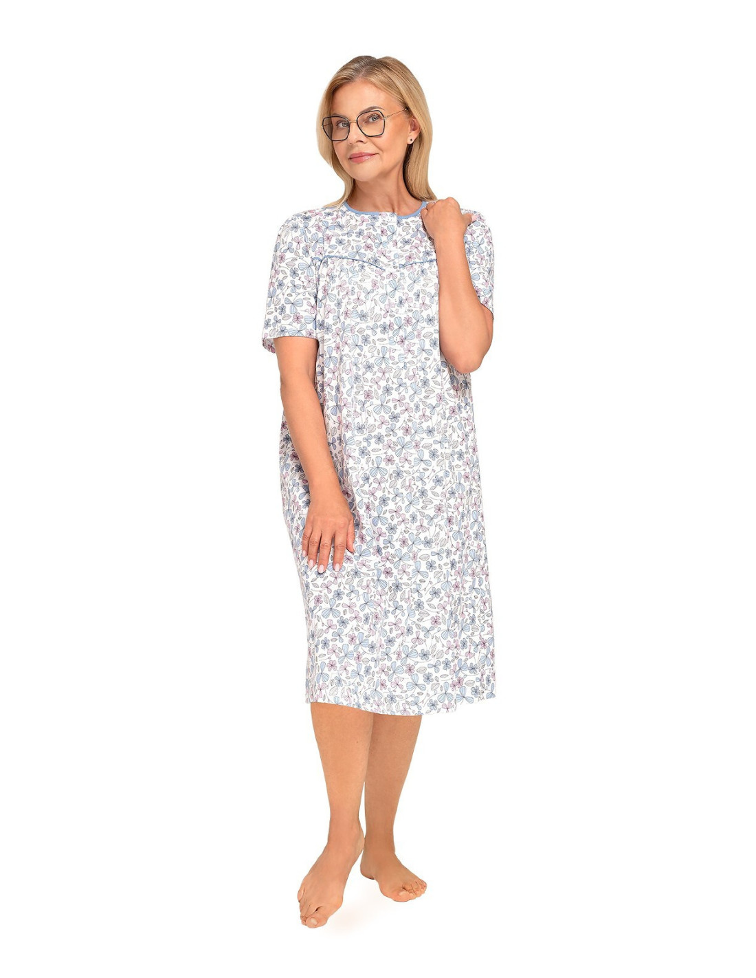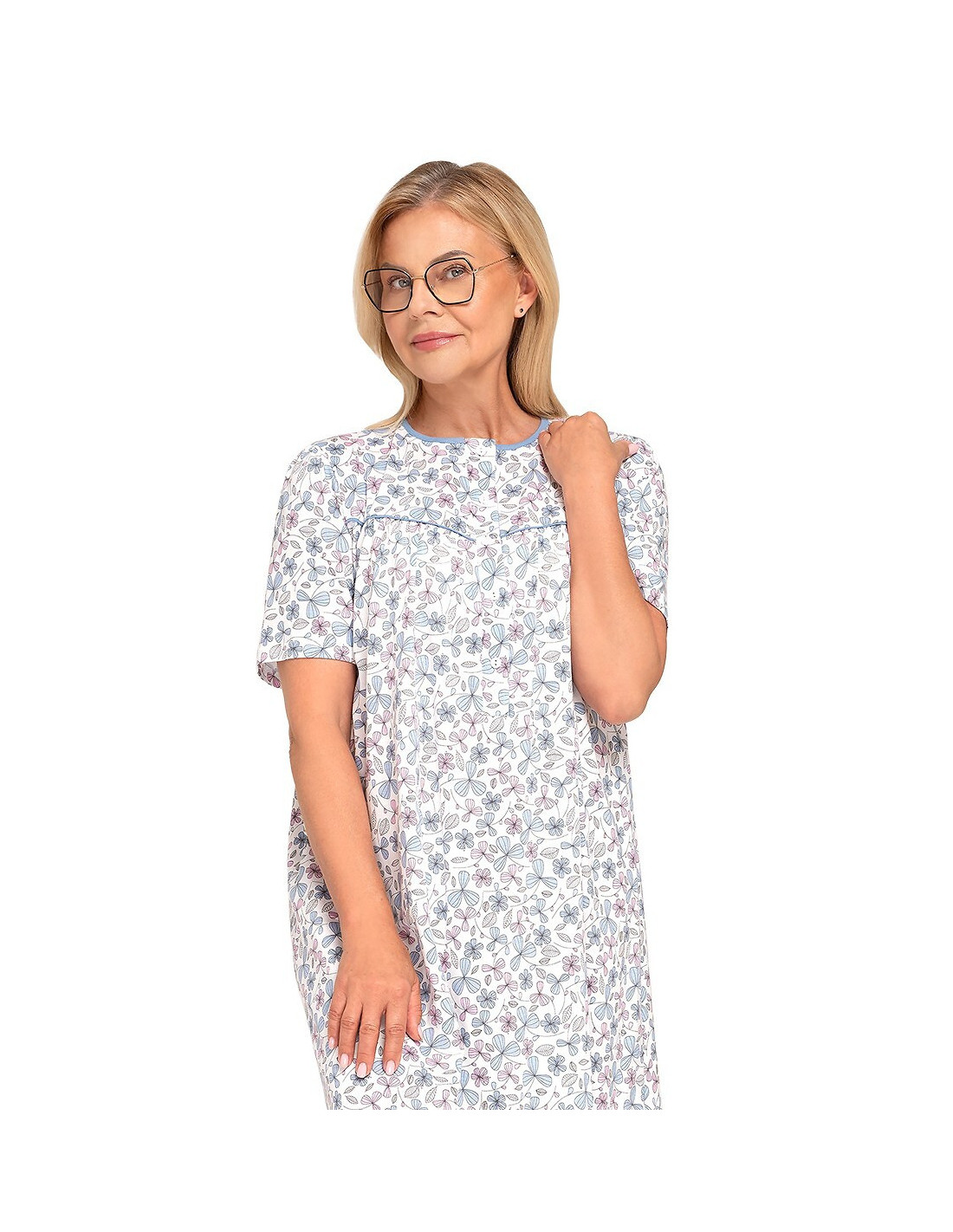 Naktiniai marškiniai trumpomis rankovėmis - pagamintas iš malonios minkštos medvilnės - marškiniai užsegami sagomis - marškinių viršus užbaigtas raukšle