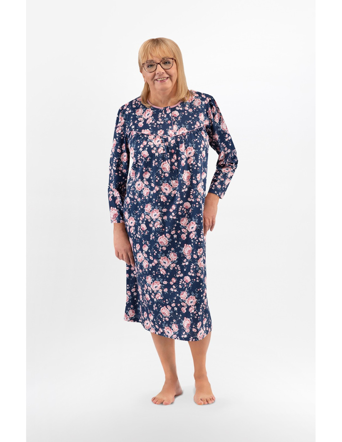 Naktiniai marškiniai ilgomis rankovėmis - pagamintas iš malonios minkštos medvilnės - marškiniai užsegami sagomis - marškinių viršus užbaigtas raukšle