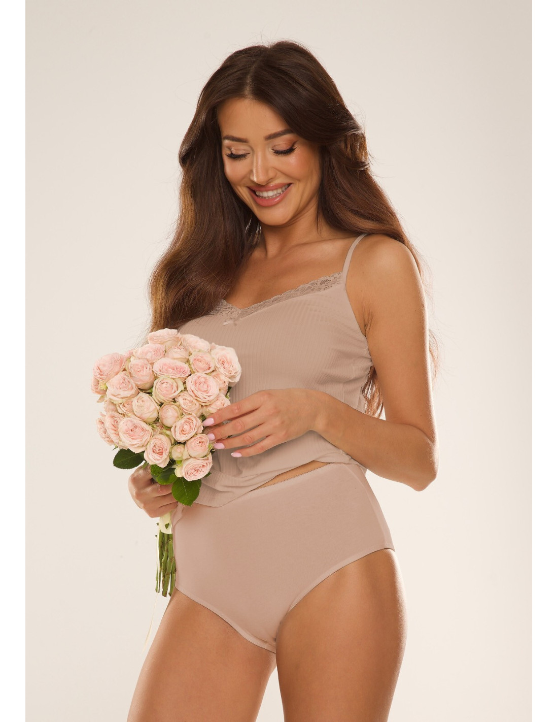Moteriški marškinėliai - pagaminti iš briaunuotos viskozės - smailėjanti iškirptė dekoruota ažūriniais nėriniais - siauros reguliuojamos petnešėlės