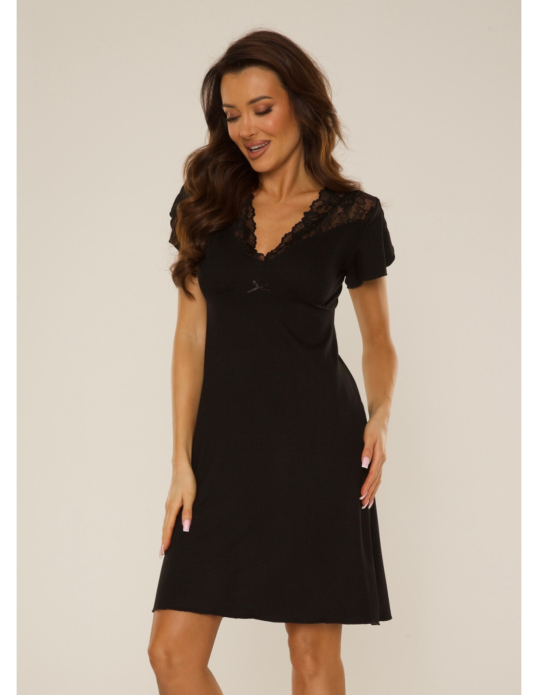 Moteriški marškinėliai - iš švelnios viskozės - trumpos rankovės su dekoratyviniu prakirpimu - iškirptė ir nugara iš švelnių nėrinių