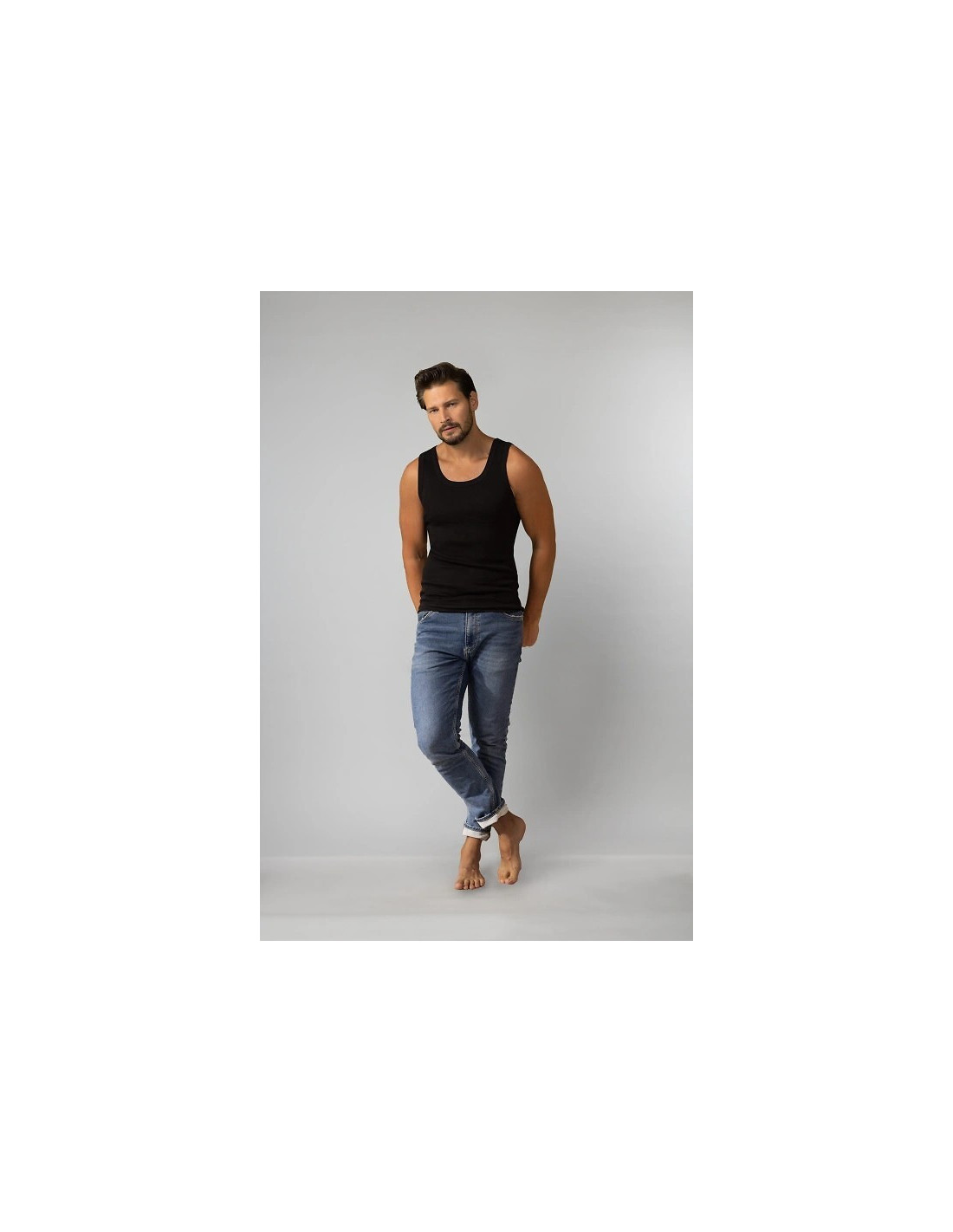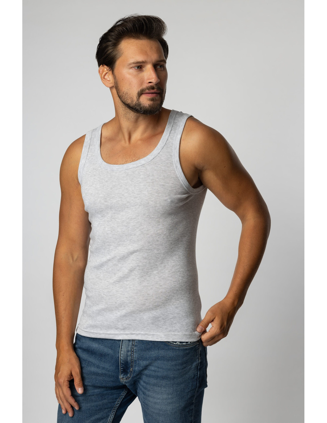 Klasikinė besiūlė liemenė vyrams- nėra siūlių apatinių marškinėlių šonuose- plačios petnešos- pritaikyta prie figūros- malonus liesti trikotažinis audinys, kuris nelūžinėja- marškinėliai pagaminti iš briaunoto trikotažo, prisitaiko prie figūros Sudėtis: sudėtis: 100 % medvilnė