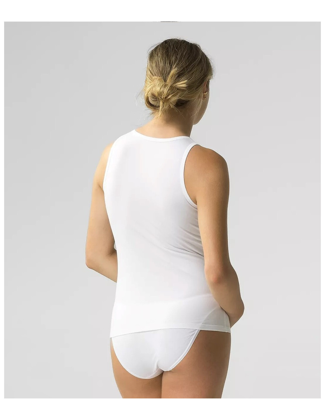 Moteriški medvilniniai marškinėliai - su plačiomis petnešėlėmis - didelė iškirptė, plokščios siūlės - subtilūs apvadai