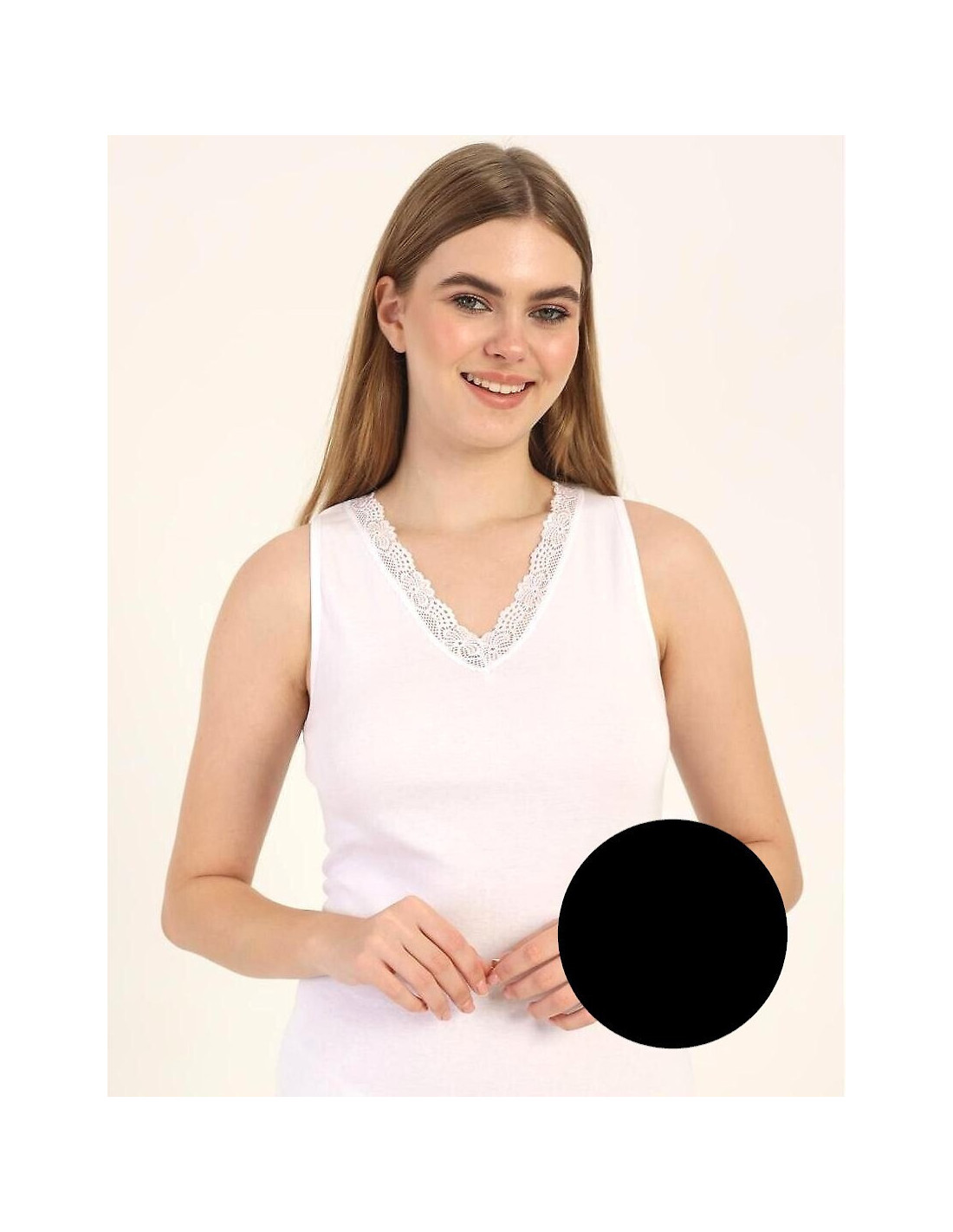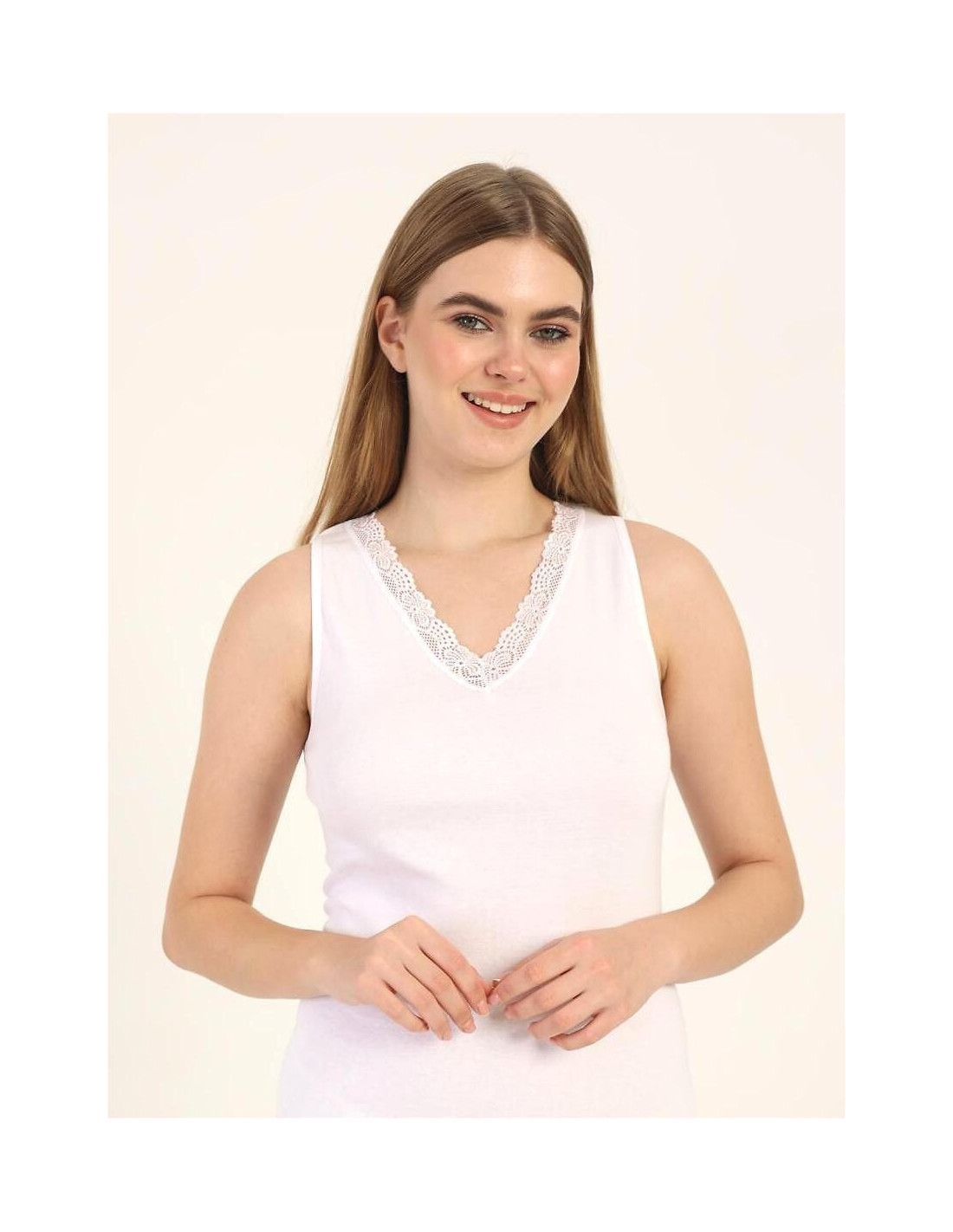 Moteriški marškinėliai - platus diržas per petį - pagaminti iš gražios ir malonios medvilnės - iškirptė dekoruota įspūdingais gėlių rašto nėriniais
