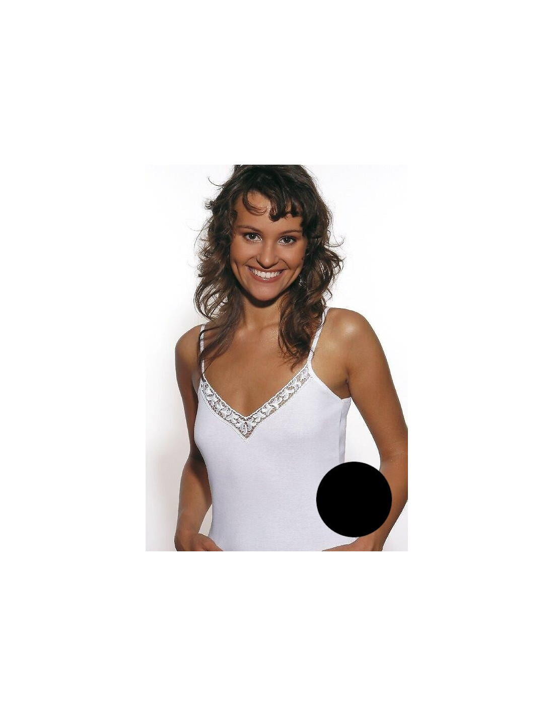 Moteriški marškinėliai - su siauru dirželiu per petį - pagaminti iš gražios ir malonios medvilnės - iškirptė dekoruota akį traukiančiu gipiūro intarpu