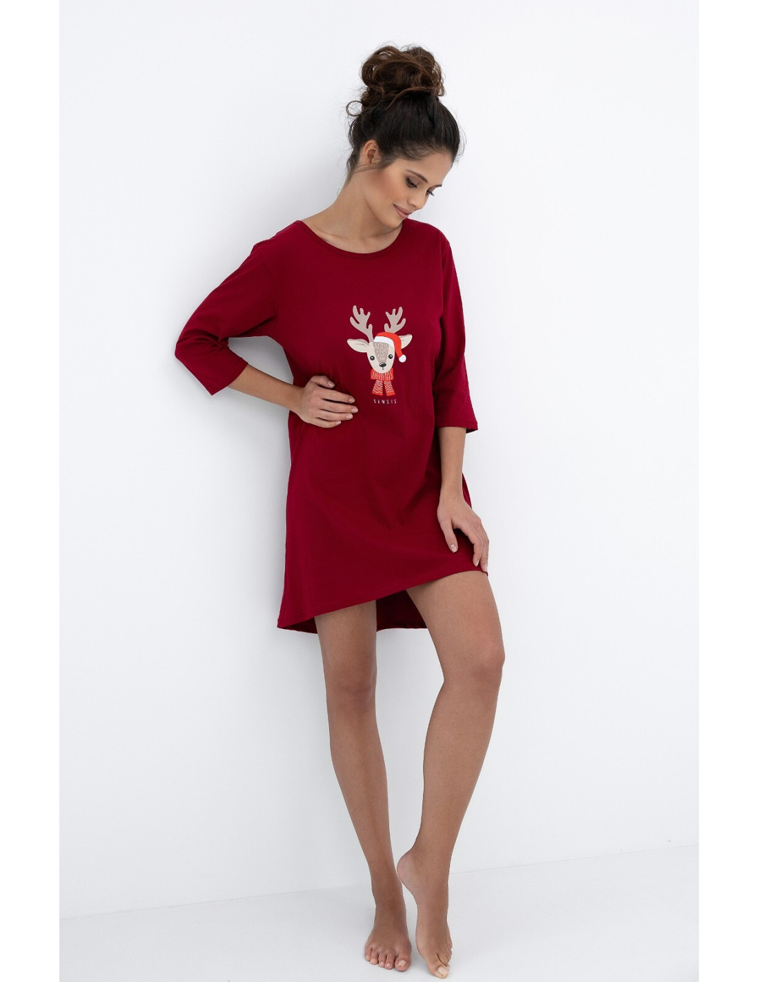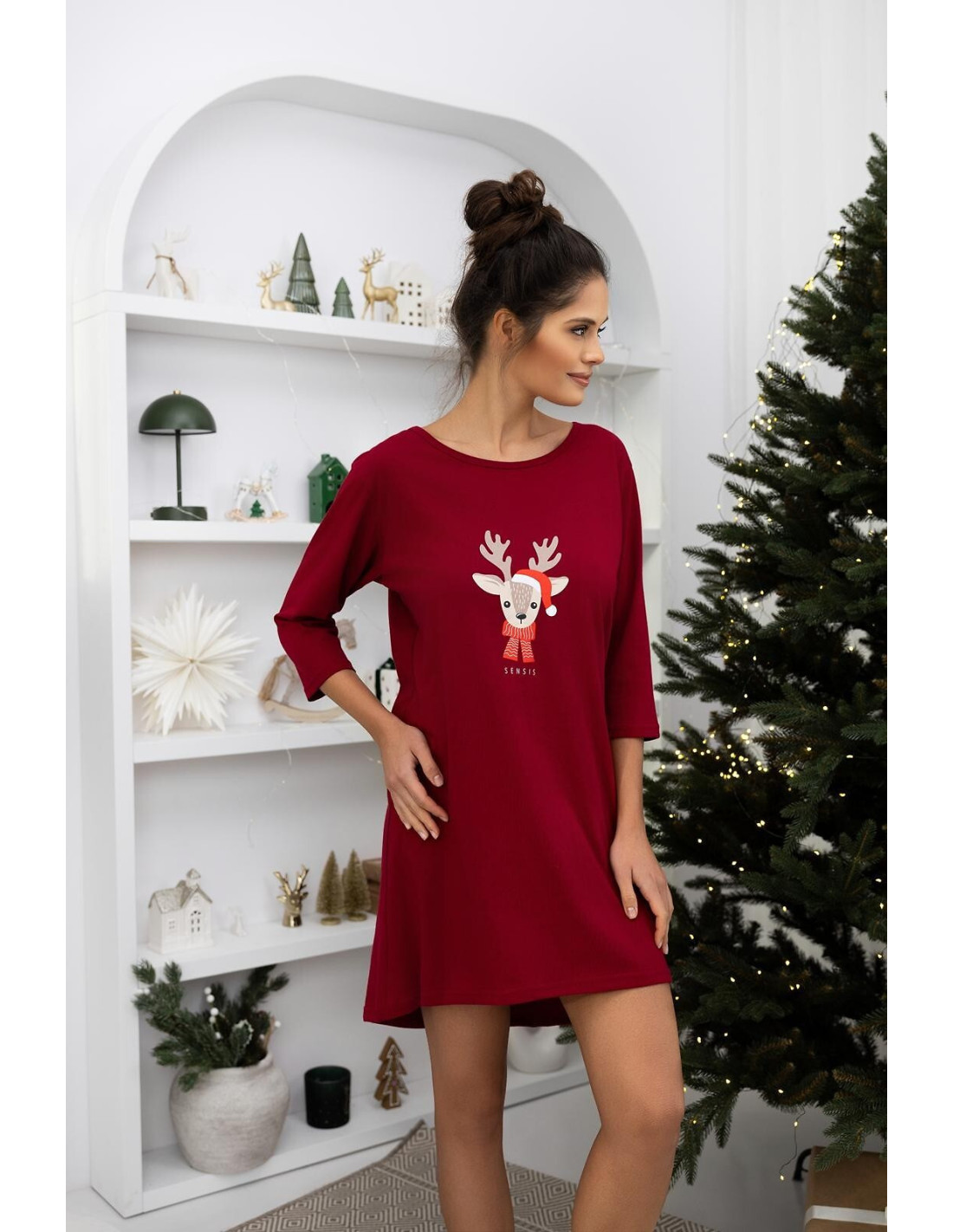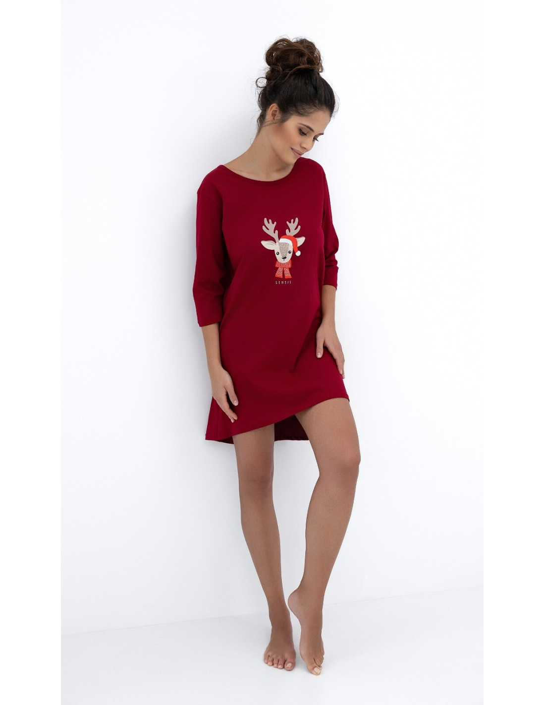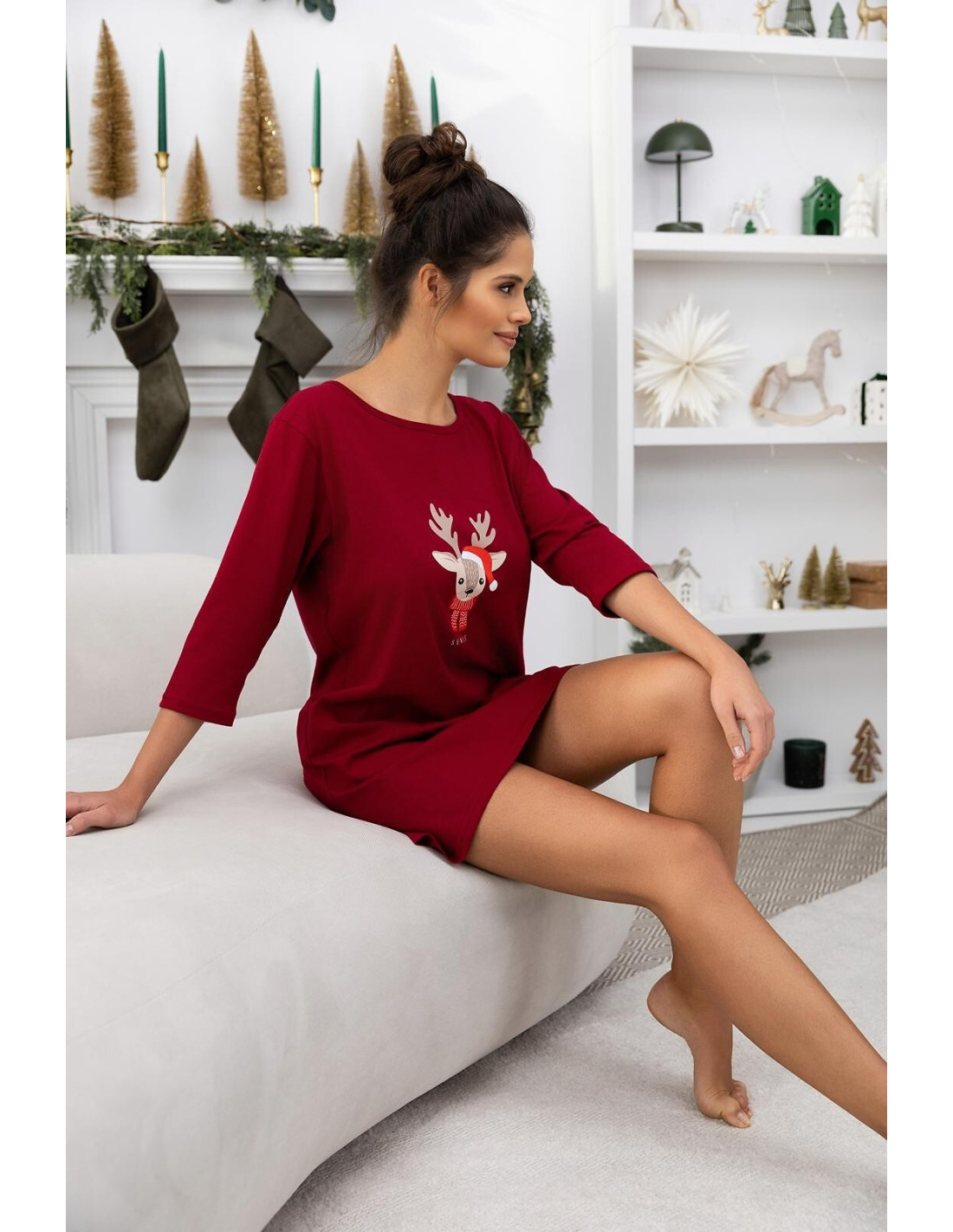 Moteriški naktiniai marškiniai - aukštos kokybės minkšta medvilnė - 3/4 rankovės - didelė iškirptė - priekis dekoruotas subtiliu kalėdiniu raštu - šiek tiek pailginta nugara