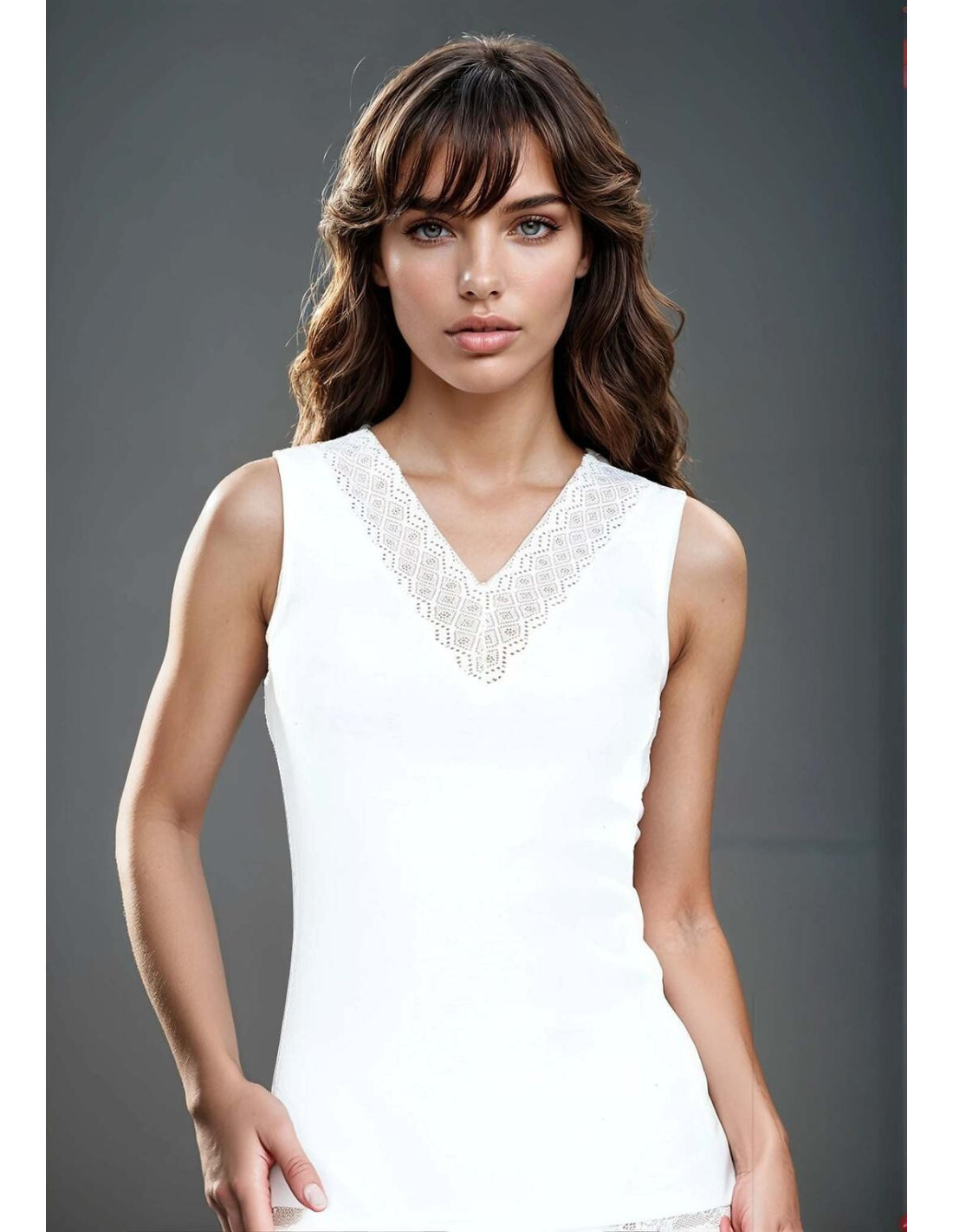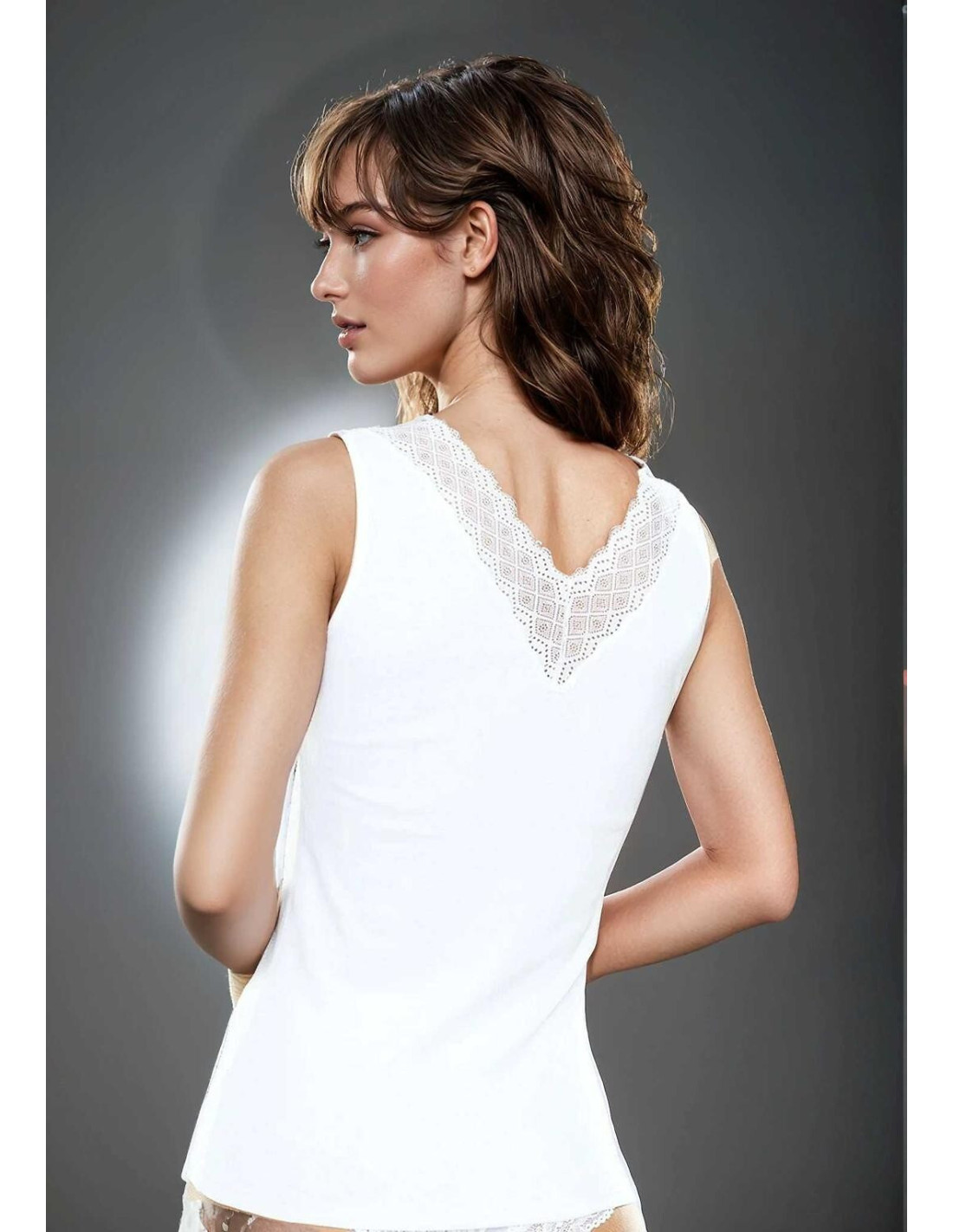 Koszulka damska - minkka bawełna - dekolt i plecy w kształcie litery "V" obszyte ażurową koronką - szerokie ramiączka - idealiai dopasowuje się do ciała - pakowana w pudełko
