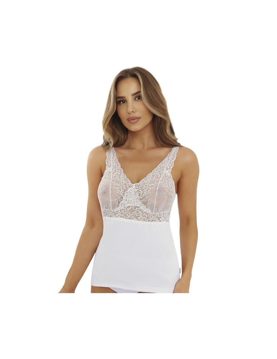 Koszulka damska - szerokie ramiączka - wysokiej kokybės bawełna - w górnej linii efektowna koronka - ramiączka z małą regulacją