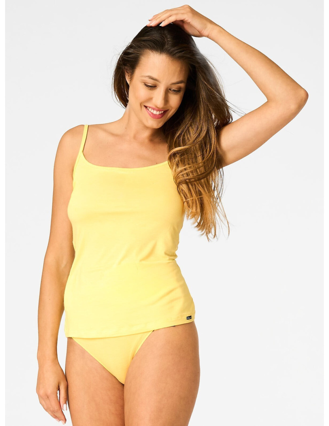 Koszulka damska - naturalna tkanina bambusowa - wąskie ramiączka - doskonale dopasowuje się do sylwetki, podkreślając naturalne kształty - pakowana w pudełko