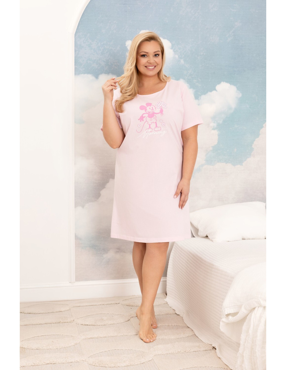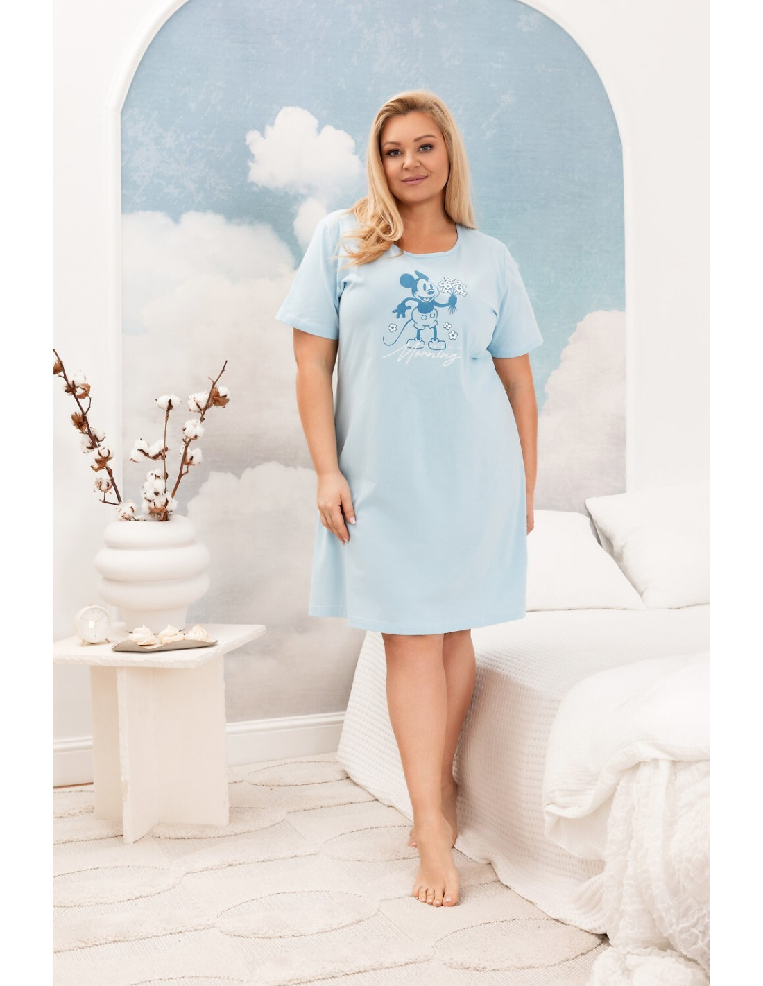 Koszula nocna damska - z wysokiej kokybės bawełny - krótki rękaw - dekolt okrągły - długość do kolana - przód zdobi nadruk "Myszka Miki"